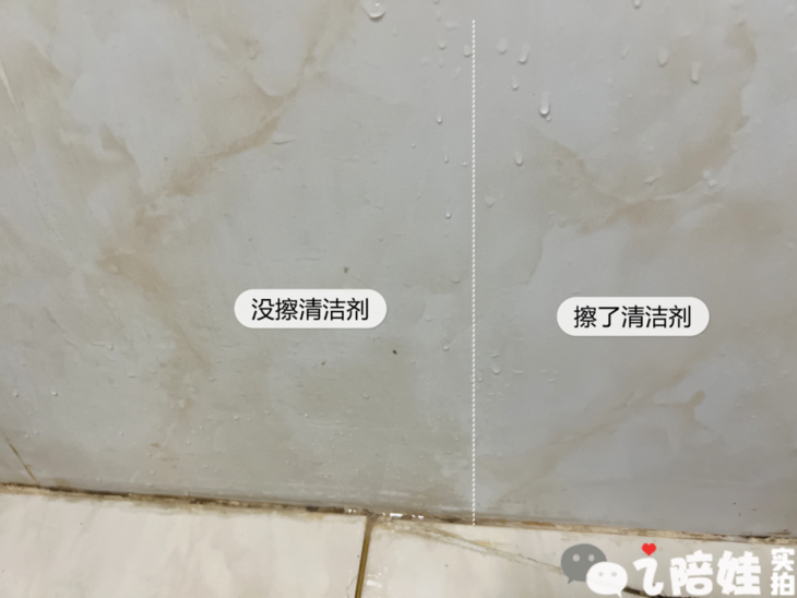 但是我和我闺蜜家都没有这么厉害的水垢,我一闺蜜就在她家浴室墙根这试了试,就是蘸着清洁剂擦了一遍哈,也是挺立竿见影的