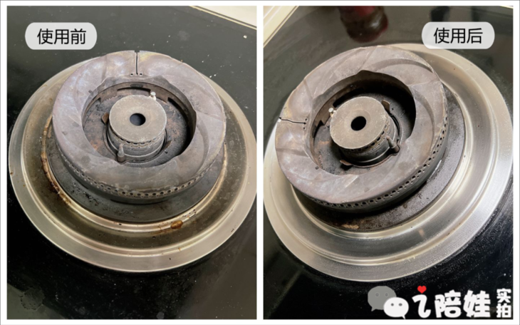 这个水垢清洁剂,厨房和卫生间所有的污垢都多少有点用,你看厨房的灶台用了都有效果