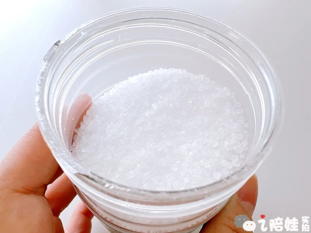 打开是这种和糖粒一样的细小结晶,放入热水中(60-100度)会自动溶解
