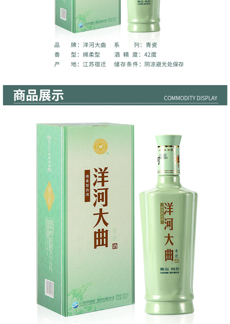 洋河大曲青瓷老包装 42度浓香型白酒 整箱500ml*6瓶包邮