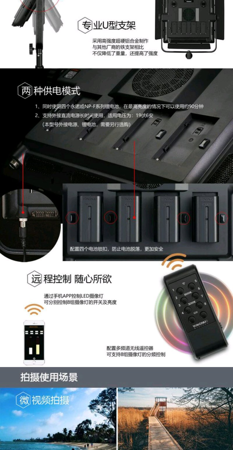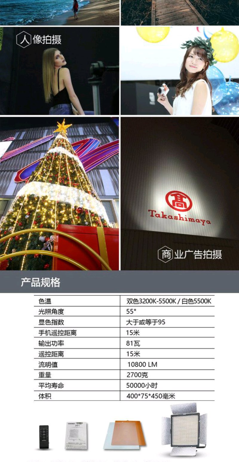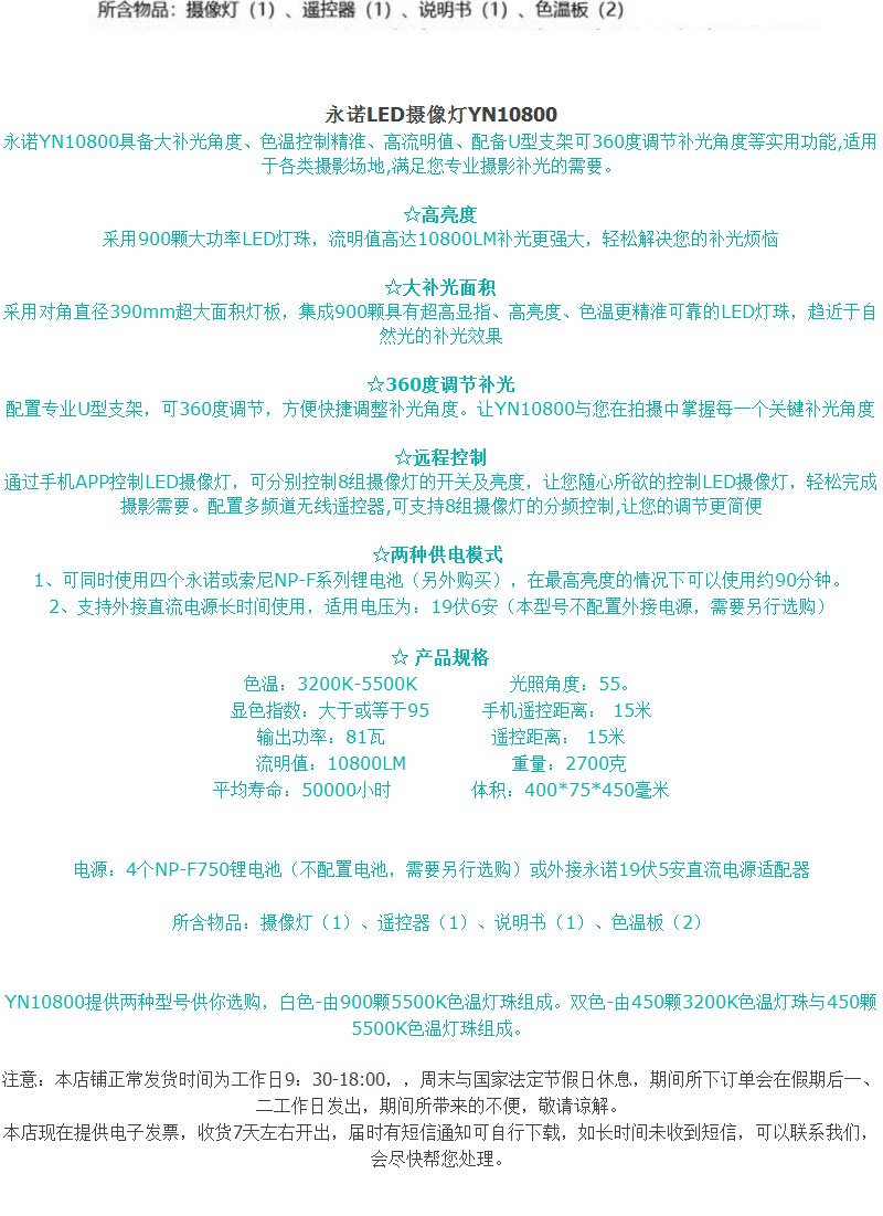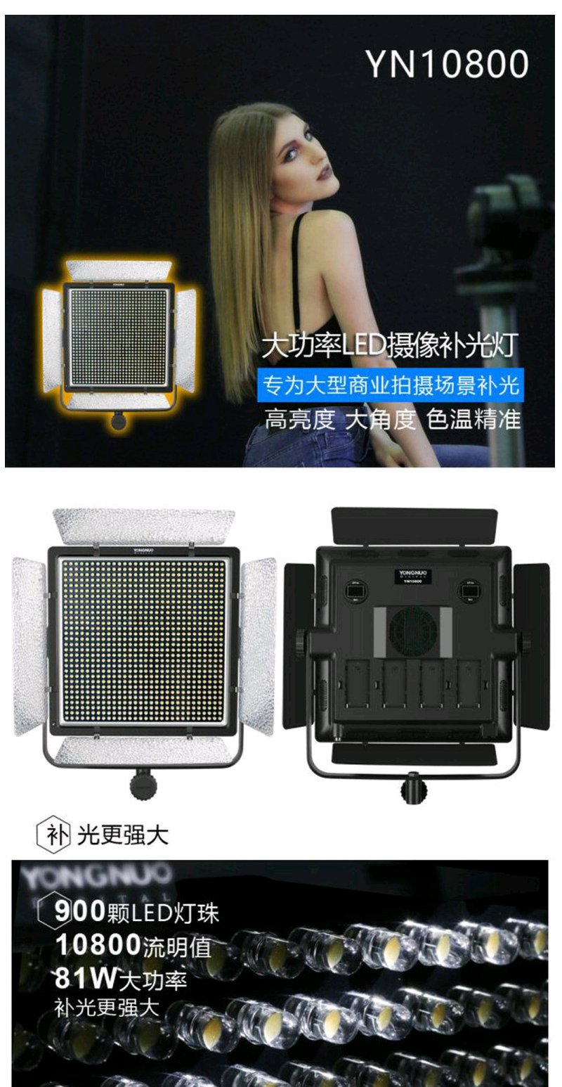 永诺 YN10800 大功率LED摄影灯可调色温补光灯外拍灯电影灯布光灯常亮灯影室灯 单LED 单色