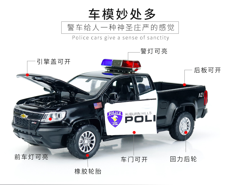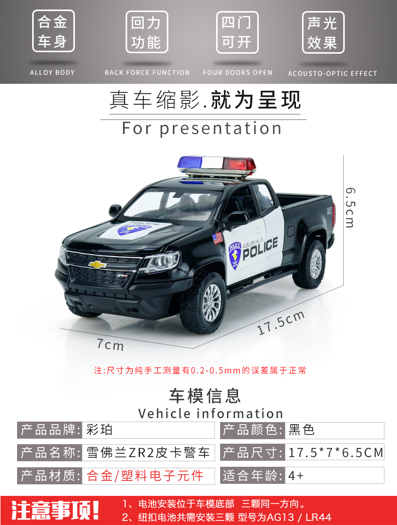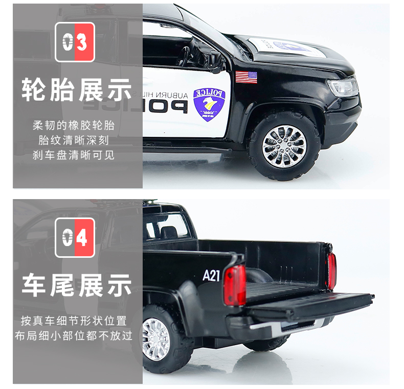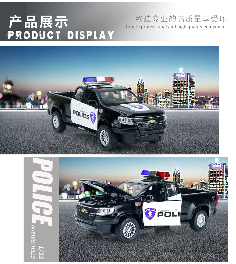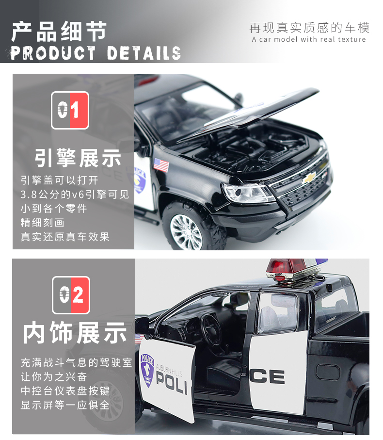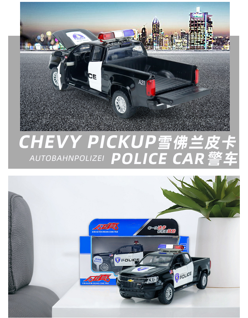 【成真】1:32雪佛兰皮卡警车合金车模 No.88465