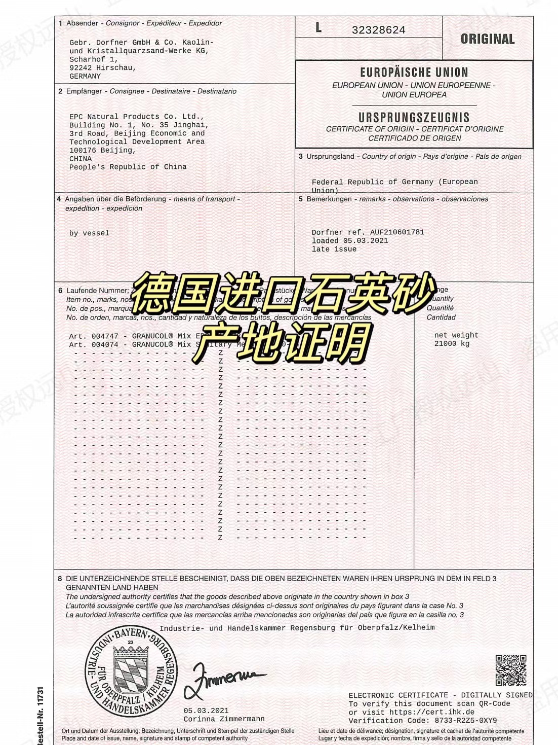 💯工厂采用跟铂浪高同一个供应商提供的德国特种石英砂