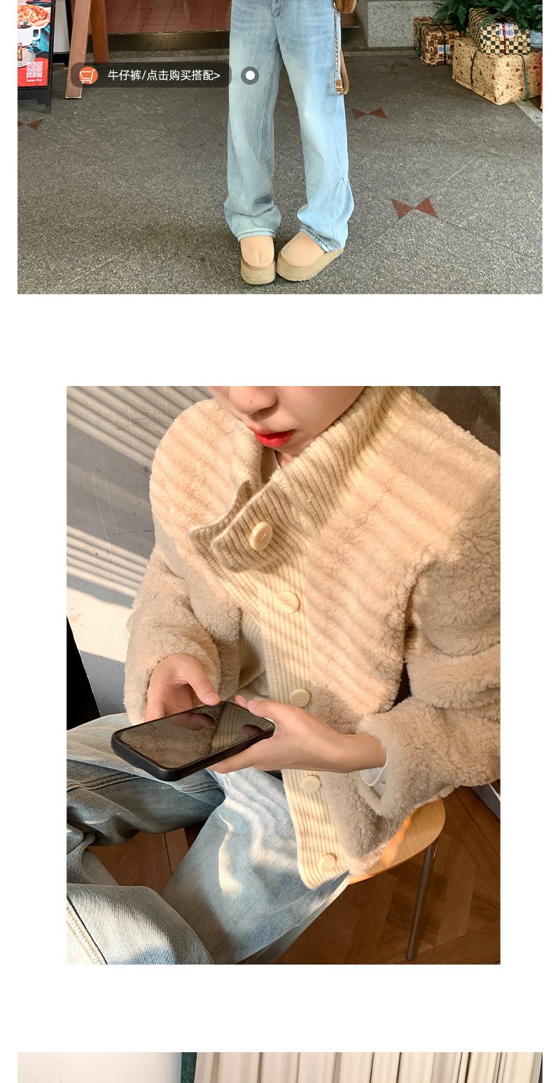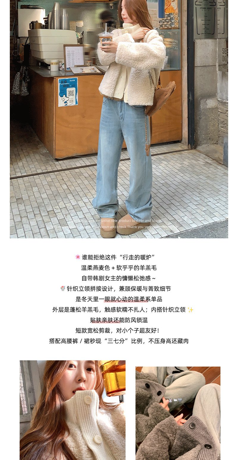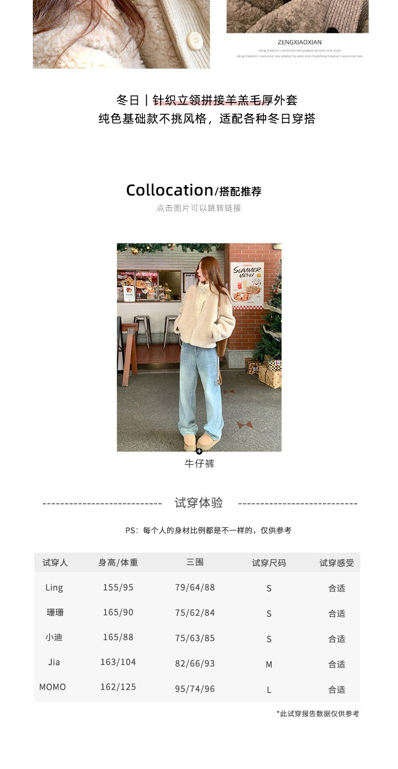 <曾小咸推荐>2.21现货秒杀 !微信超特价!2色针织立领拼接羊羔毛外套 日常429.99 立减260 秒杀169.99!!