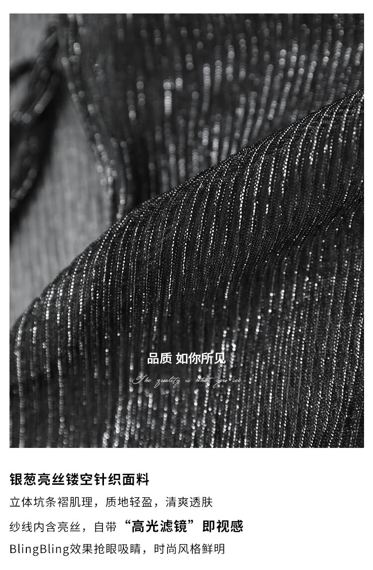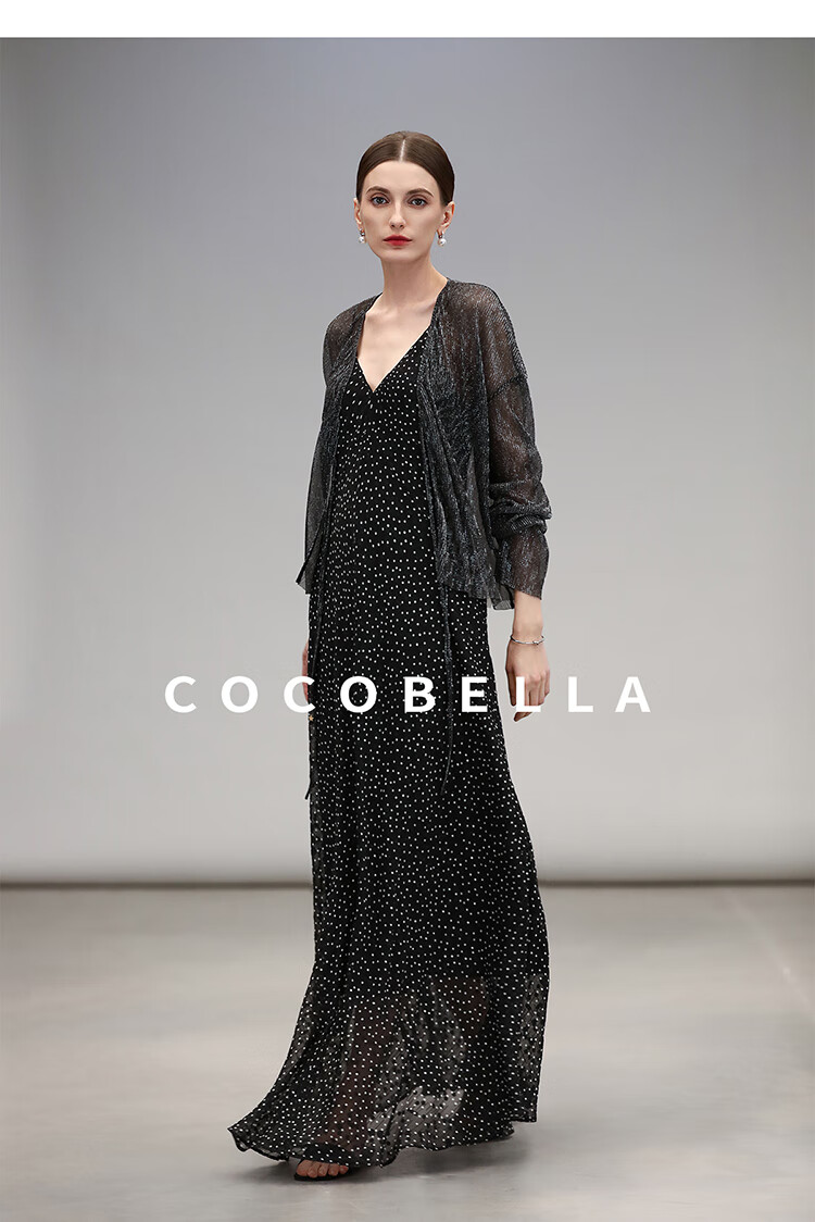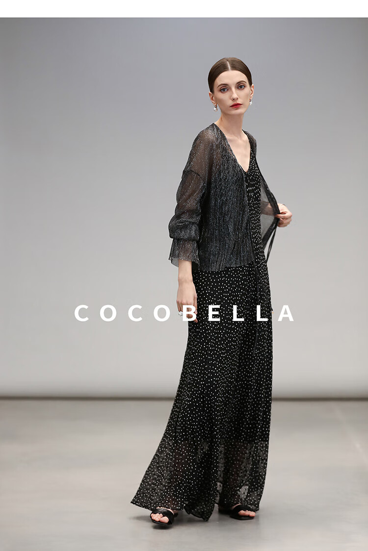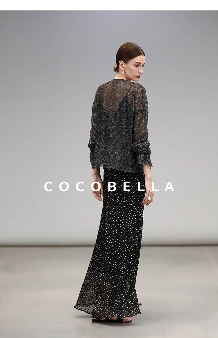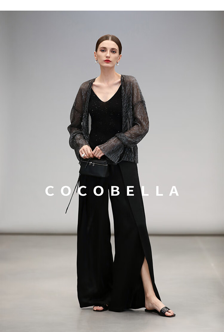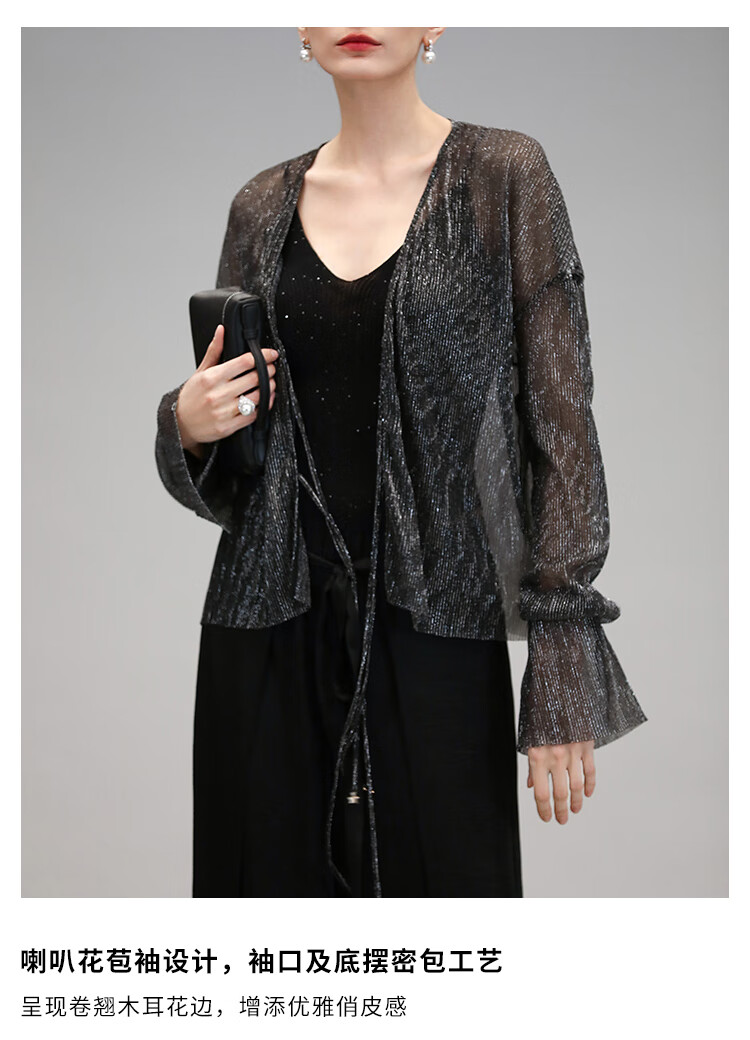COCOBELLA银葱亮丝镂空微透视遮阳衫女通勤黑色小开衫LC606-2