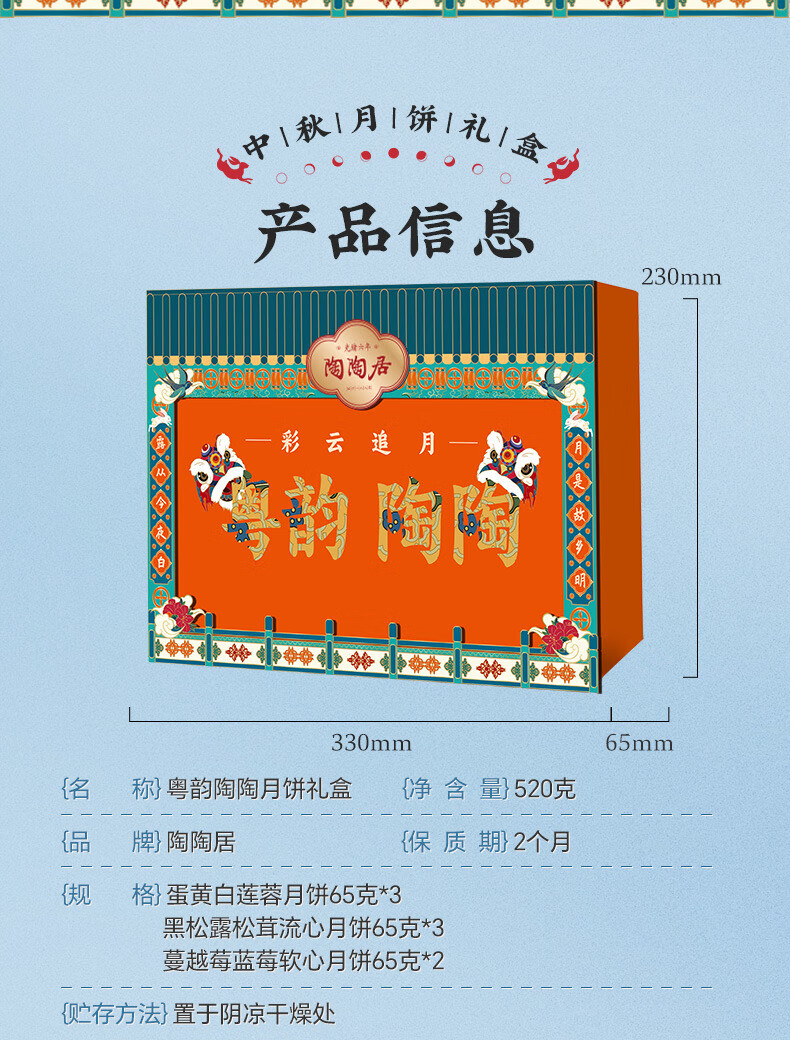 陶陶居陶陶居粤韵陶陶月饼礼盒520g 陶陶居粤韵陶陶月饼礼盒 520g