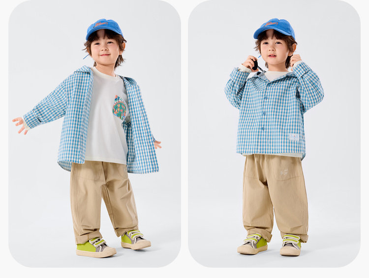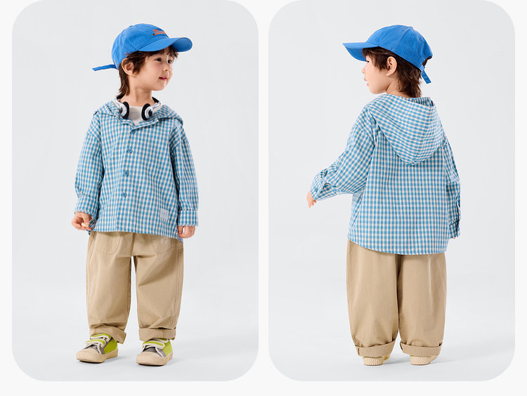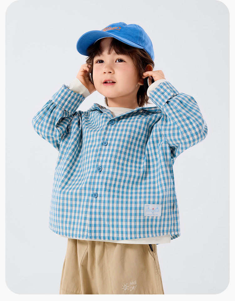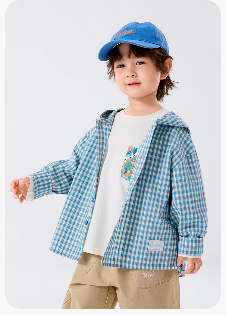 嘟嘟家男童连帽衬衫洋气格子衬衣儿童长袖外套女童春装学院风童装T6ACS047
