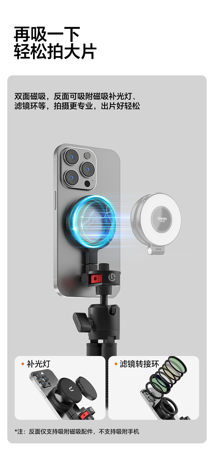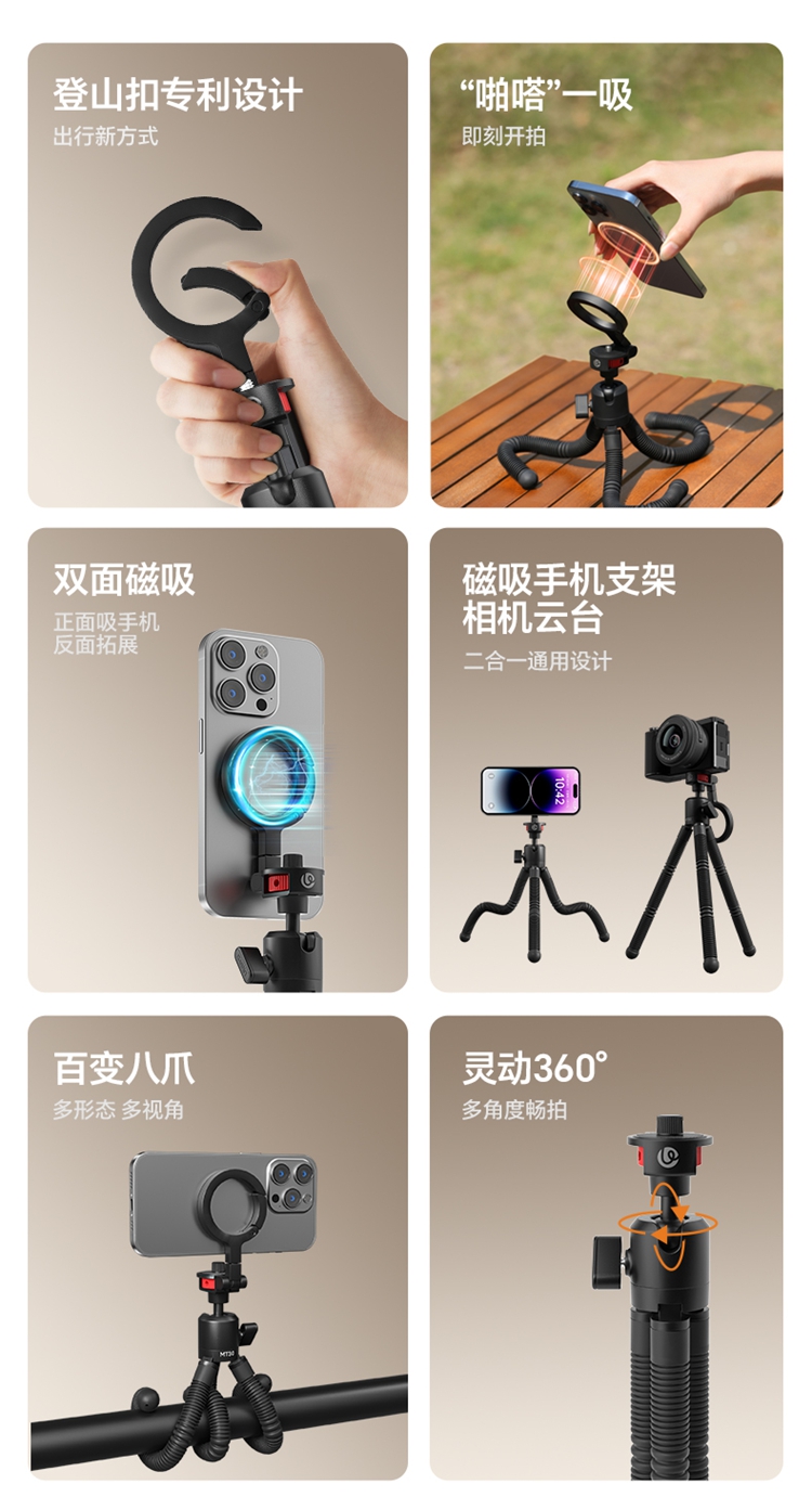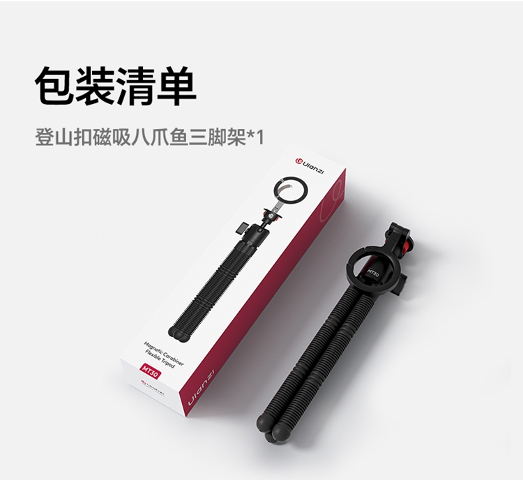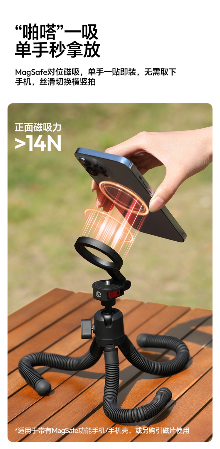 Ulanzi优篮子 MT30 Magsafe登山扣八爪鱼三脚架磁吸式便携三脚架磁吸柔性三脚架可伸缩