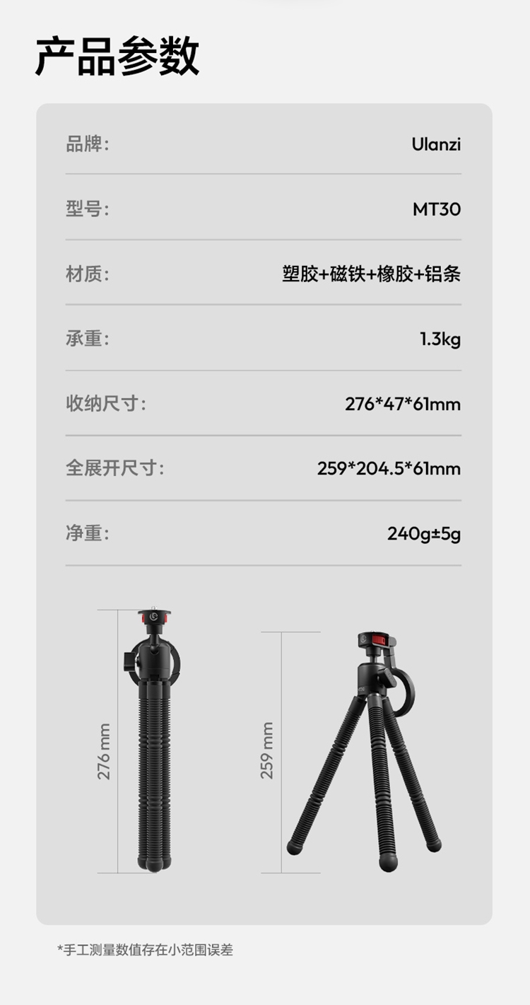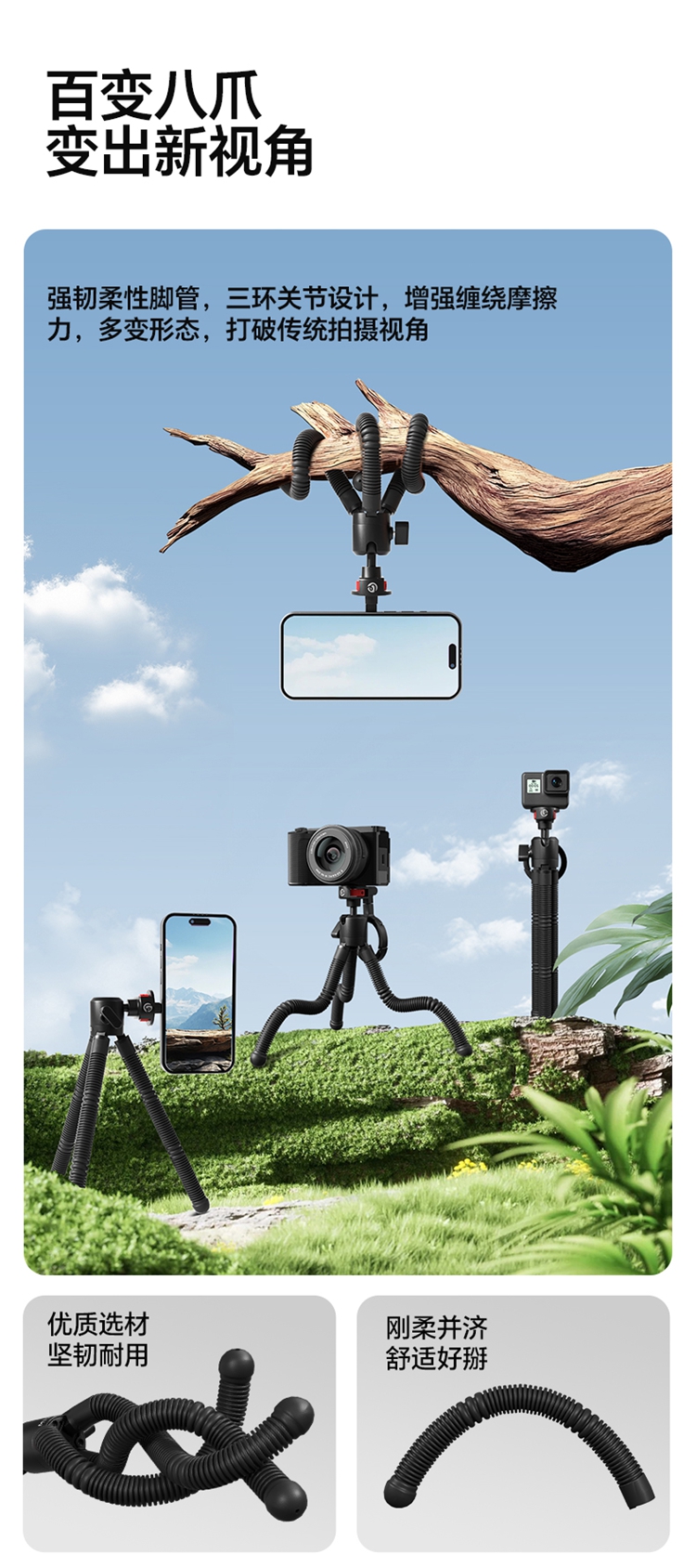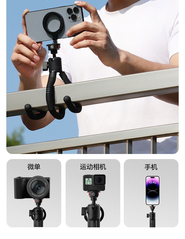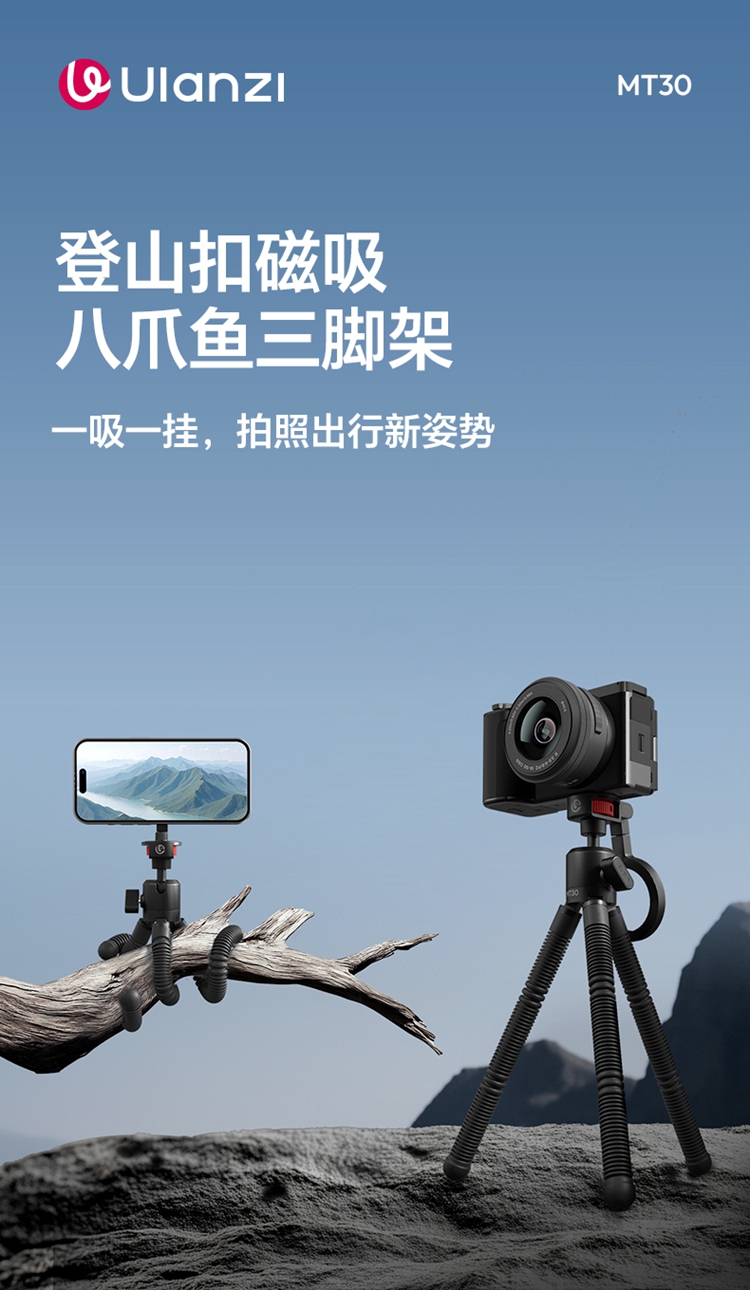 Ulanzi优篮子 MT30 Magsafe登山扣八爪鱼三脚架磁吸式便携三脚架磁吸柔性三脚架可伸缩