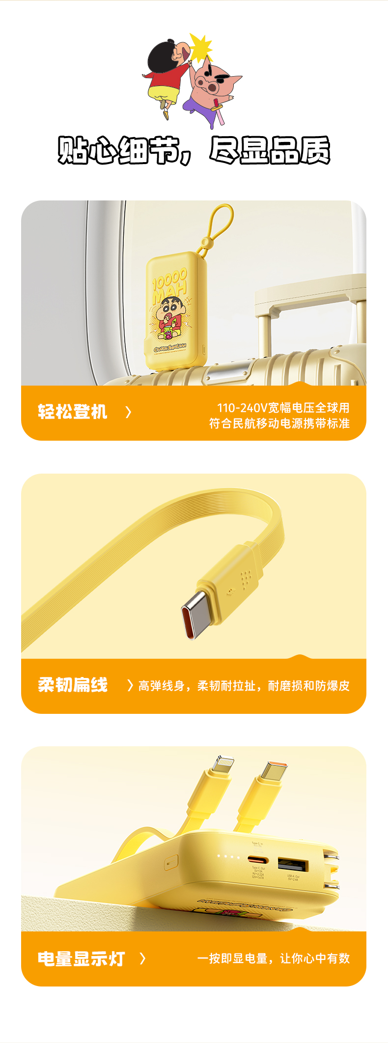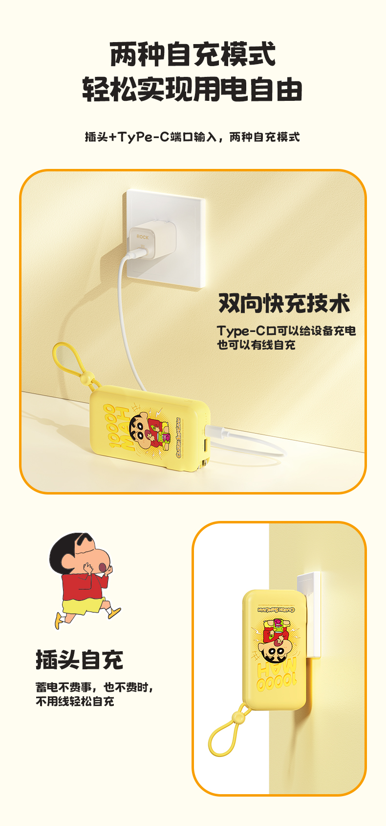 ROCK 蜡笔小新 Y30 自带双线22.5W 移动电源适配器10000mah 中规插头