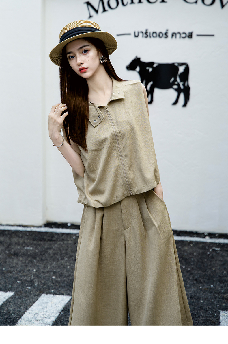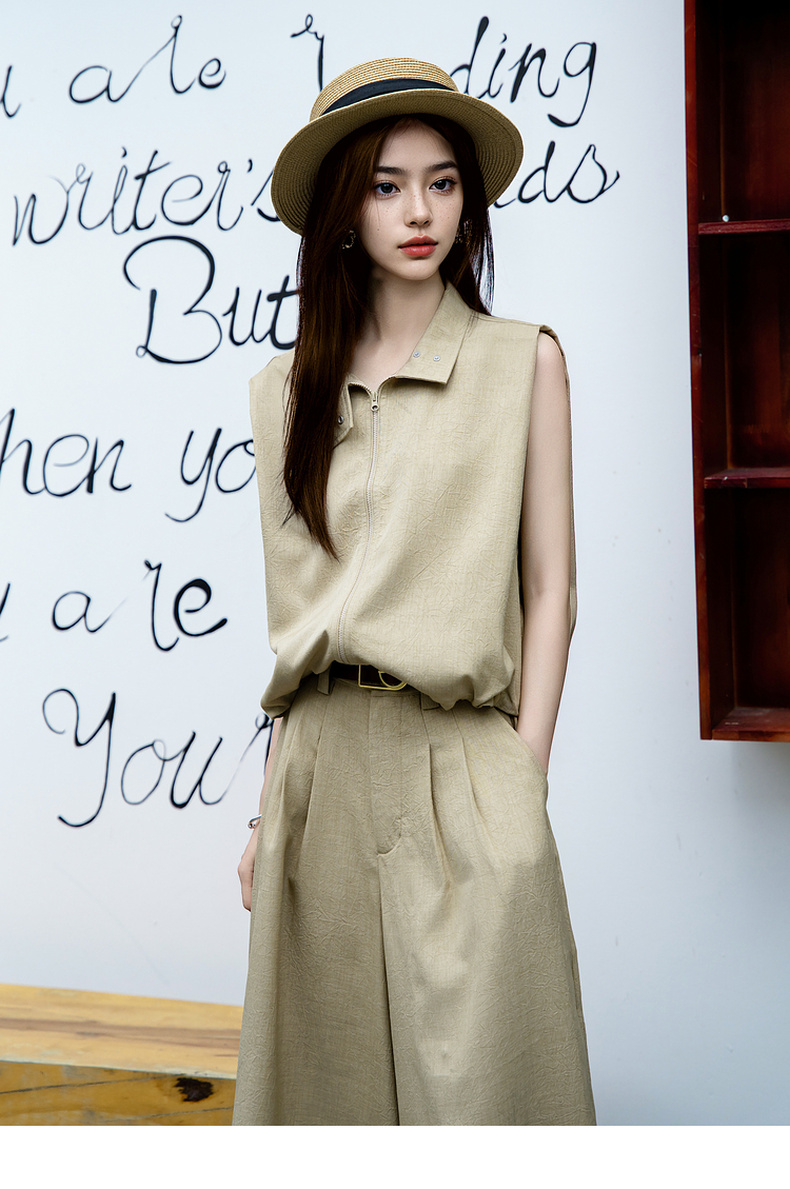 谜底无袖上衣女2025夏新款通勤风气质宽松衬衫下摆收缩25BMS5005