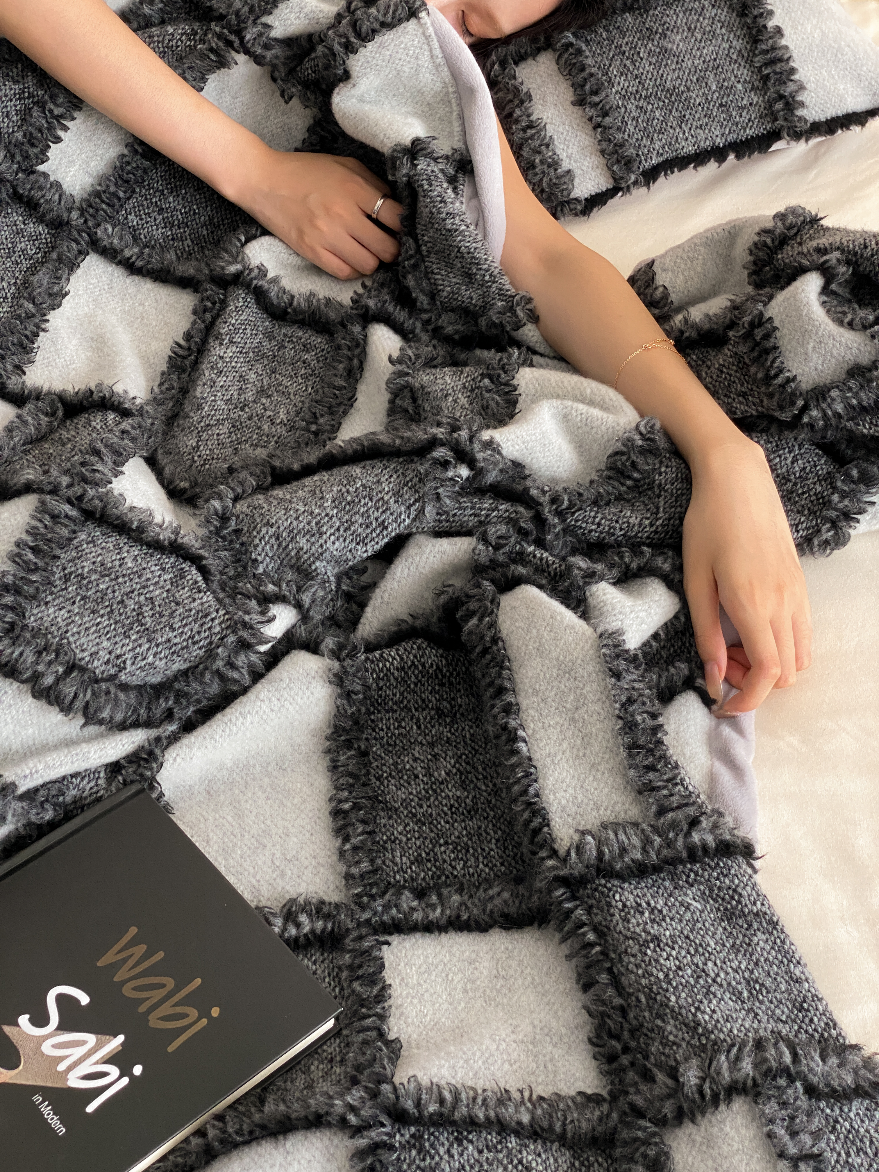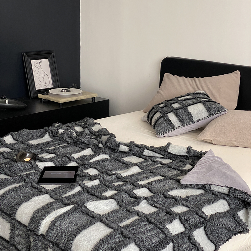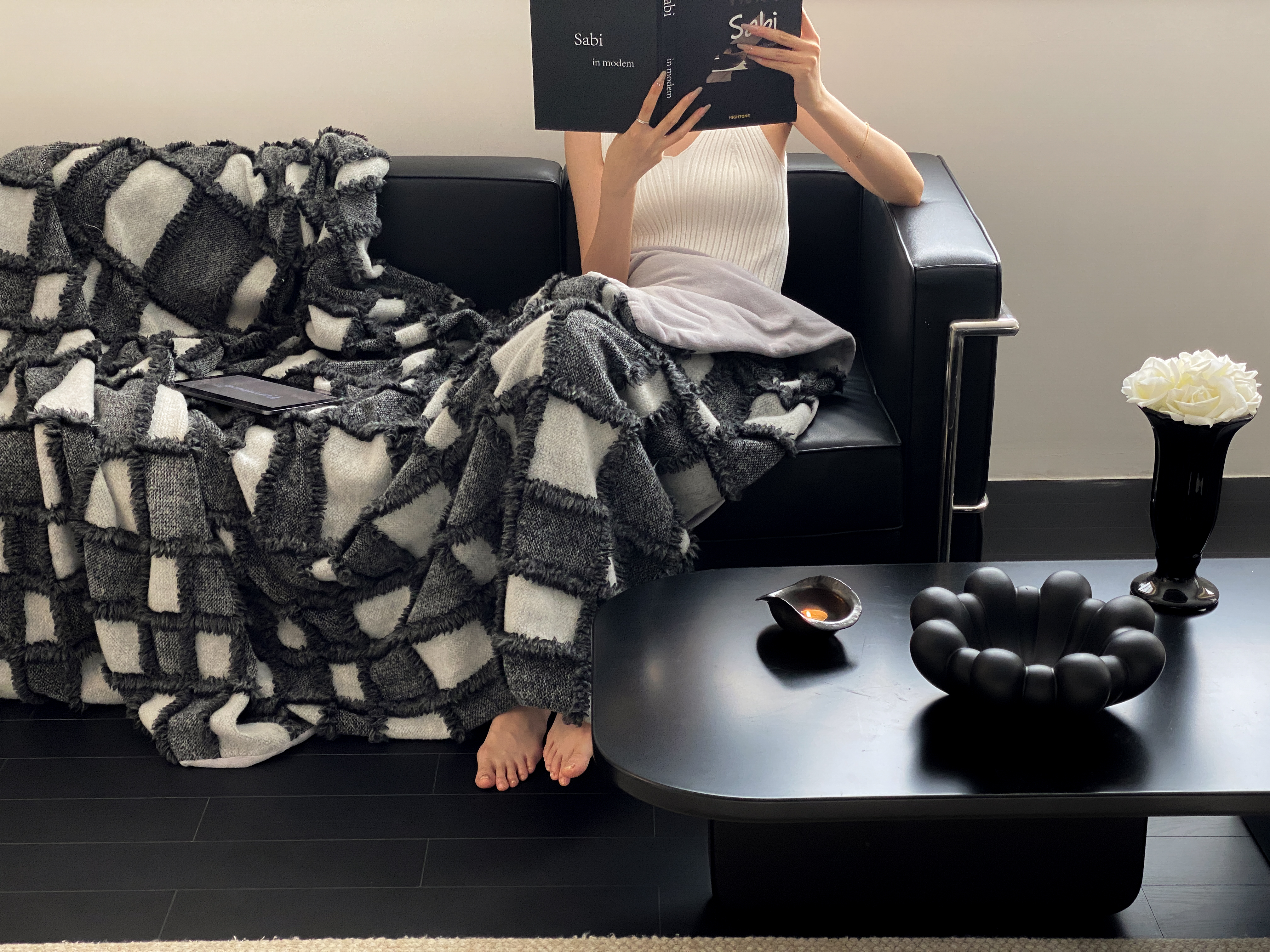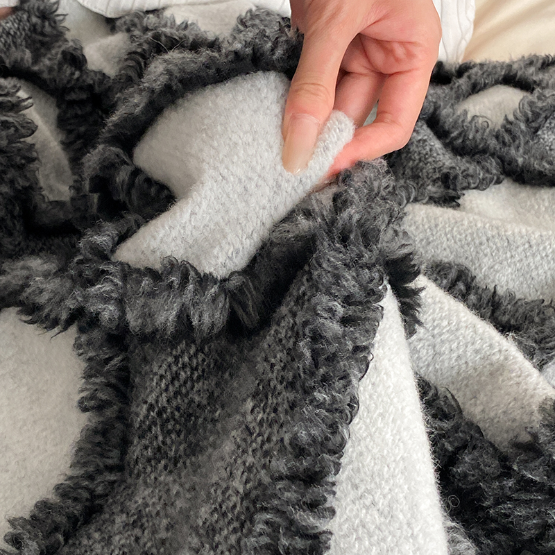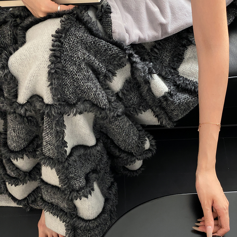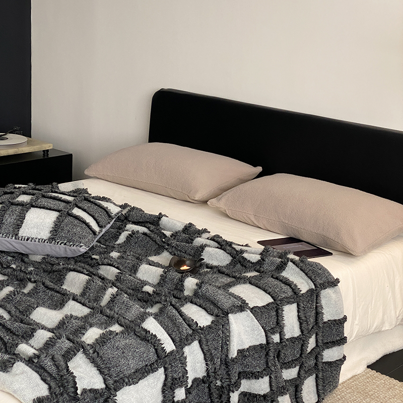 扎染黑白风一整个高级住,面料上也做了不同层次的混纺,是一条时髦小众的精品毛毯哦