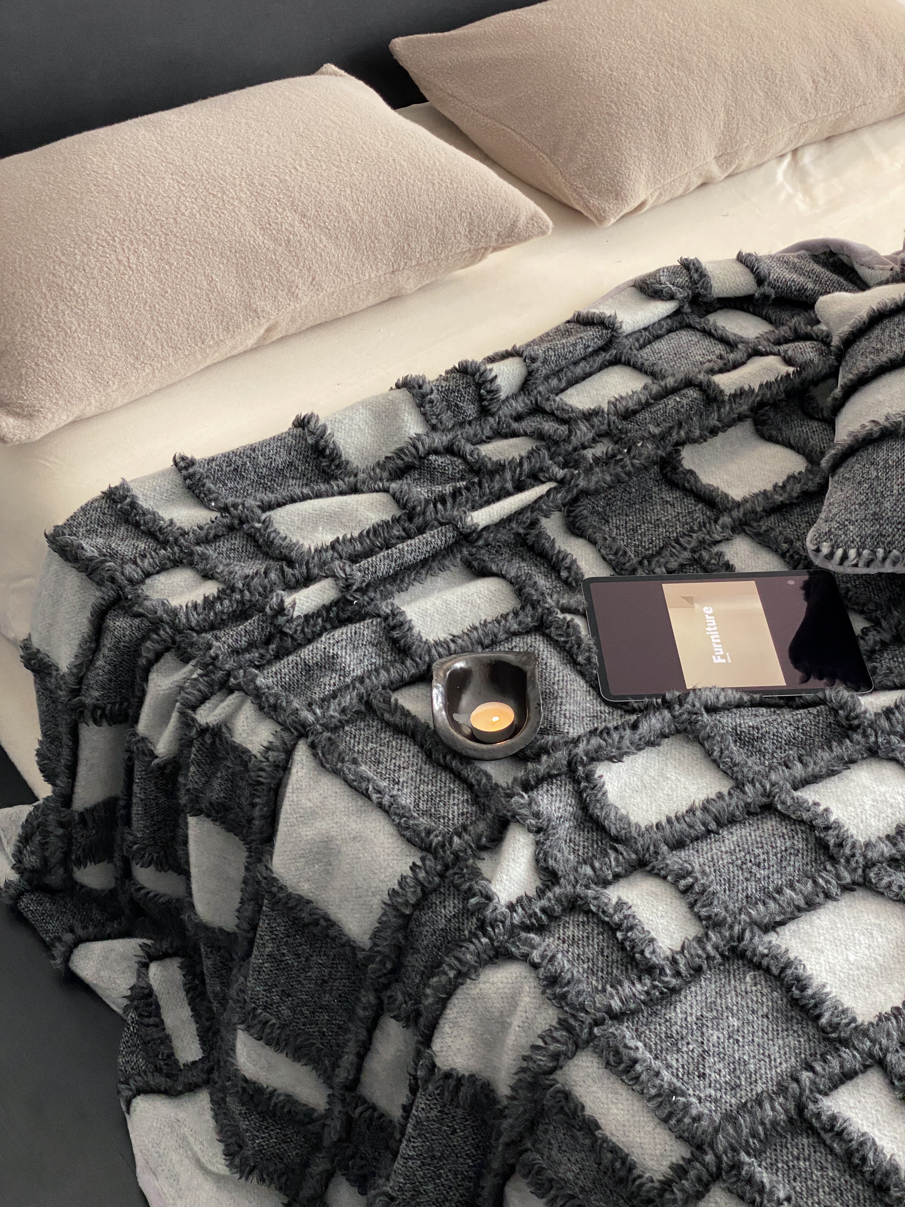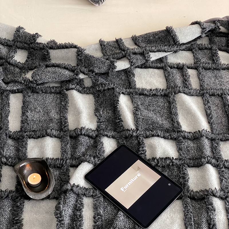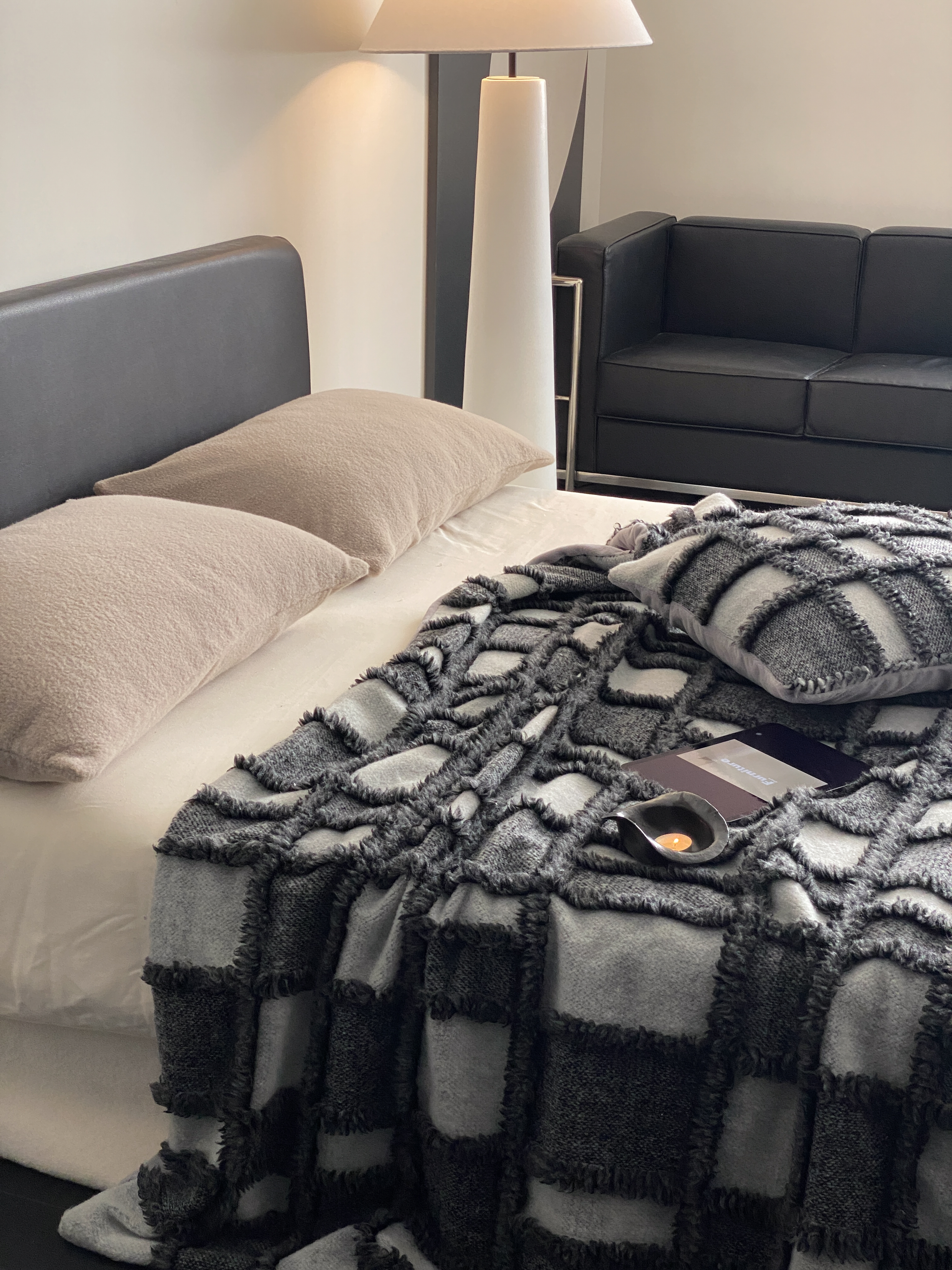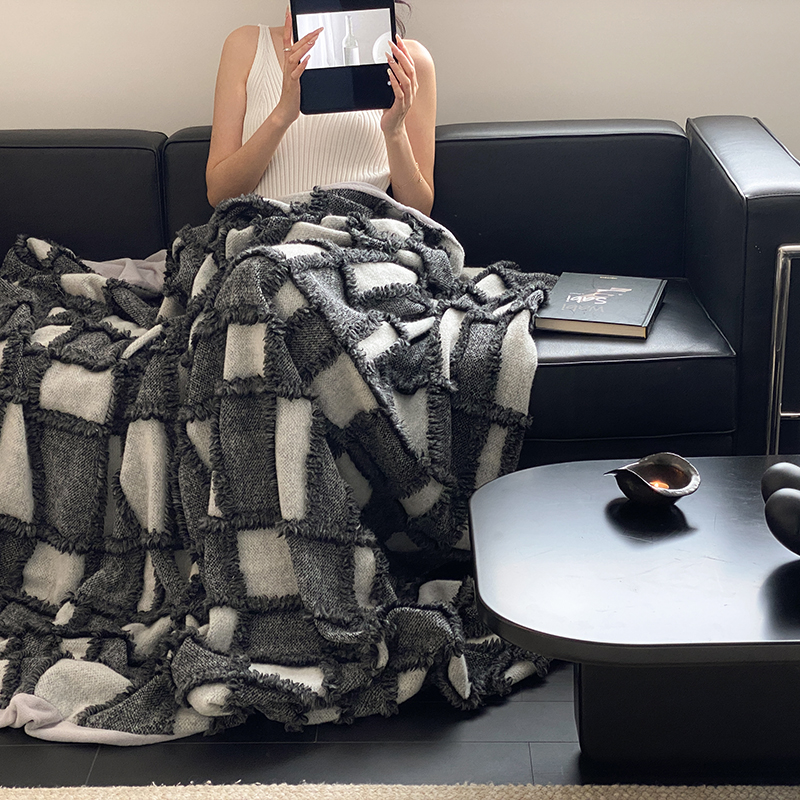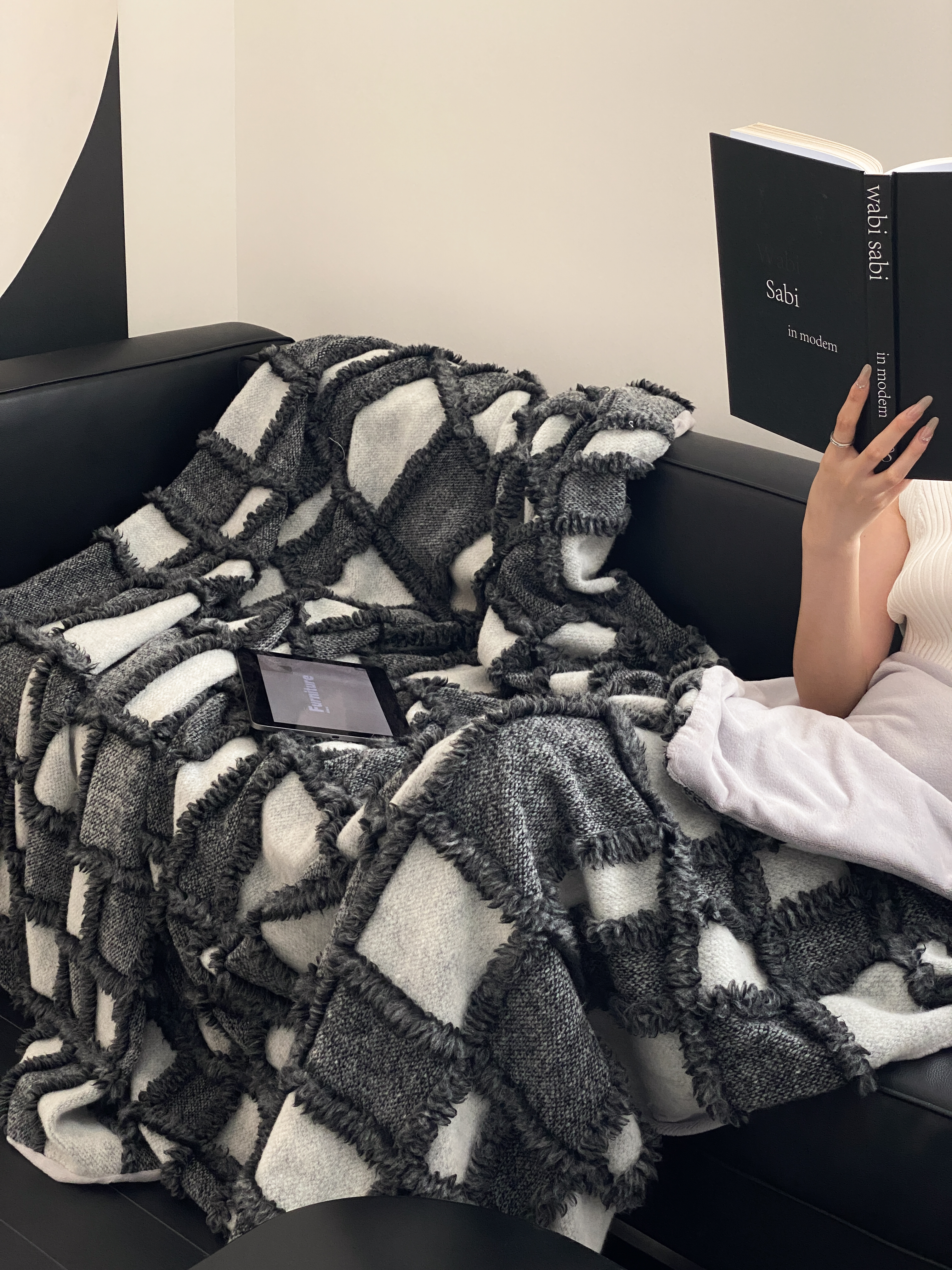 扎染黑白风一整个高级住,面料上也做了不同层次的混纺,是一条时髦小众的精品毛毯哦