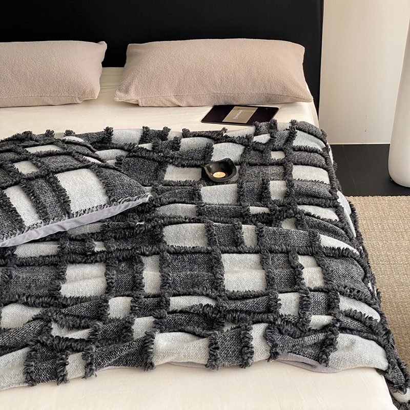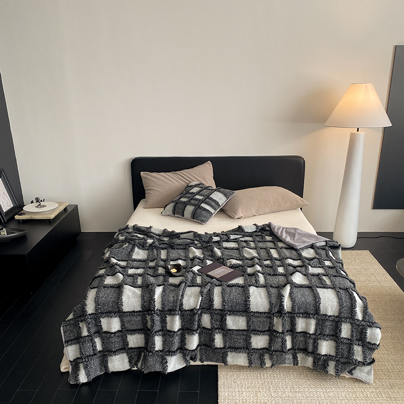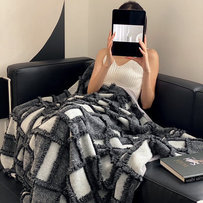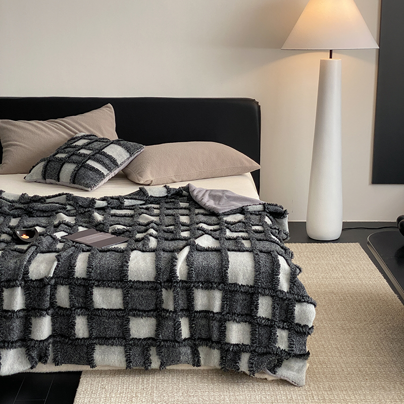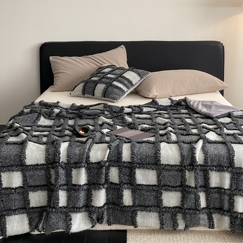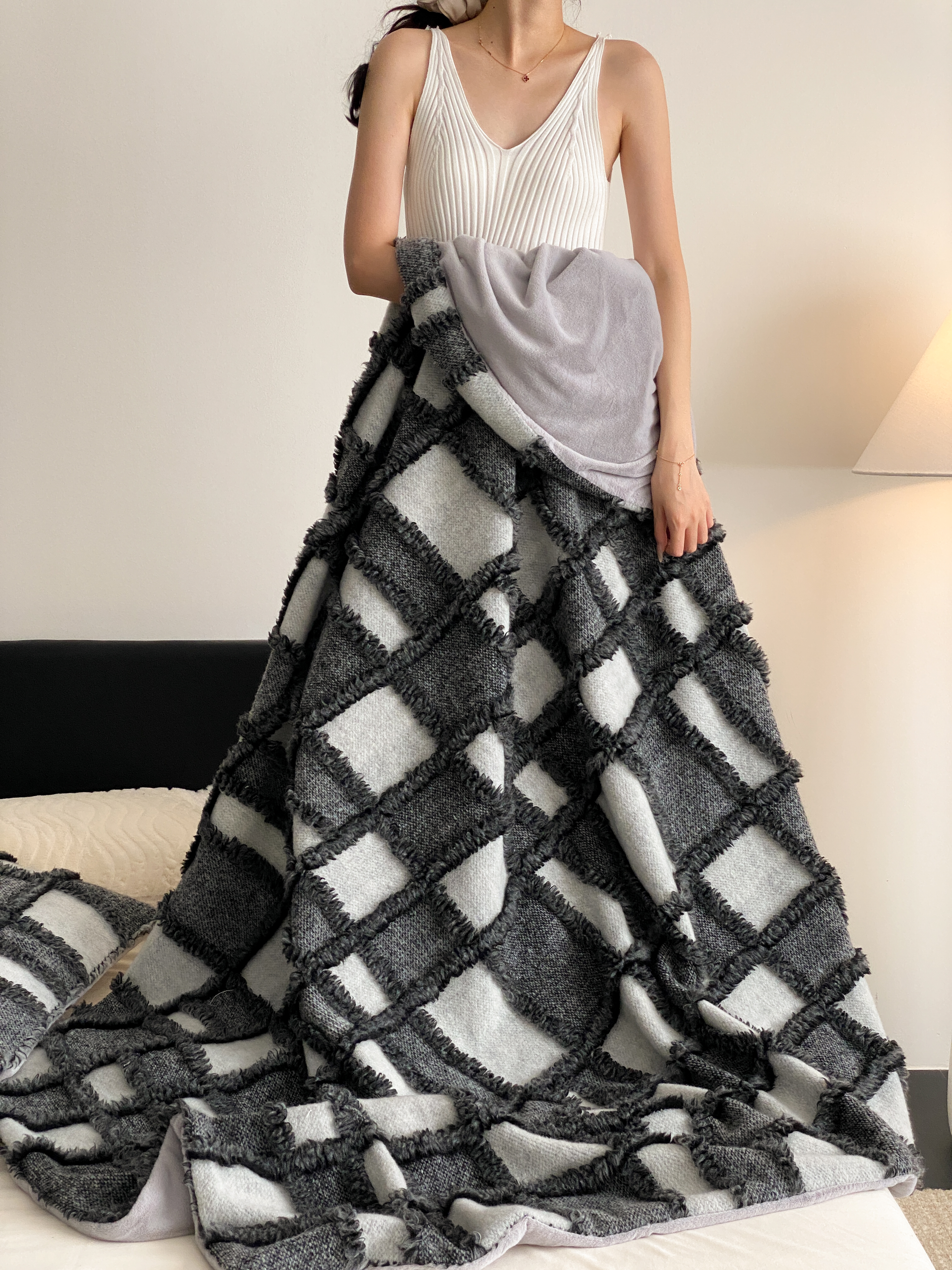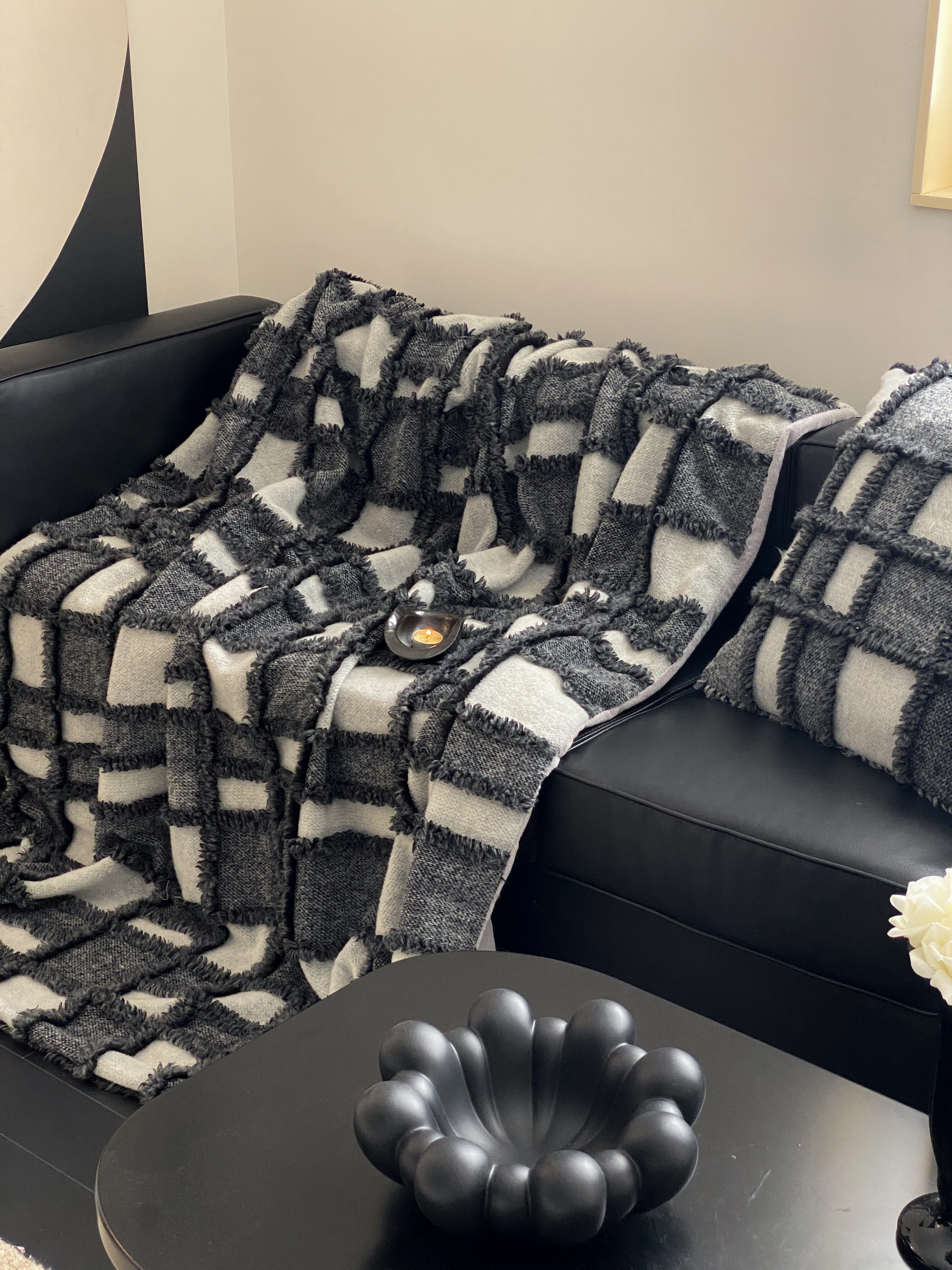 扎染黑白风一整个高级住,面料上也做了不同层次的混纺,是一条时髦小众的精品毛毯哦