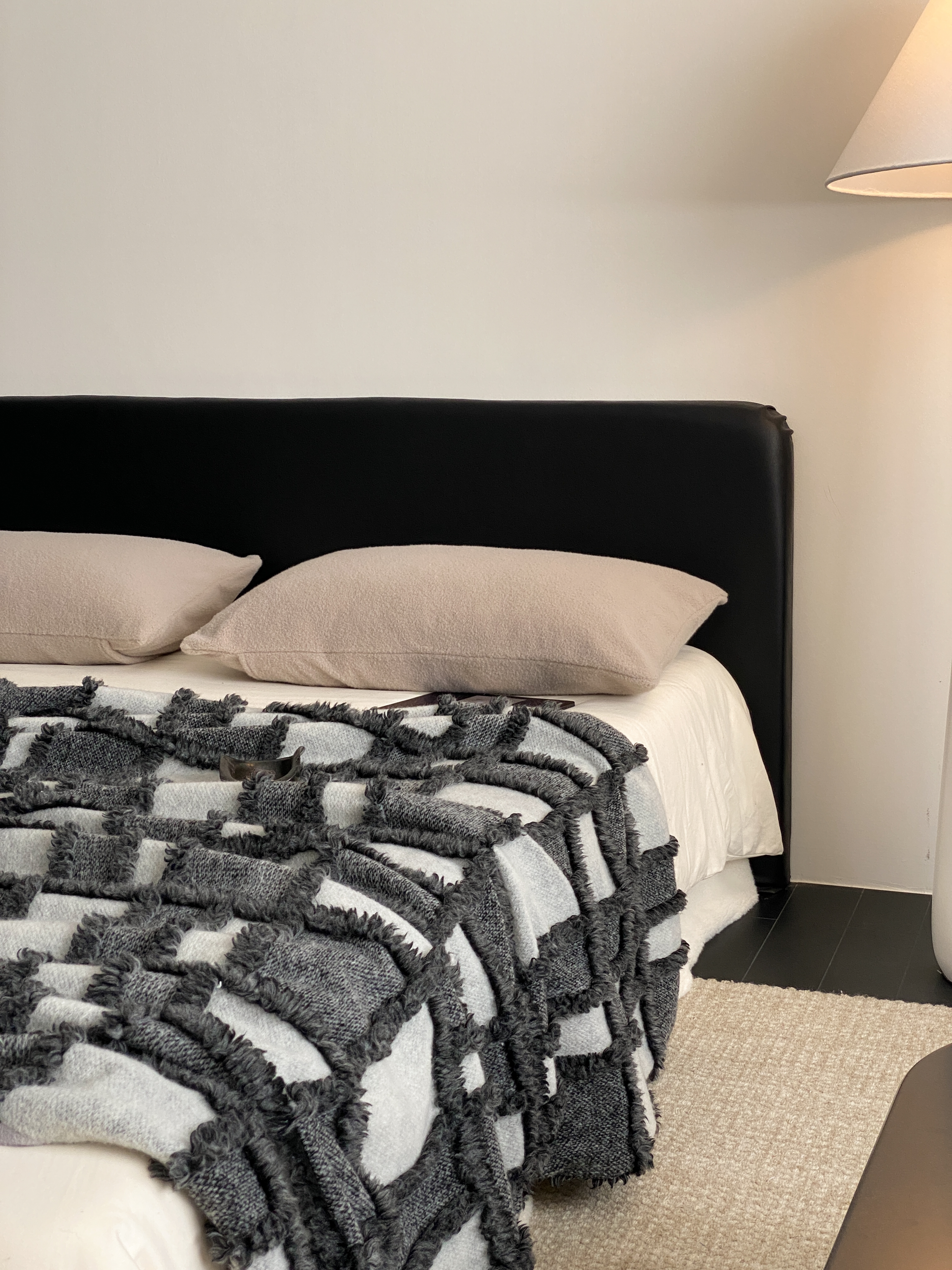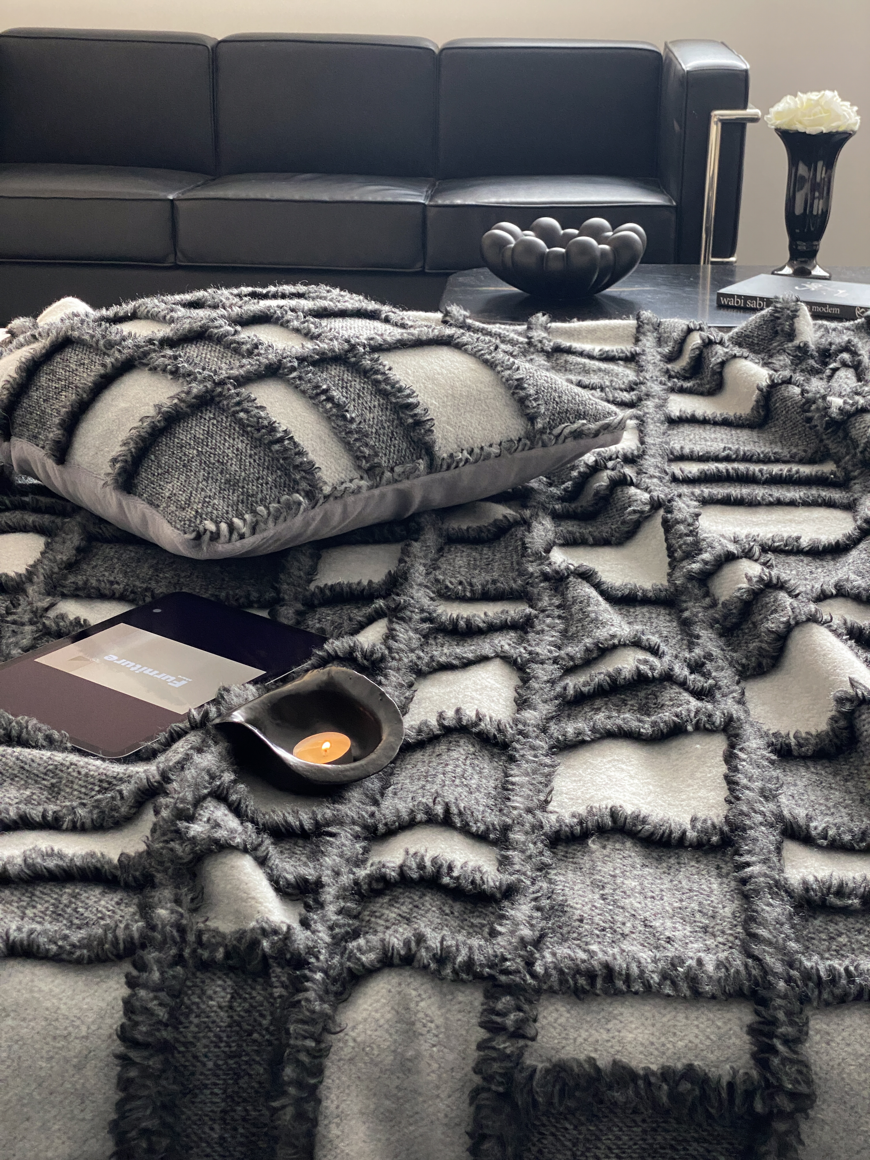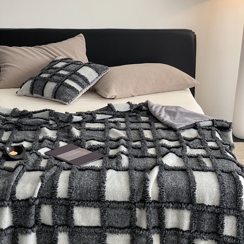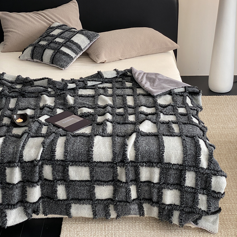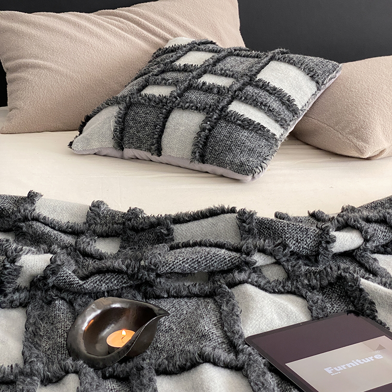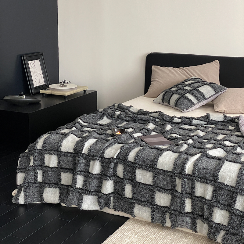 扎染黑白风一整个高级住,面料上也做了不同层次的混纺,是一条时髦小众的精品毛毯哦