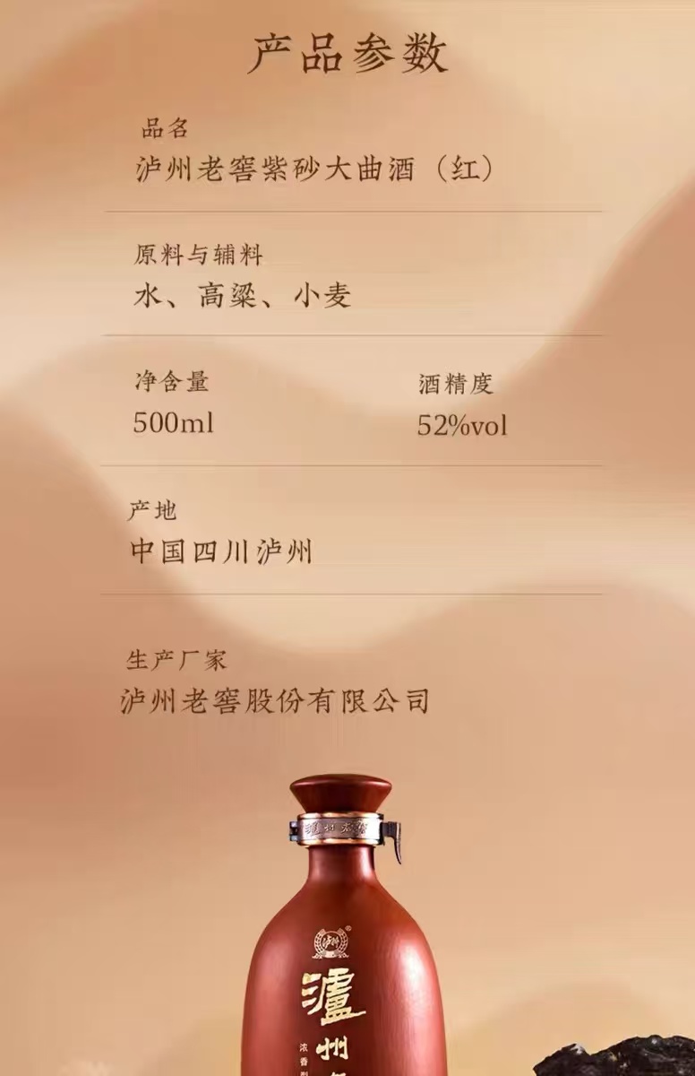 【买5赠1】泸州老窖·紫砂大曲(红)浓香白酒52度500ml(买5赠1,到手6瓶)【直选好酒-包邮】