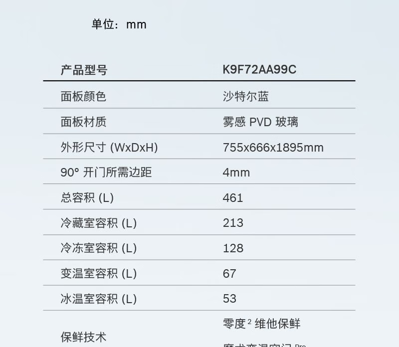 博世(BOSCH)461L全域智净 M7s 零嵌多门 活氧零度冰箱 K9F72AA99C