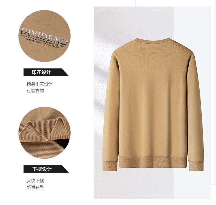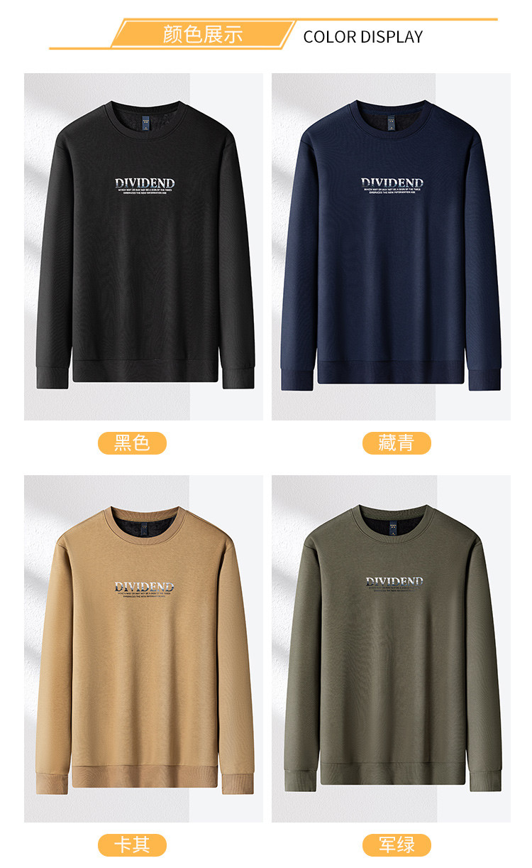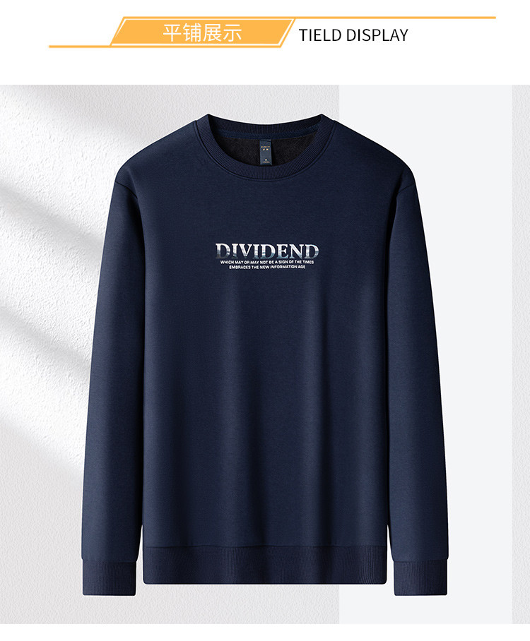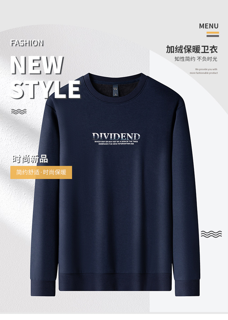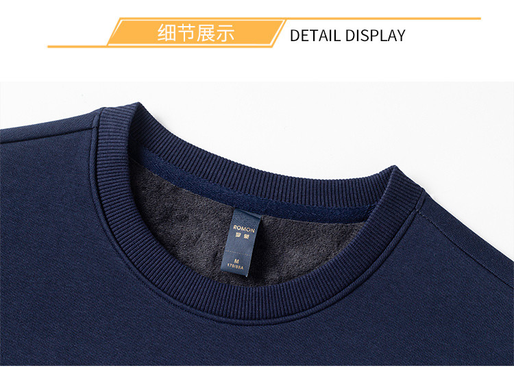 【加绒加厚 蚕丝混纺】罗蒙秋冬加绒保暖卫衣男士时尚印花字母卫衣男套头T恤