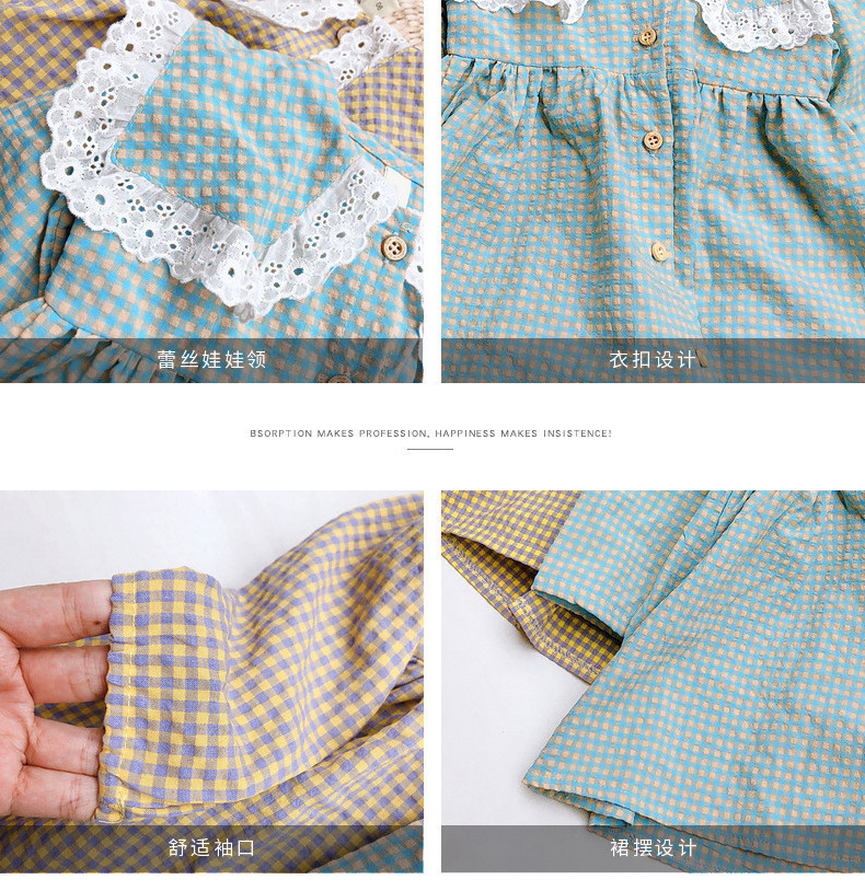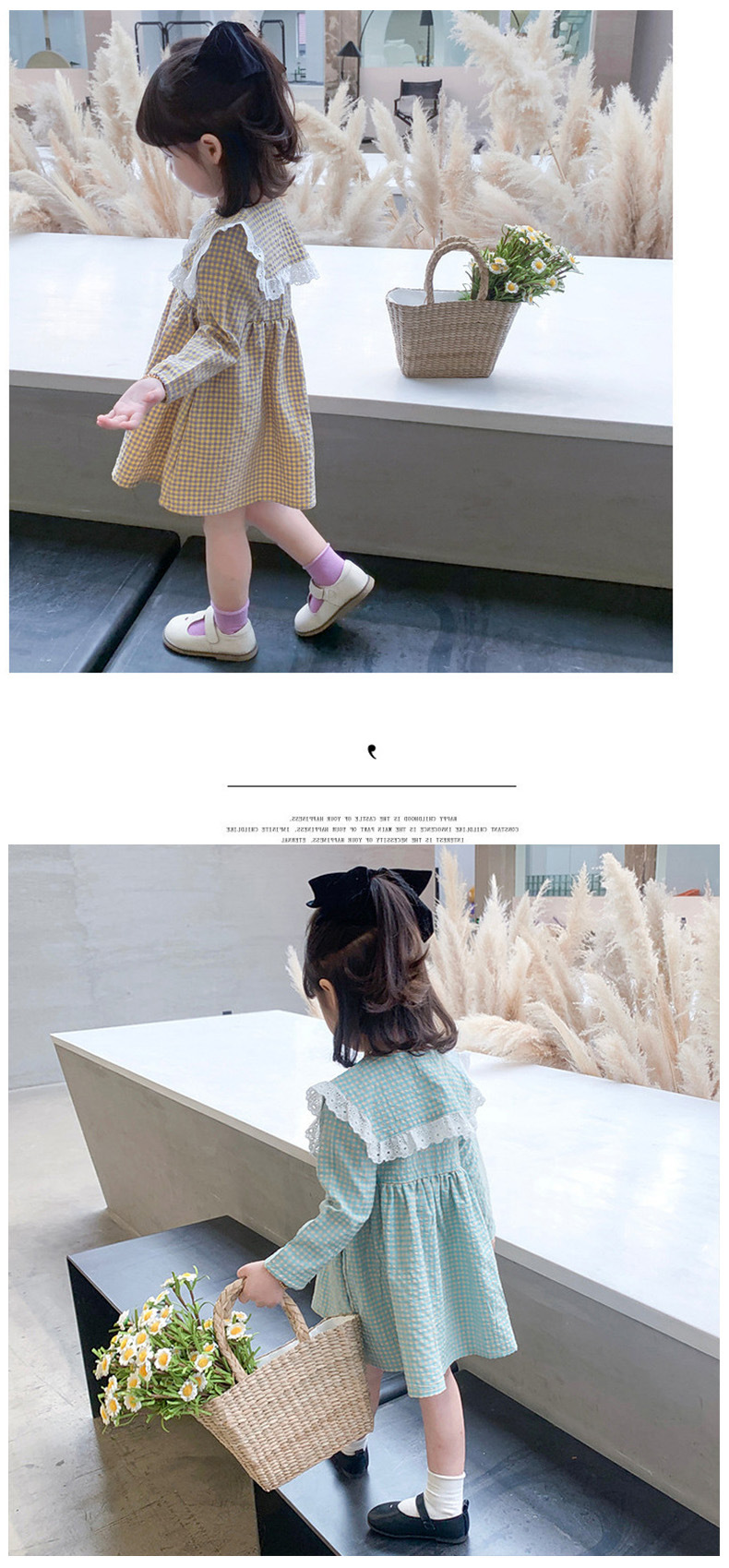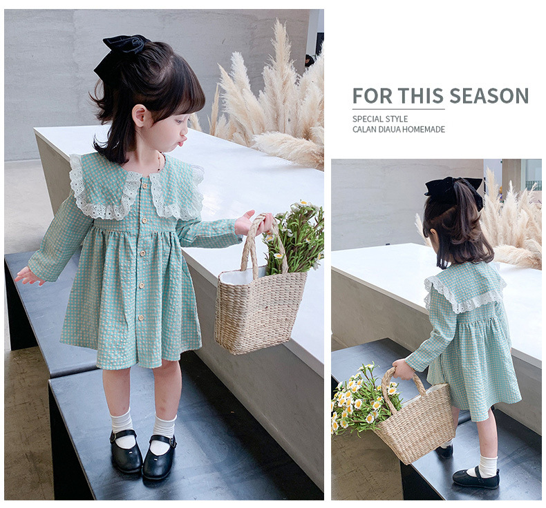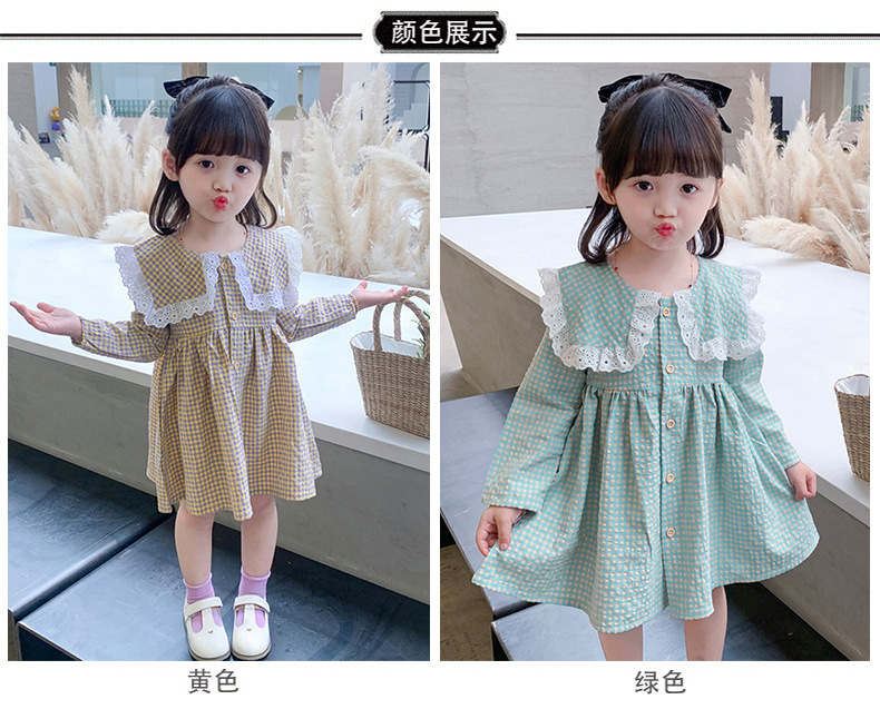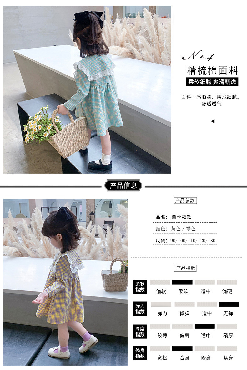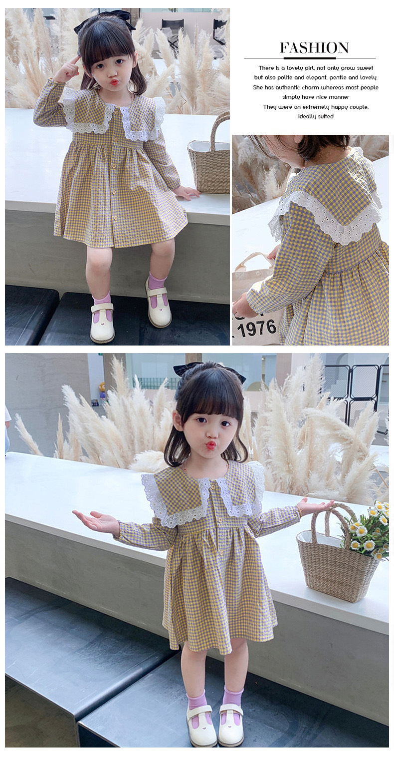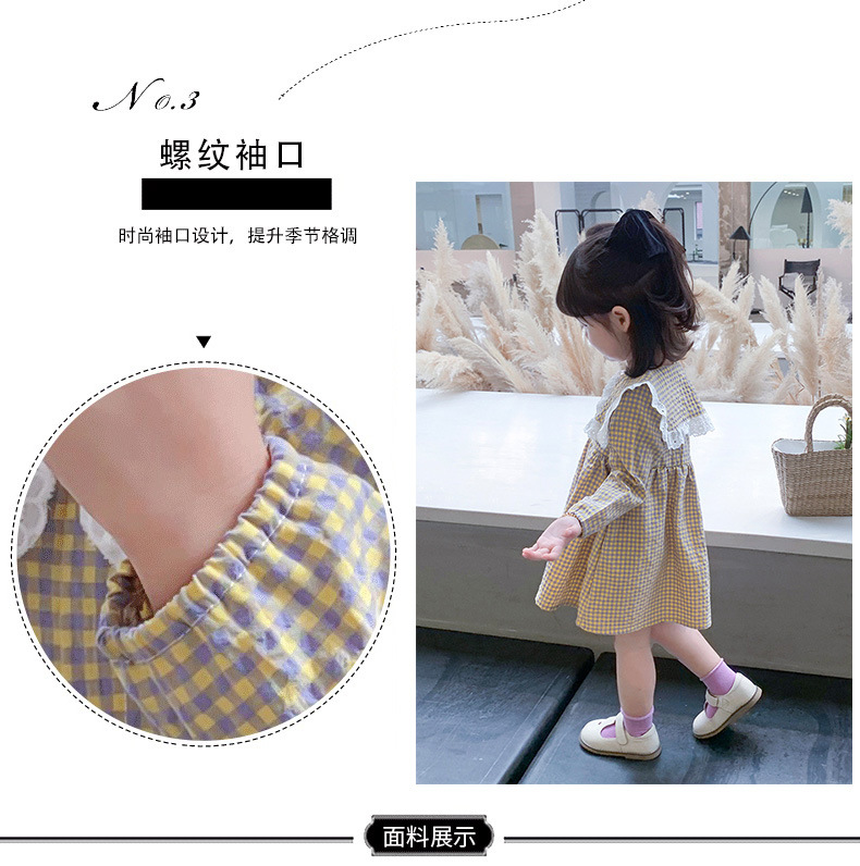【时髦秋装!长袖翻领格子公主裙】女童连衣裙 洋气小女孩长袖翻领格子公主裙儿 宝宝翻领格子 儿童裙子中小童长袖洋气公主裙-QQ