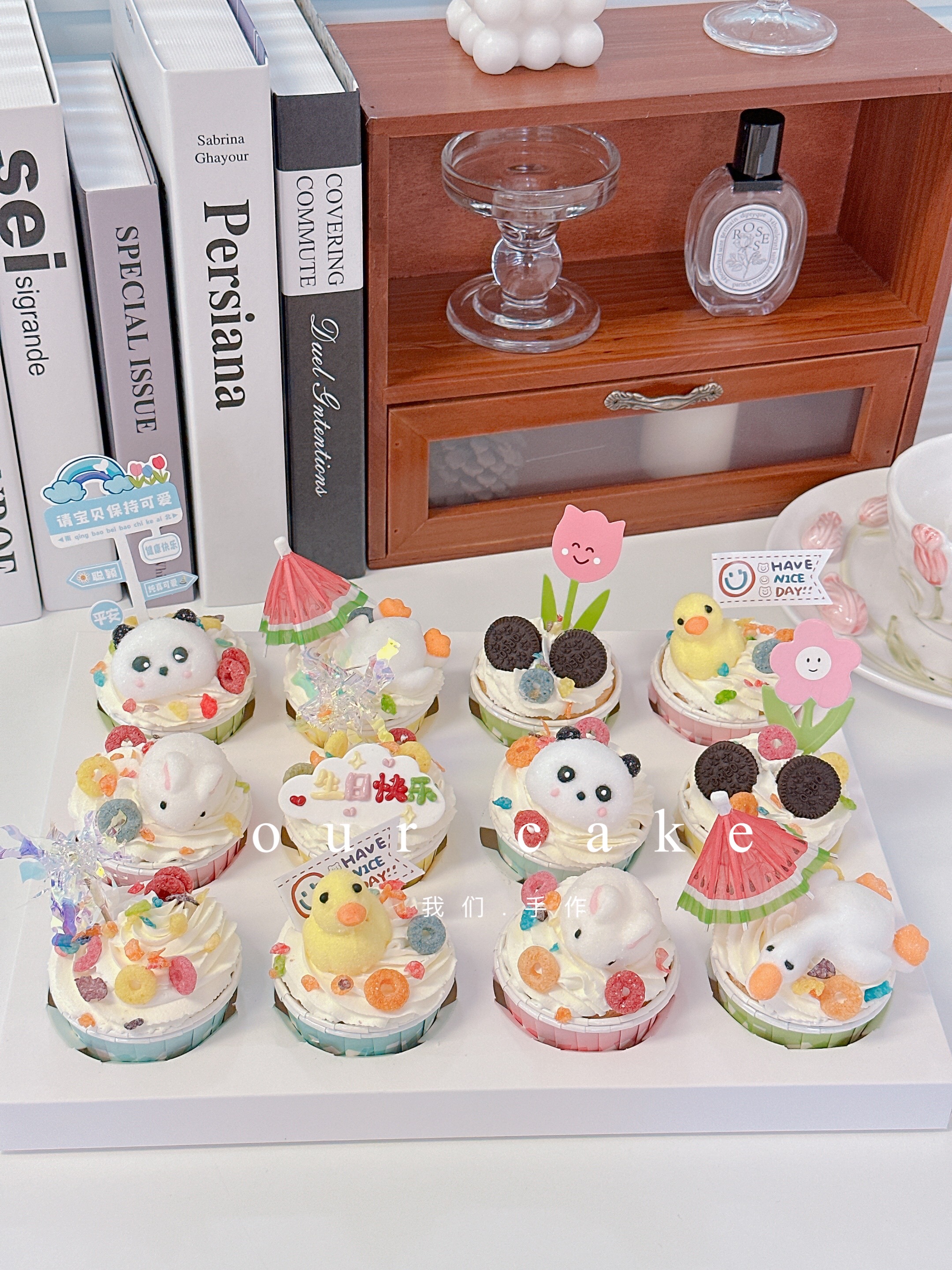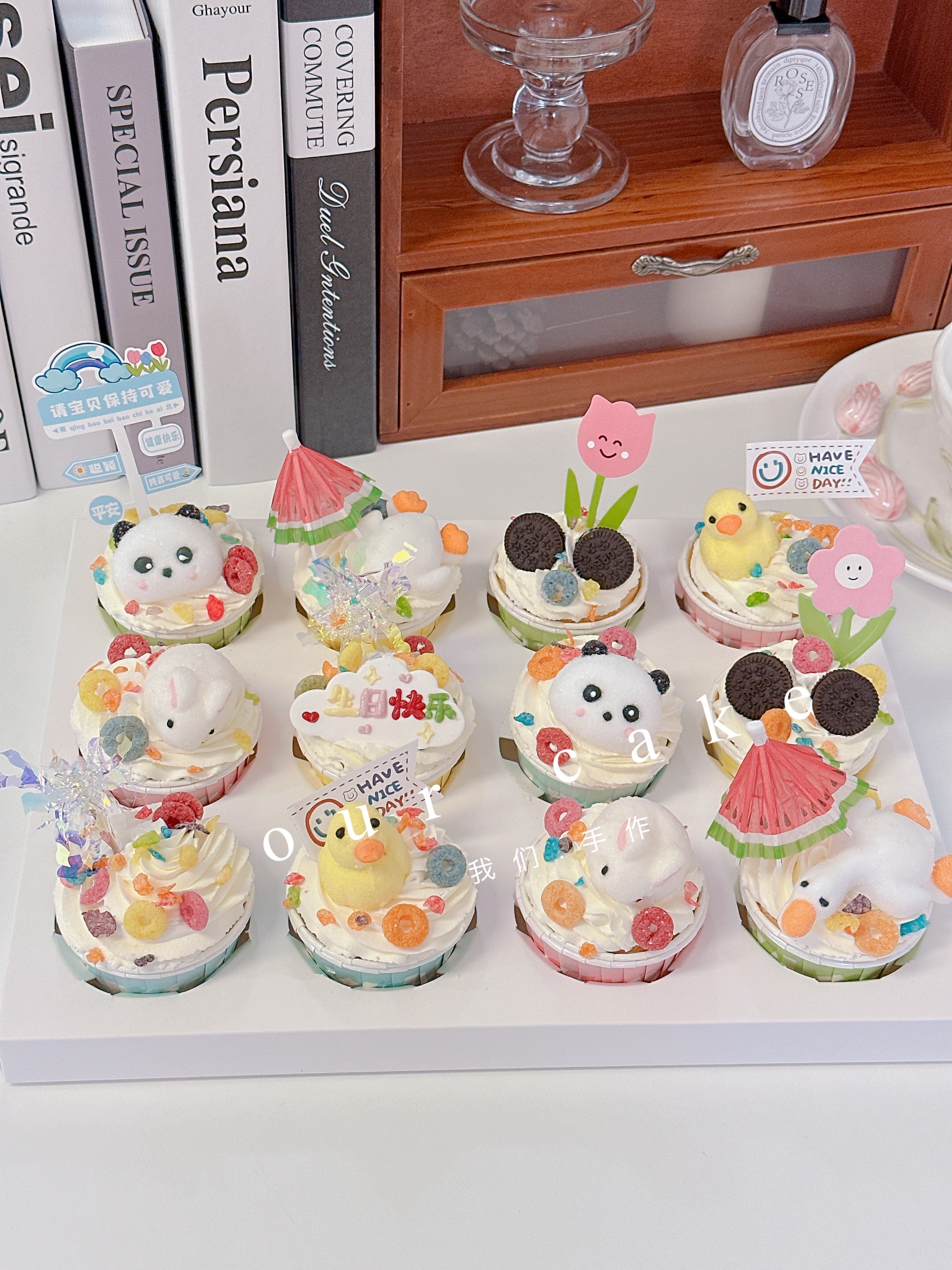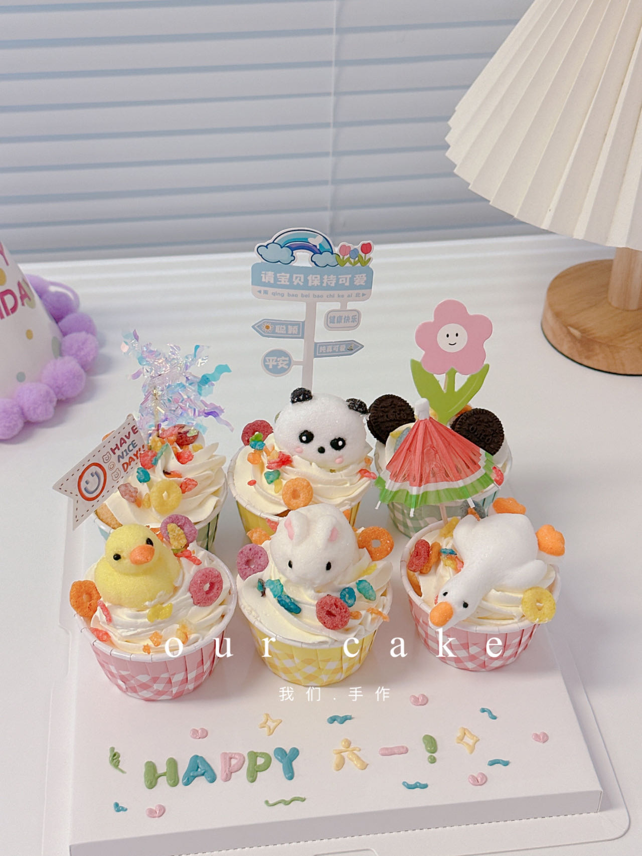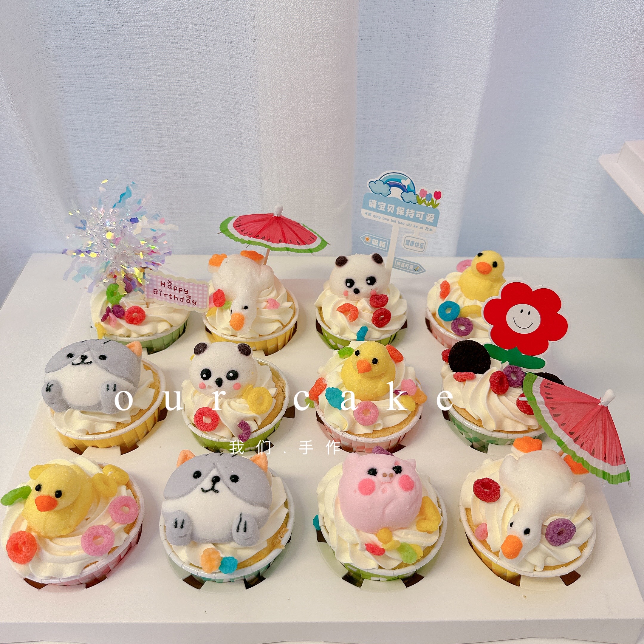 儿童可爱卡通棉花糖杯子蛋糕-无夹心内有卡仕达酱-低糖无添加