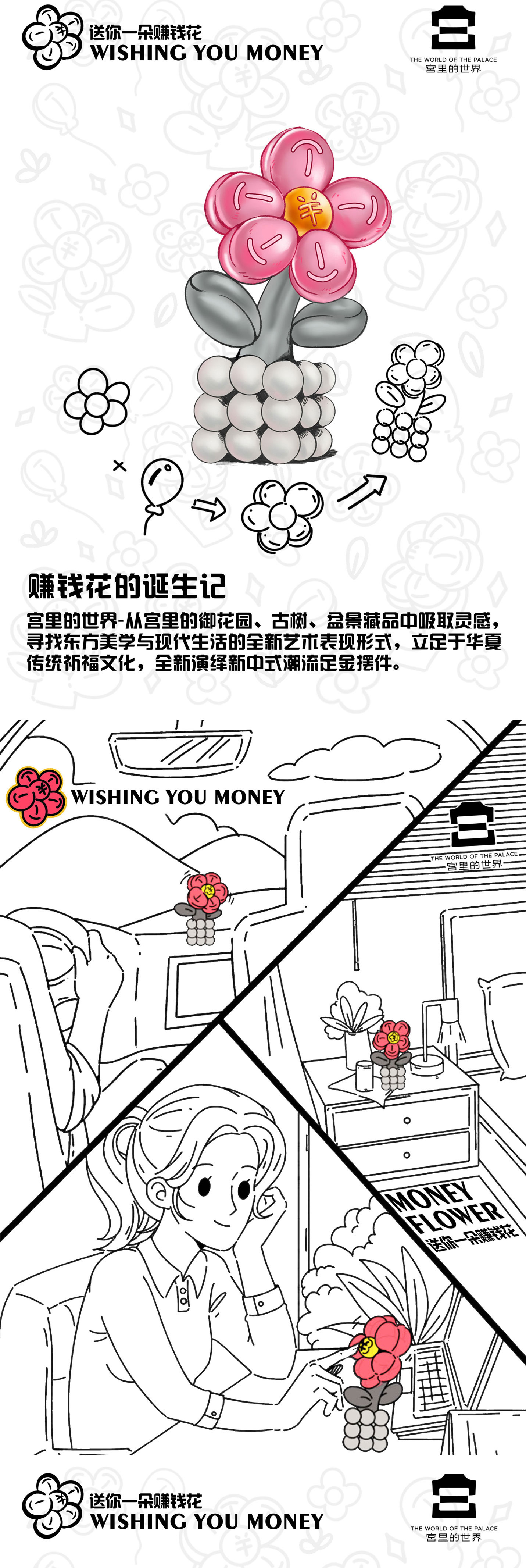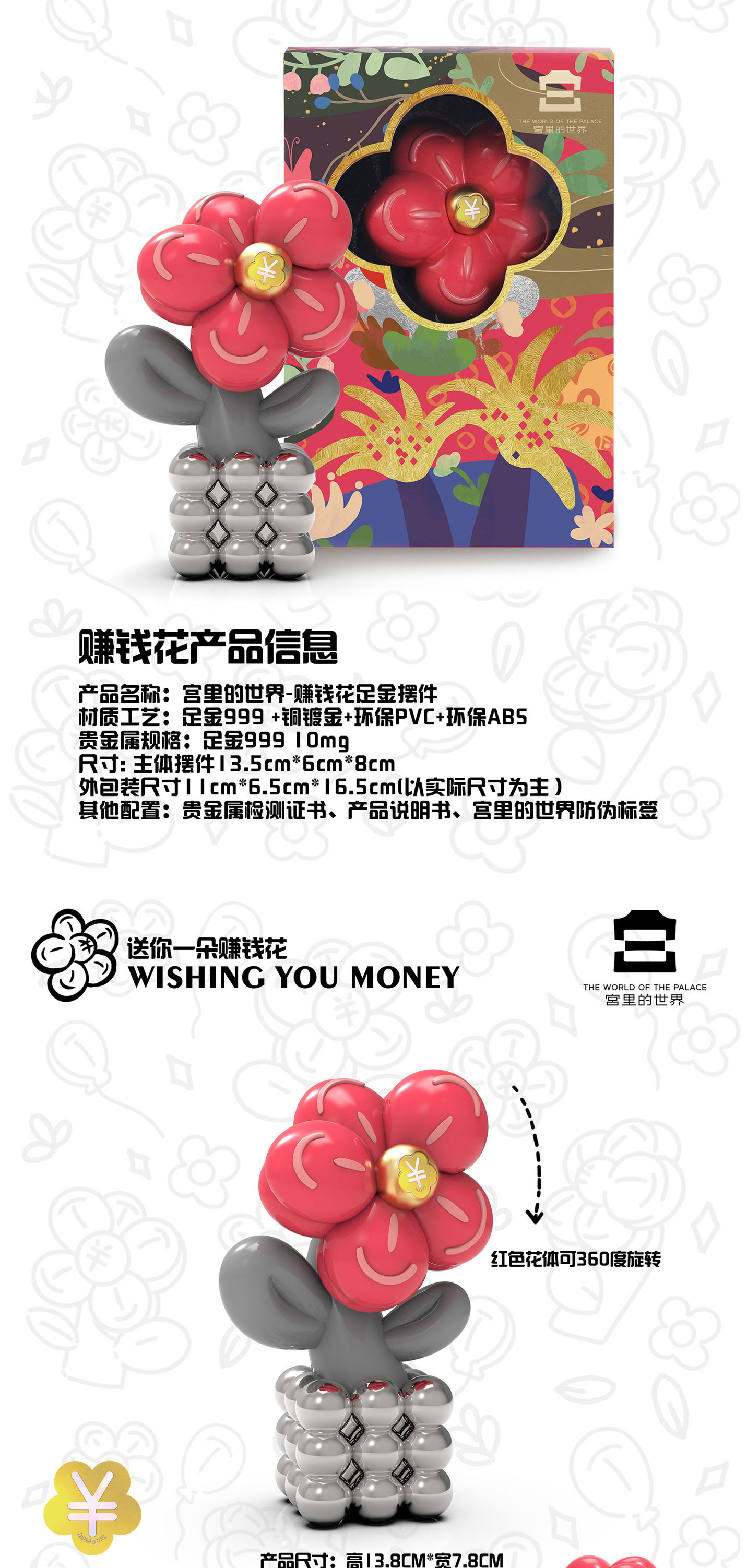 赚钱花足金招财摆件故宫文创桌摆摆台乔迁生日伴手礼新年春节礼物