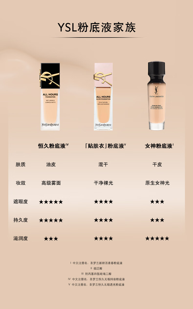 YSL圣罗兰 逆龄女神粉底液30ml 轻薄润养服帖持妆养肤细腻遮瑕