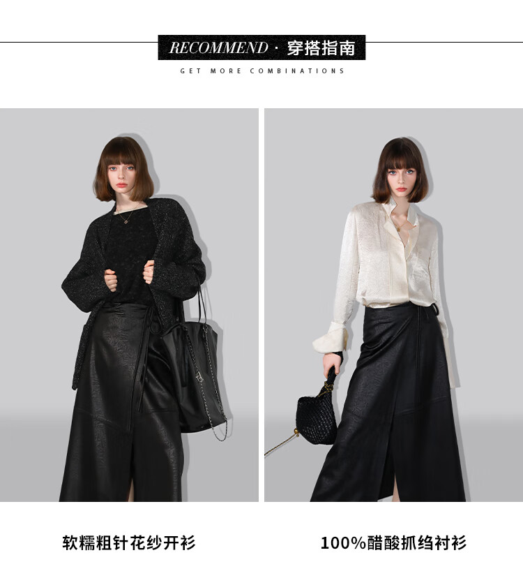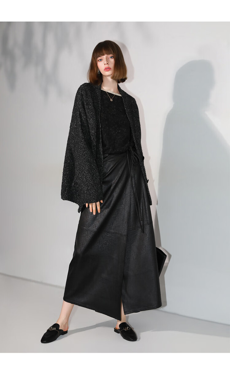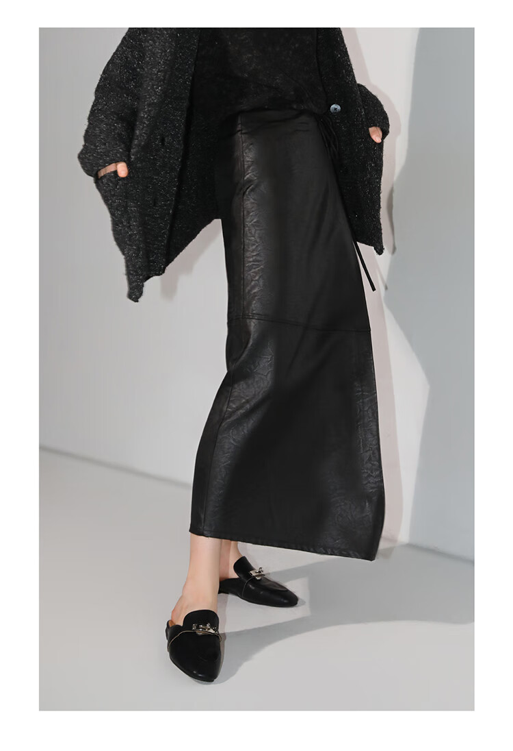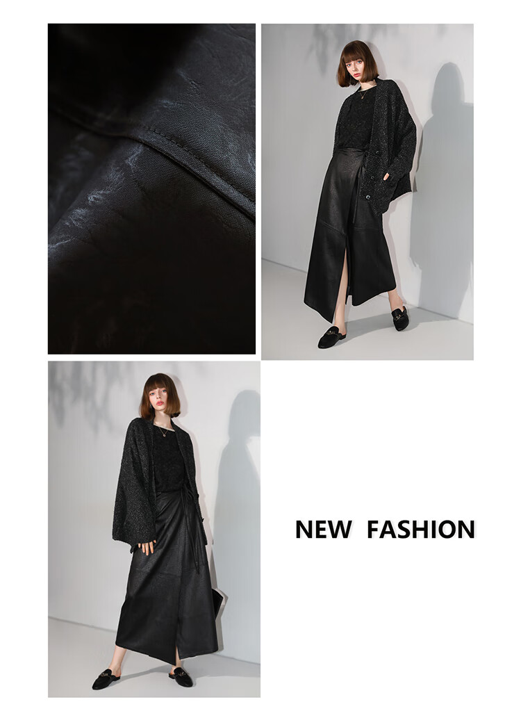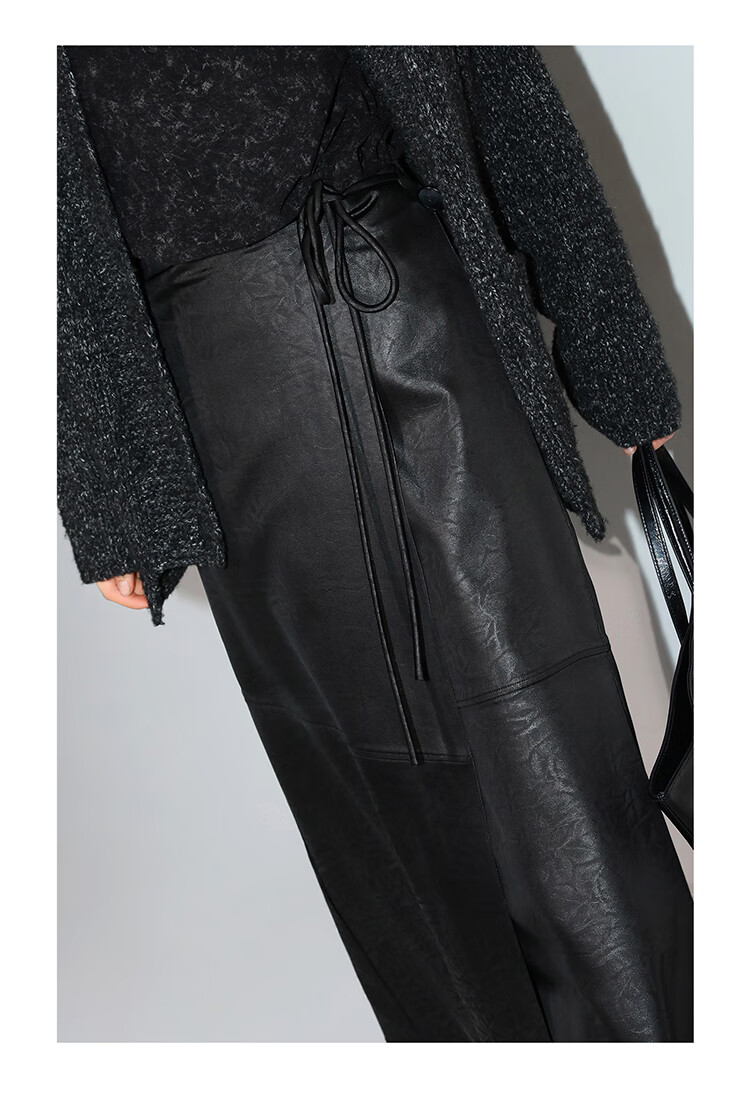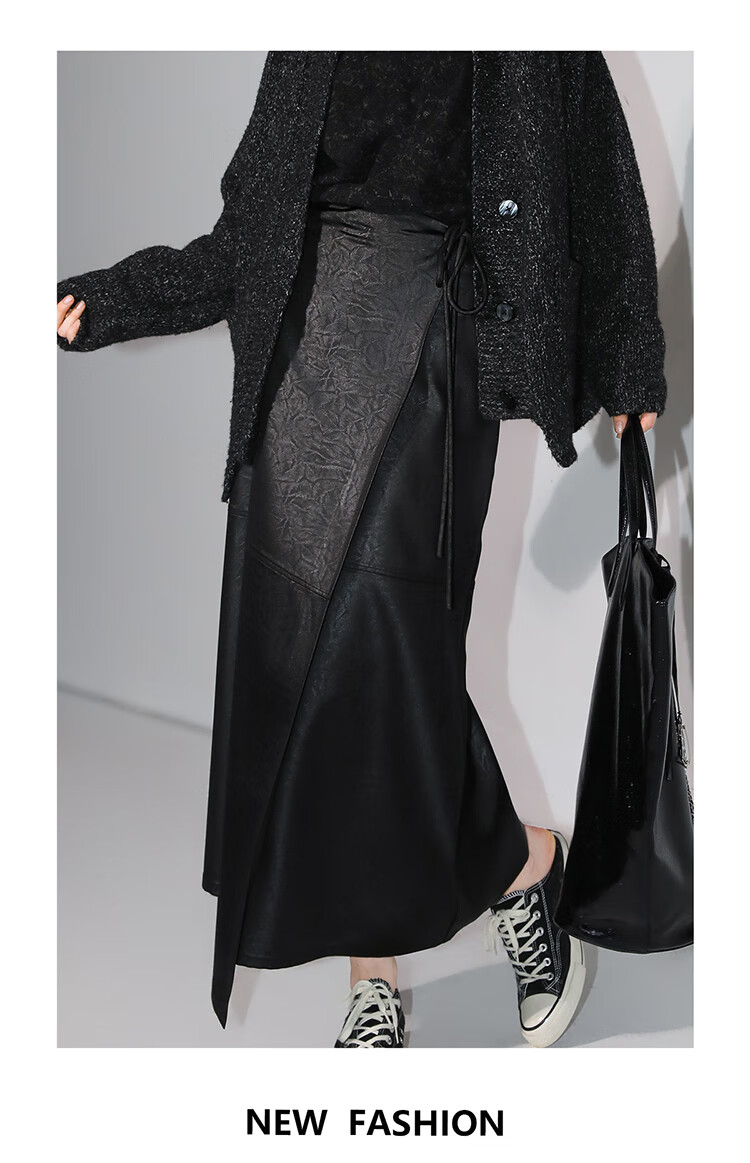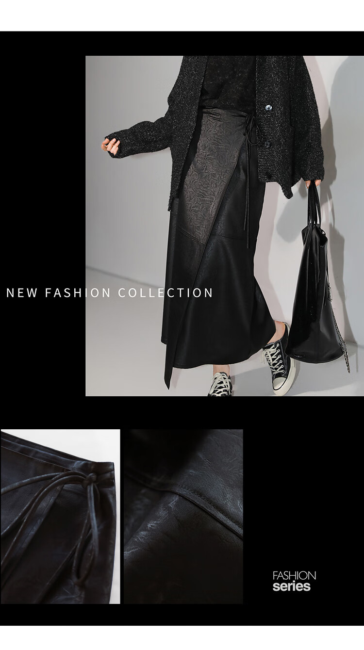 【秒杀】COCOBELLA静奢风折纸压花垂坠仿PU半身裙秋围裹式长裙HS3080