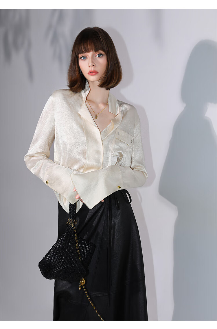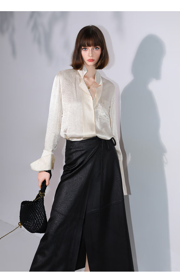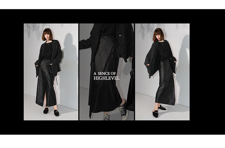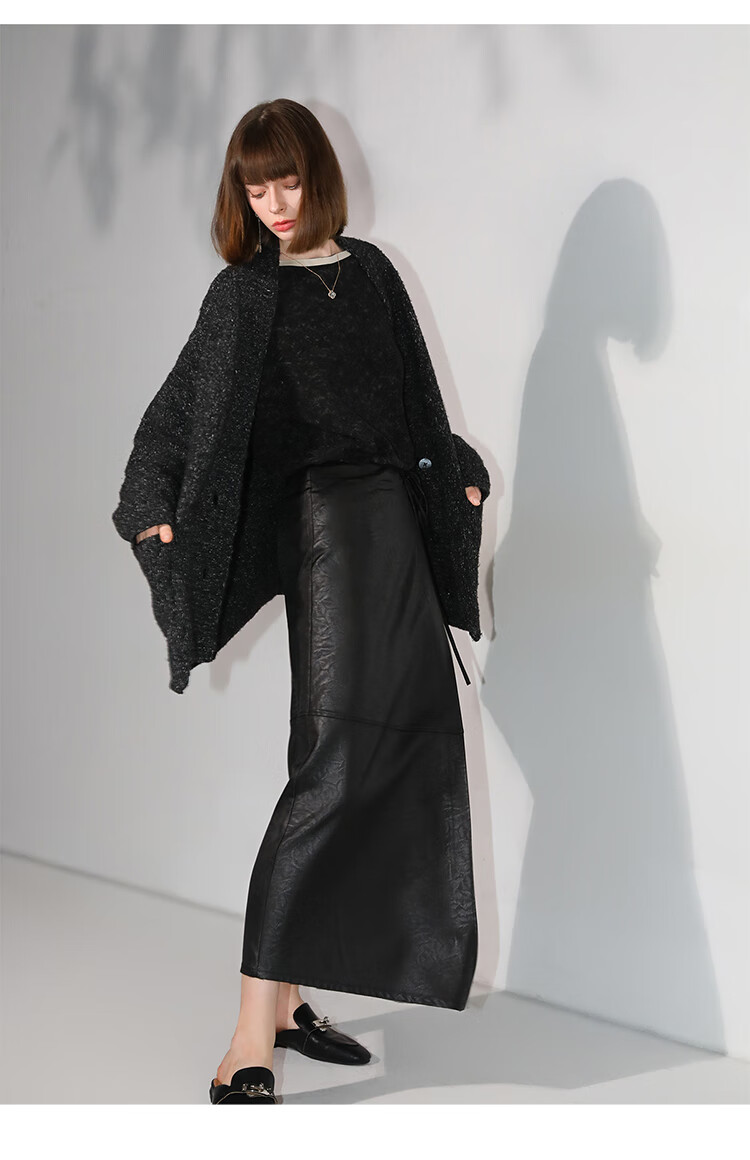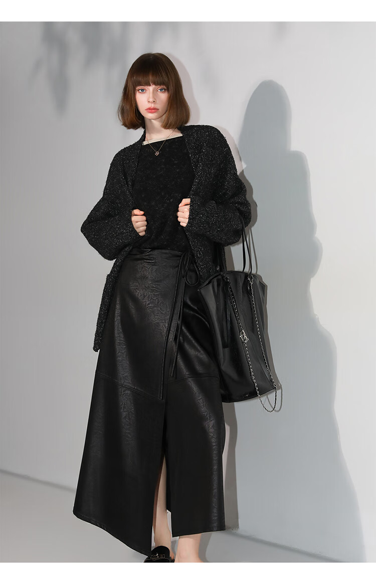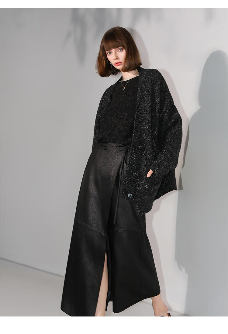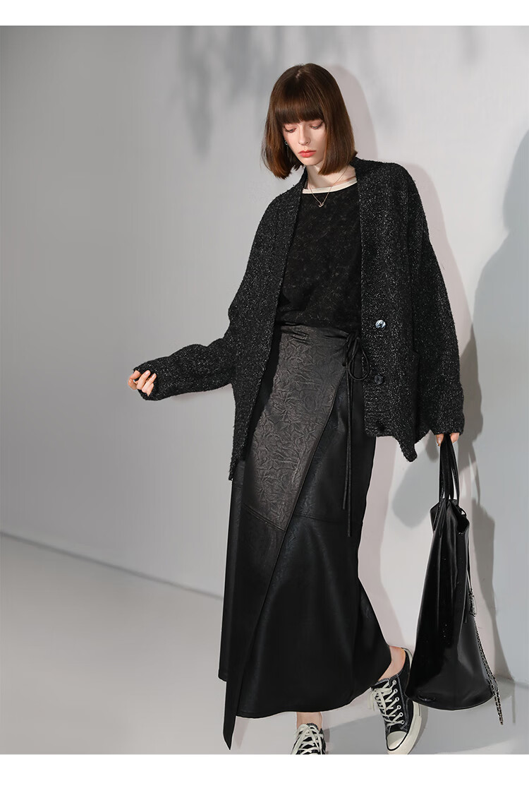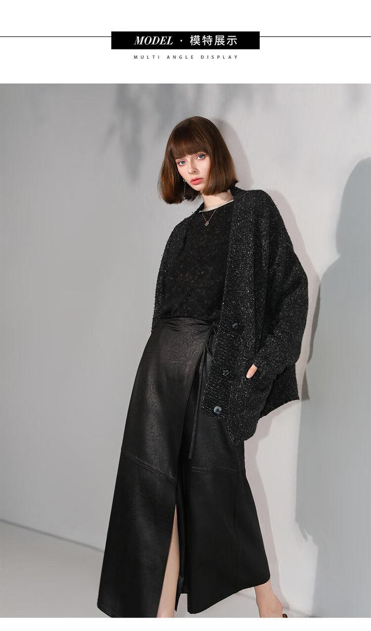 【秒杀】COCOBELLA静奢风折纸压花垂坠仿PU半身裙秋围裹式长裙HS3080