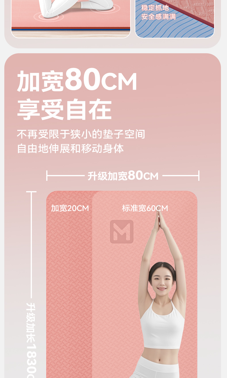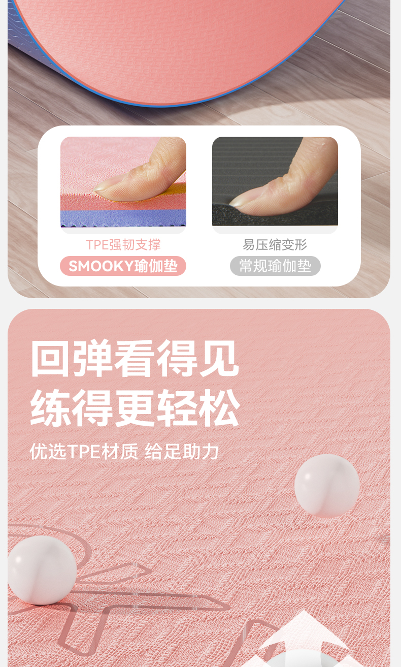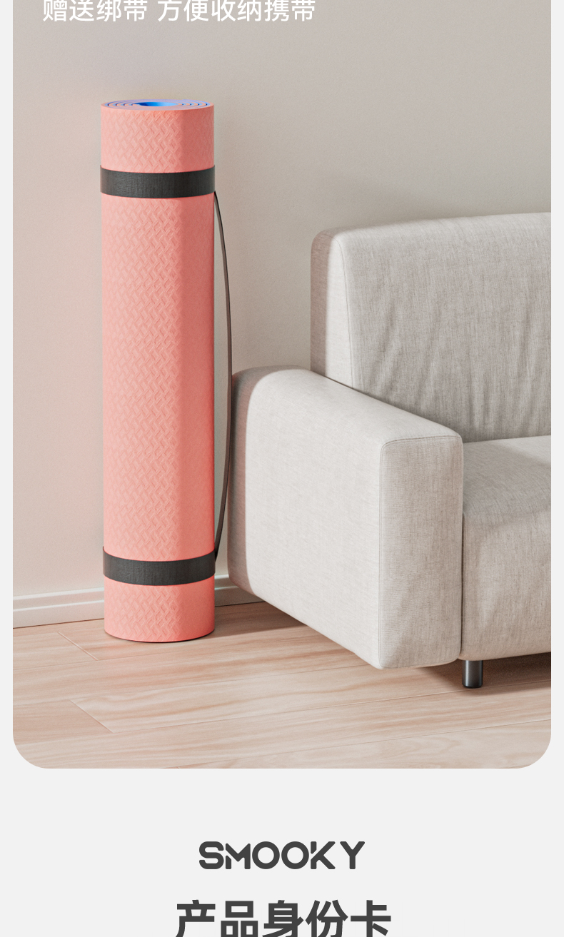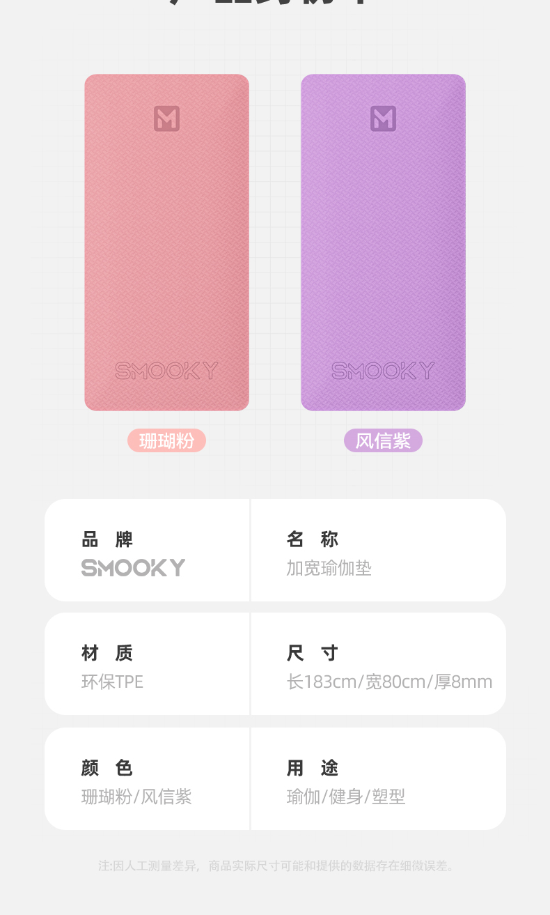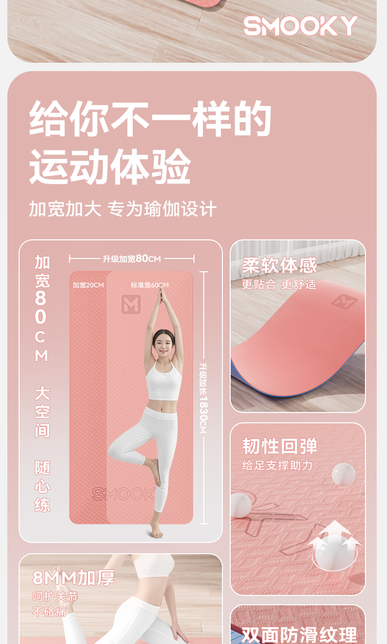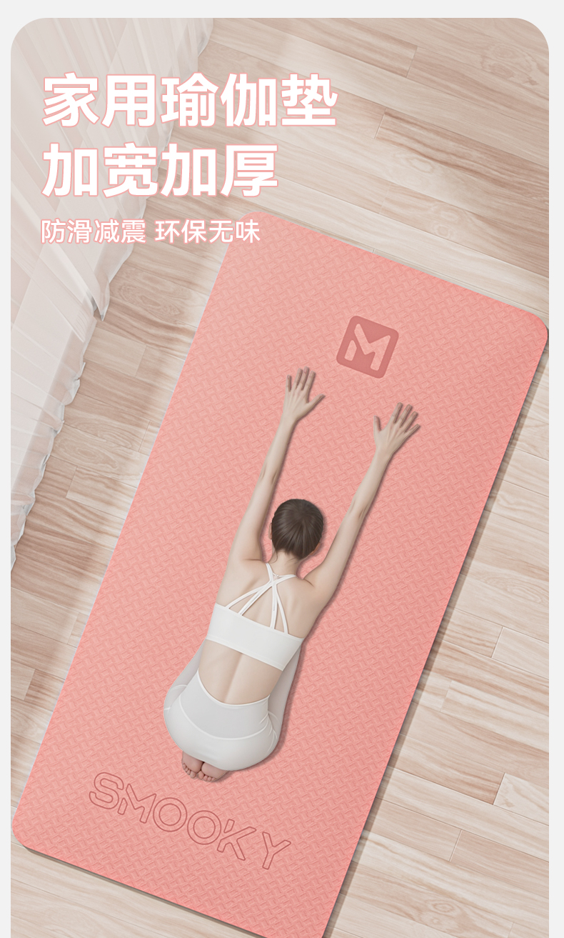 【自营】 SMOOKY瑜伽垫 加宽加大 柔软贴合 8MM厚度 二色可选