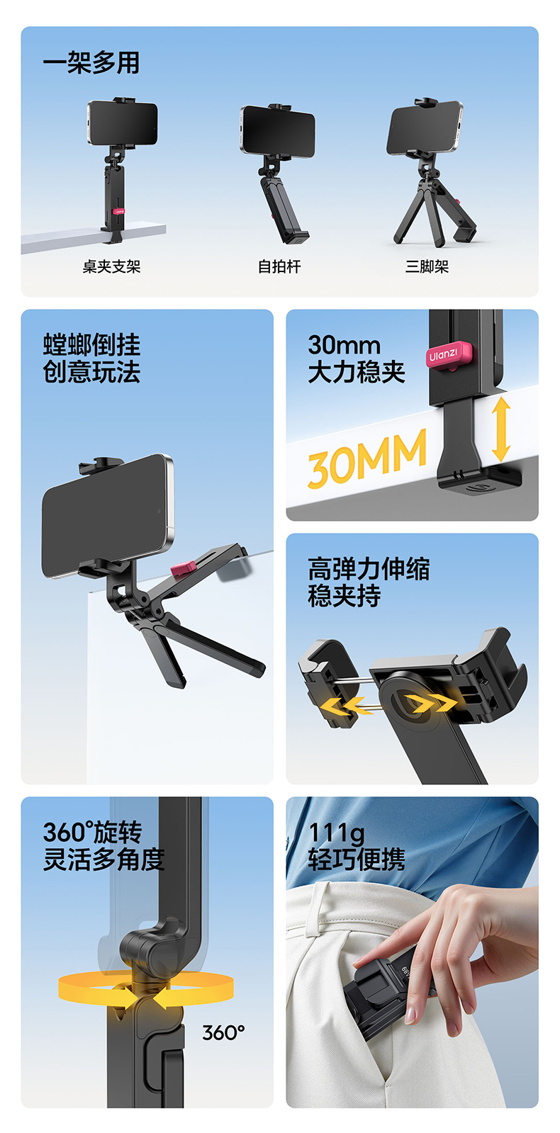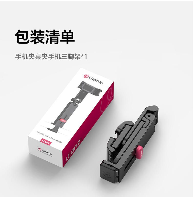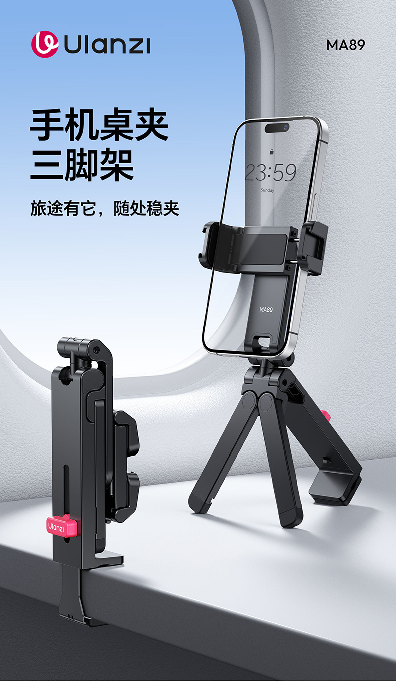 Ulanzi优篮子 MA89手机桌夹三脚架迷你便携旅行手机支架高铁飞机桌板专用夹子火车桌面固定拍摄折叠支撑架