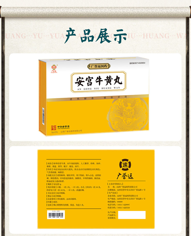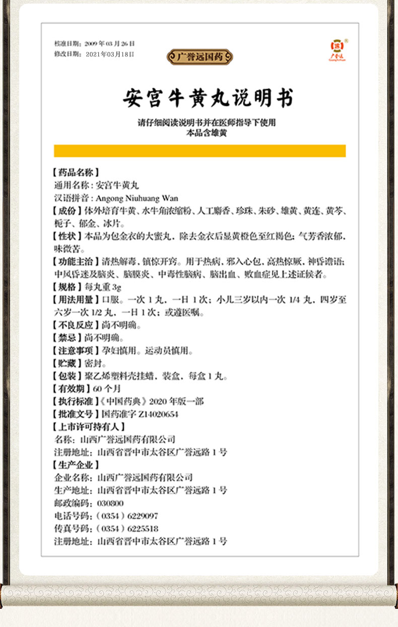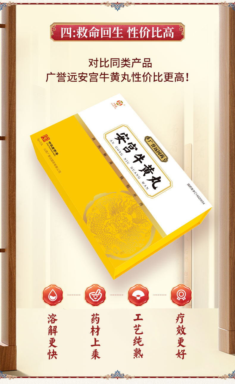 【3盒】广誉远安宫牛黄丸3g*8丸/盒(体培)