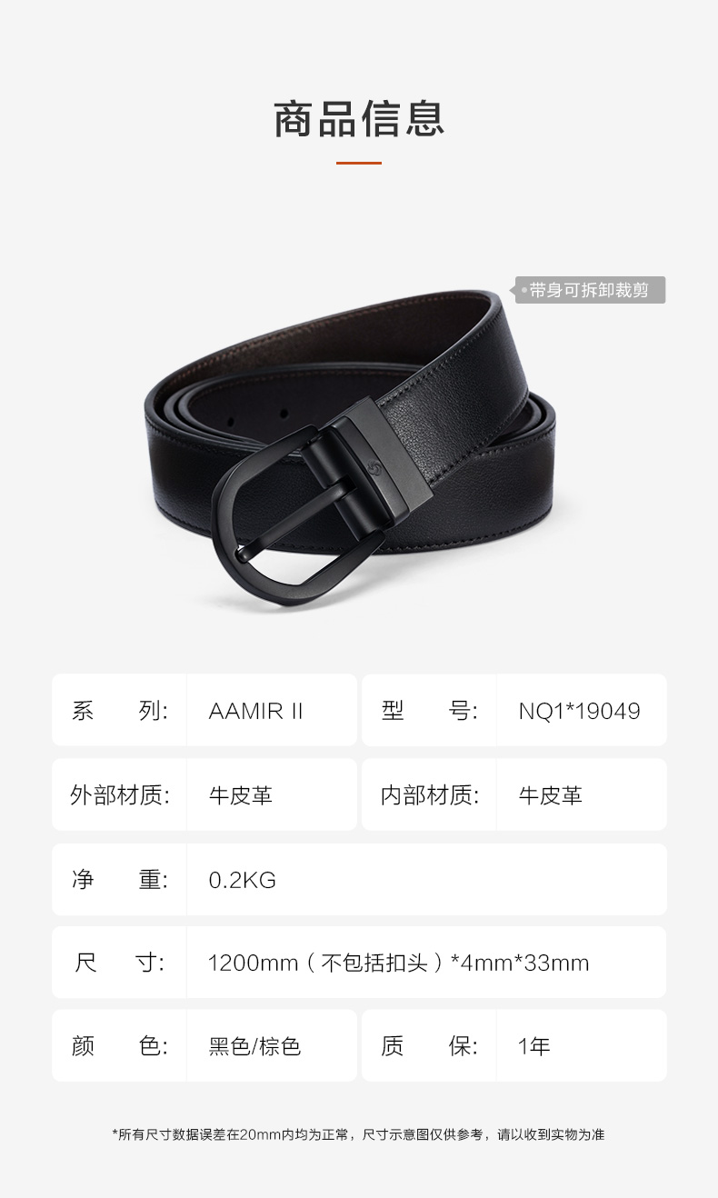 新秀丽AMARE II系列针扣头商务皮带NQ1*19049