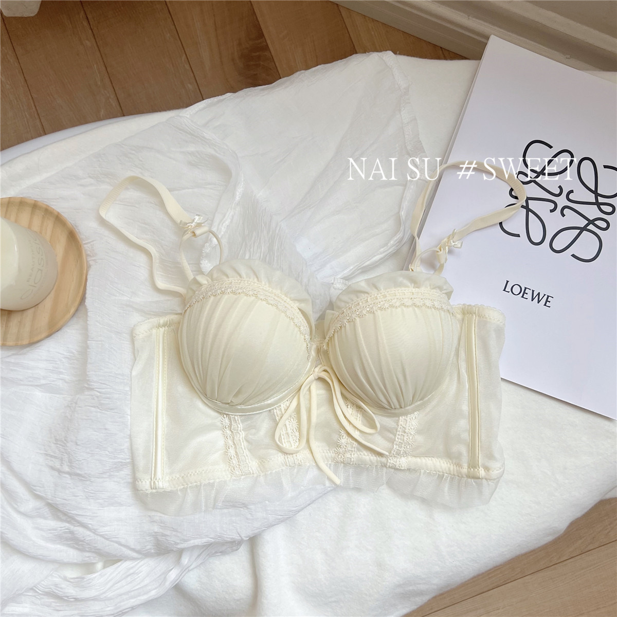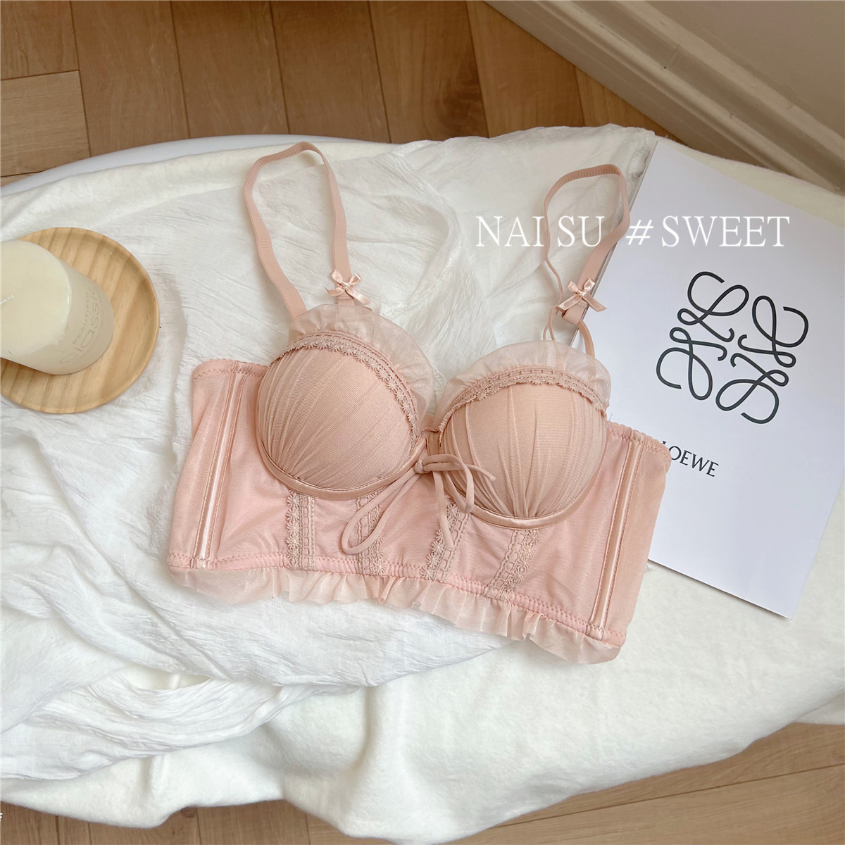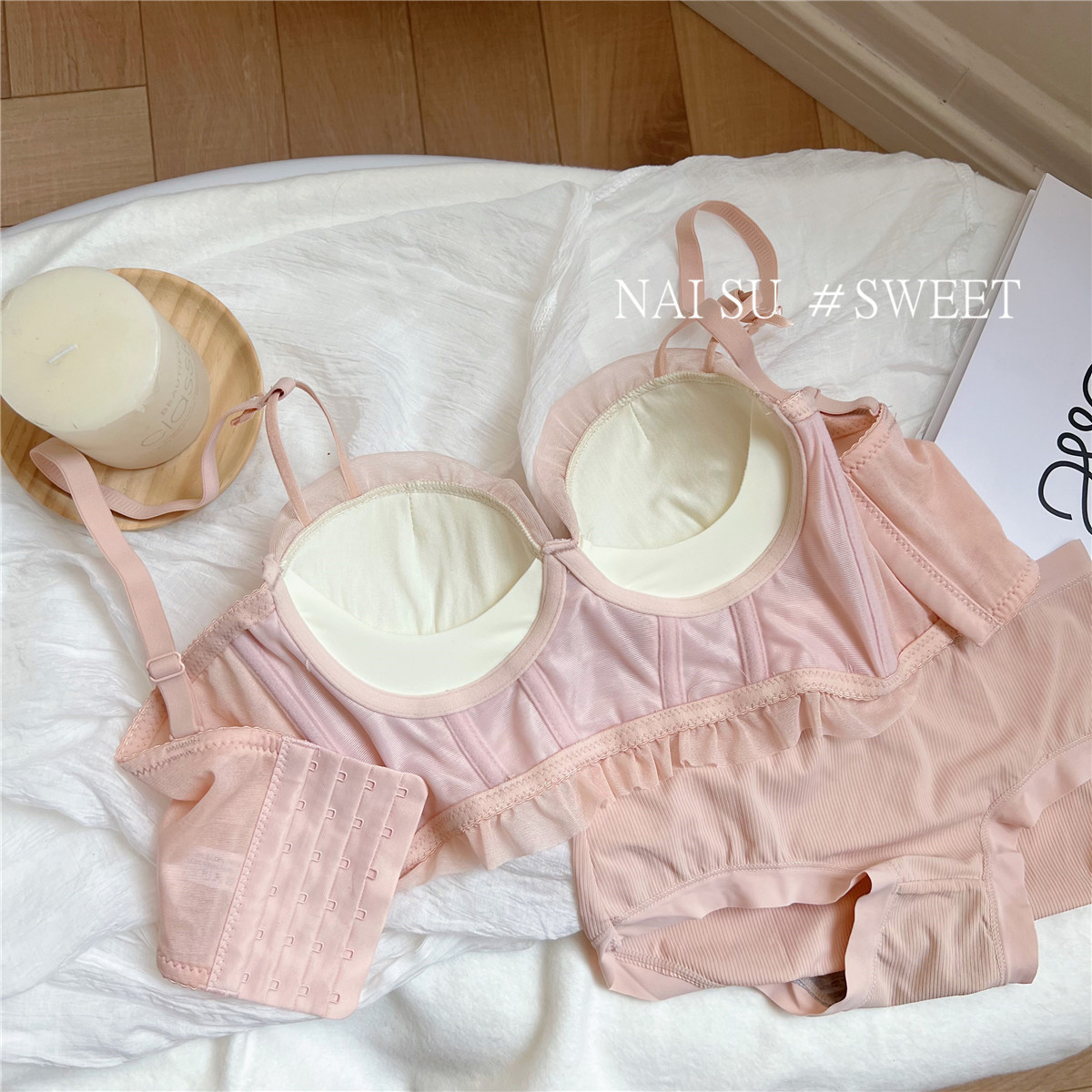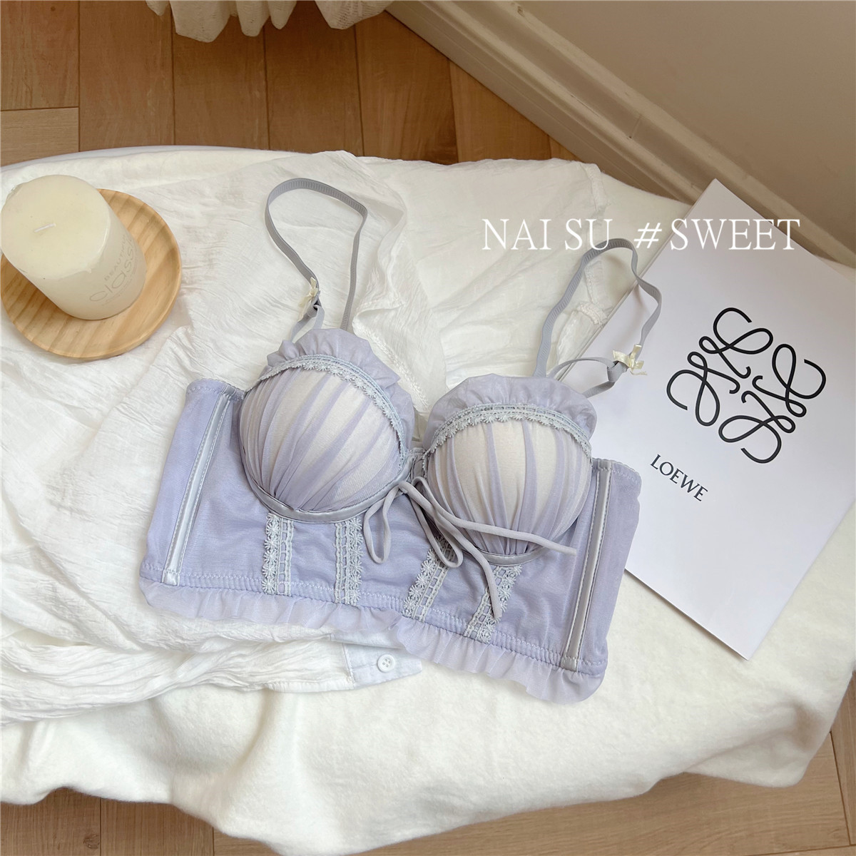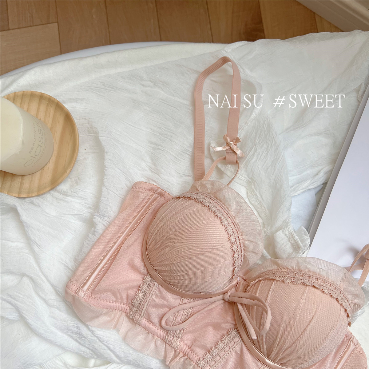 纯欲马甲式蕾丝性感内衣女 小胸聚拢新款 大胸显小胸文胸套装女 无钢圈胸罩