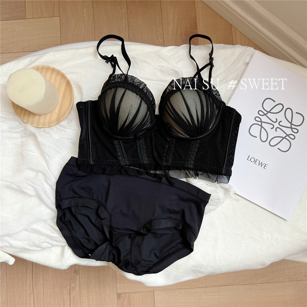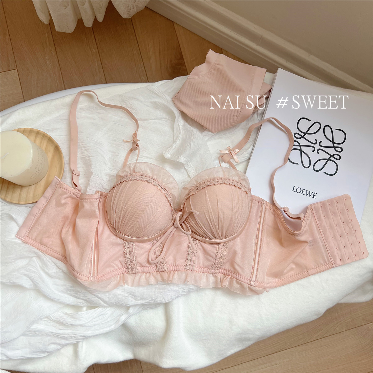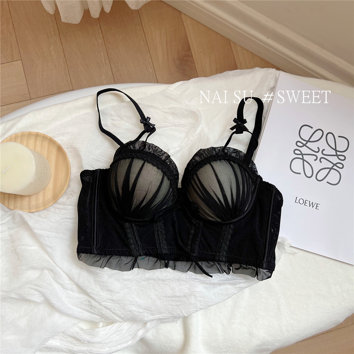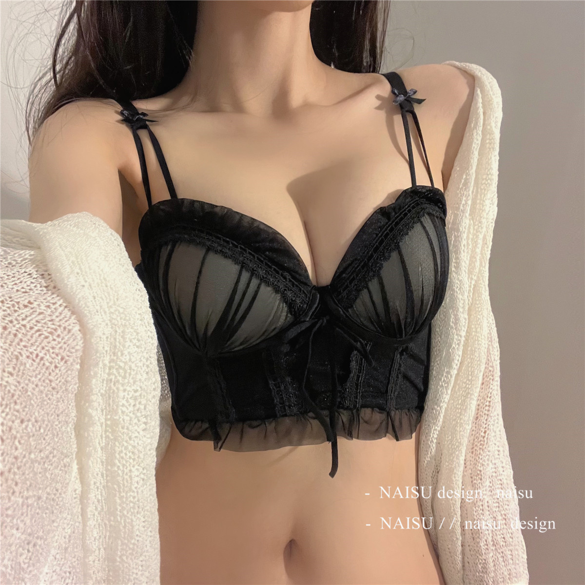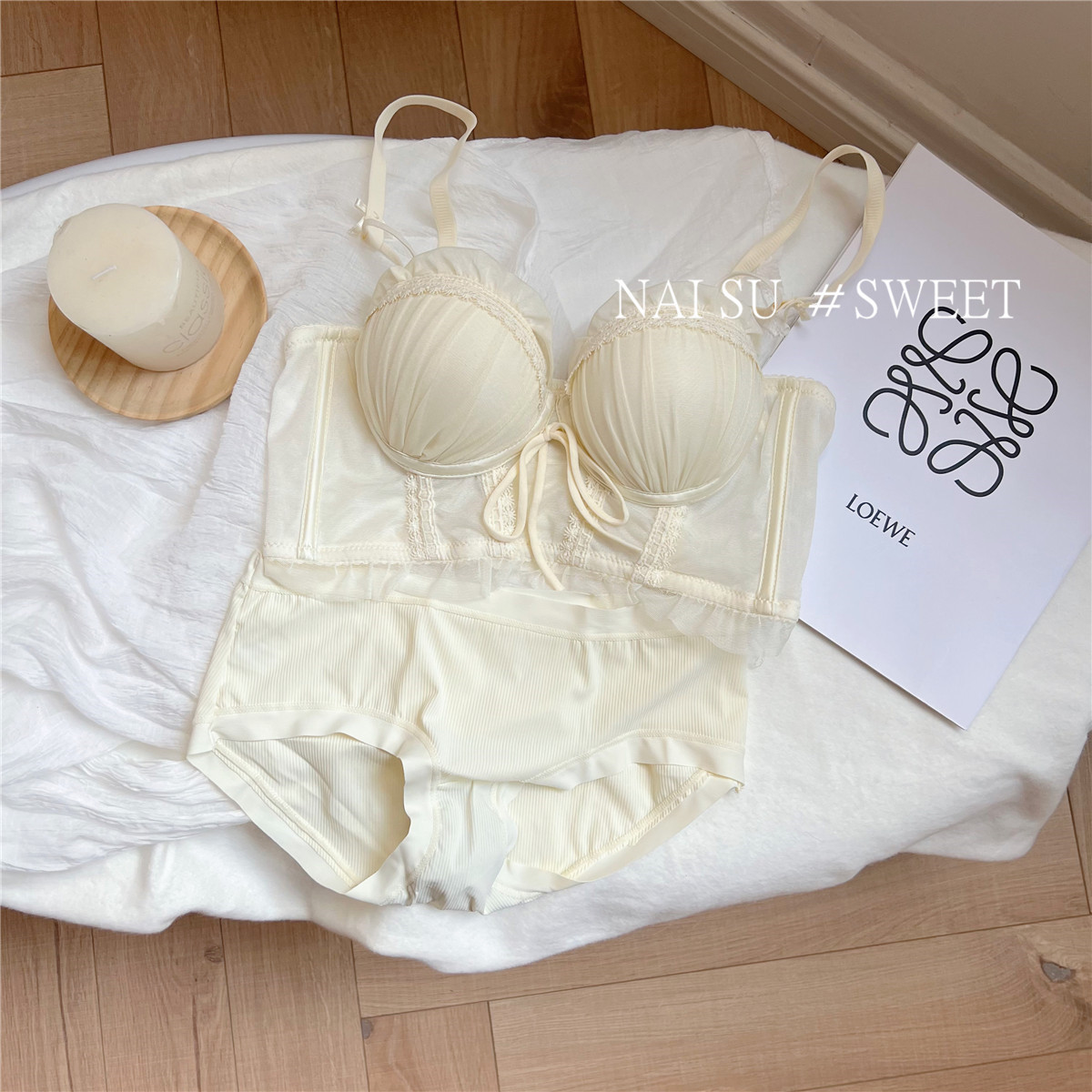 纯欲马甲式蕾丝性感内衣女 小胸聚拢新款 大胸显小胸文胸套装女 无钢圈胸罩