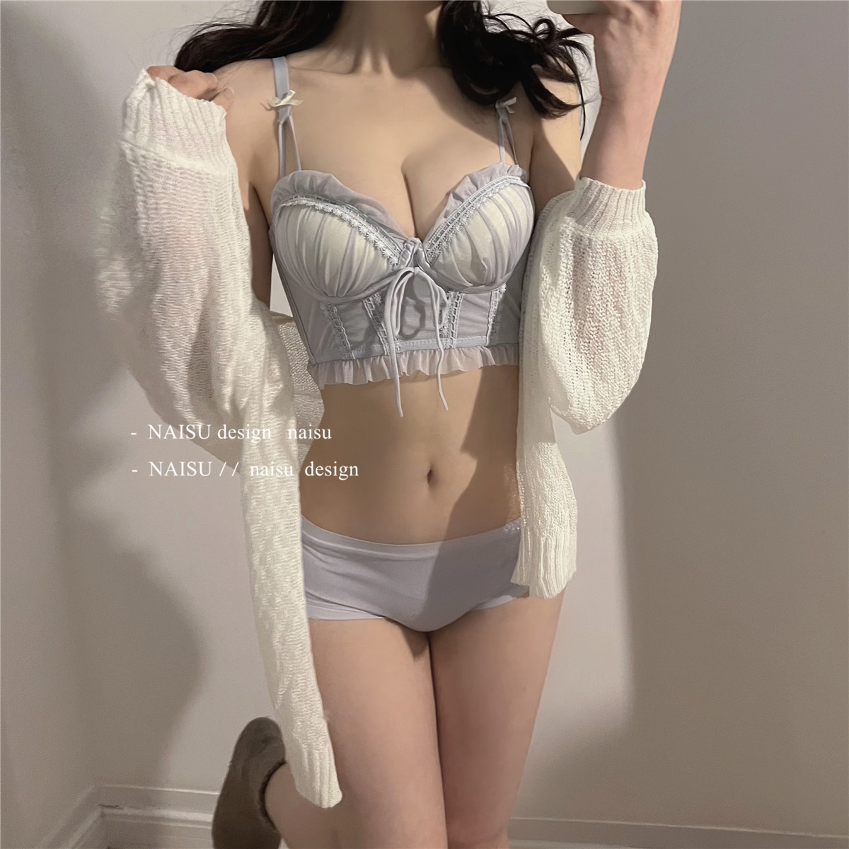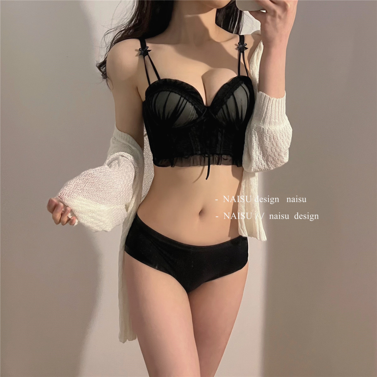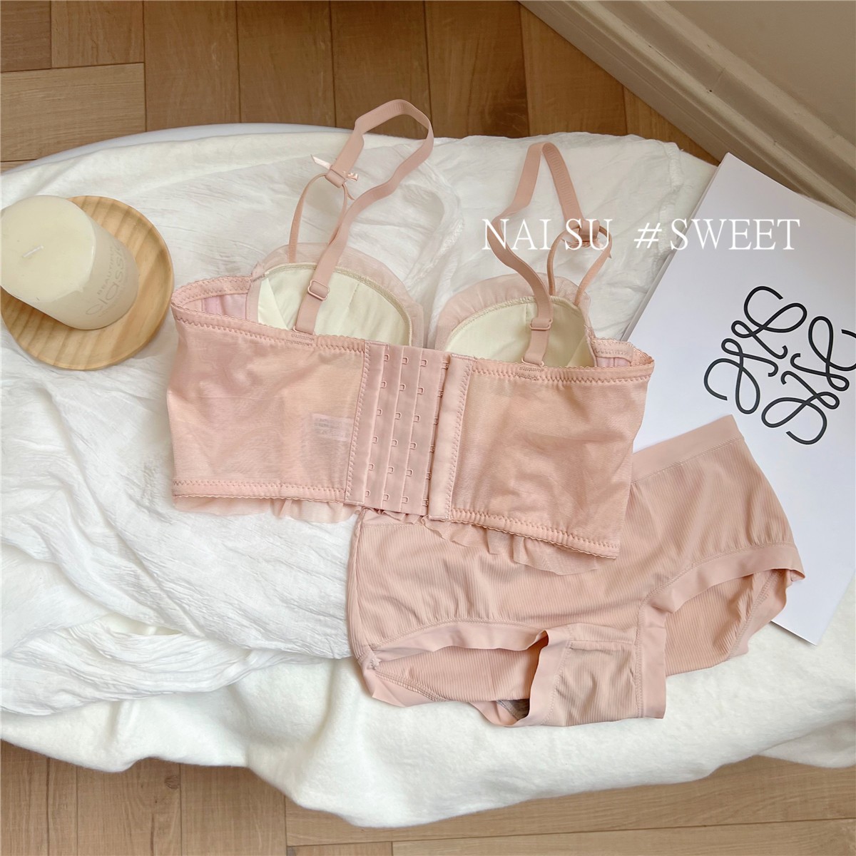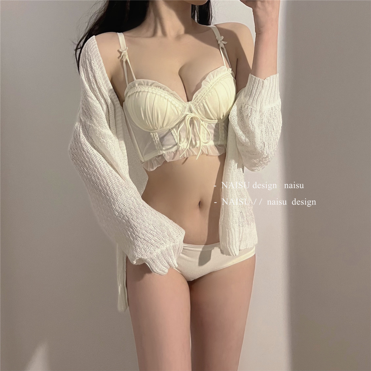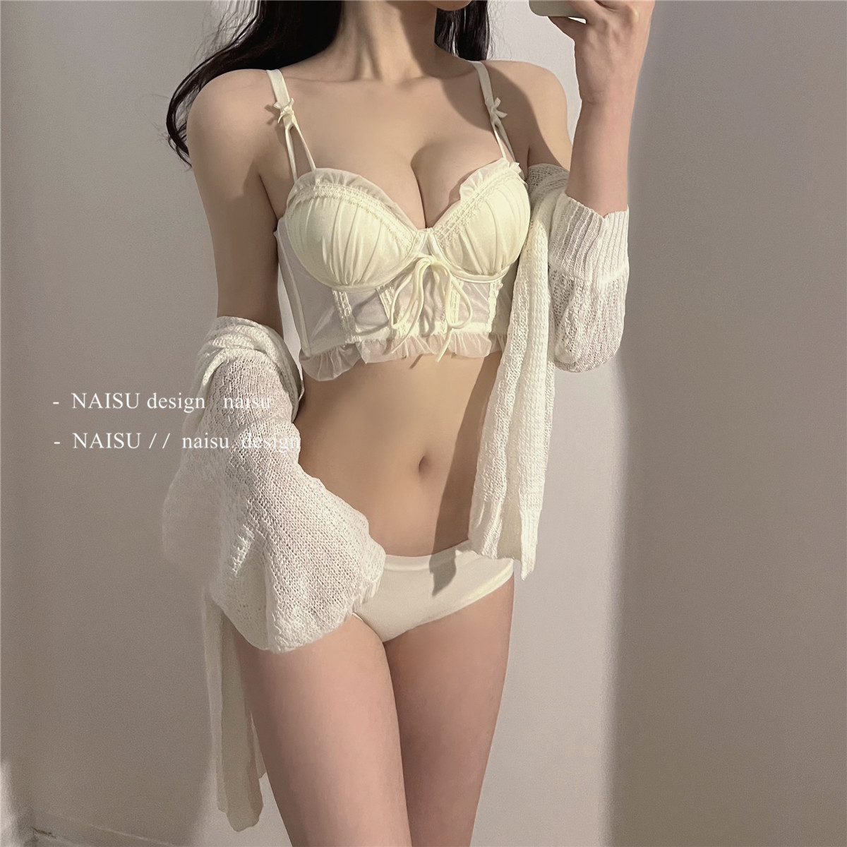 纯欲马甲式蕾丝性感内衣女 小胸聚拢新款 大胸显小胸文胸套装女 无钢圈胸罩