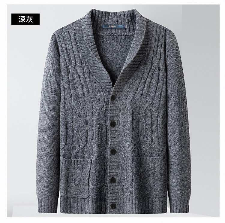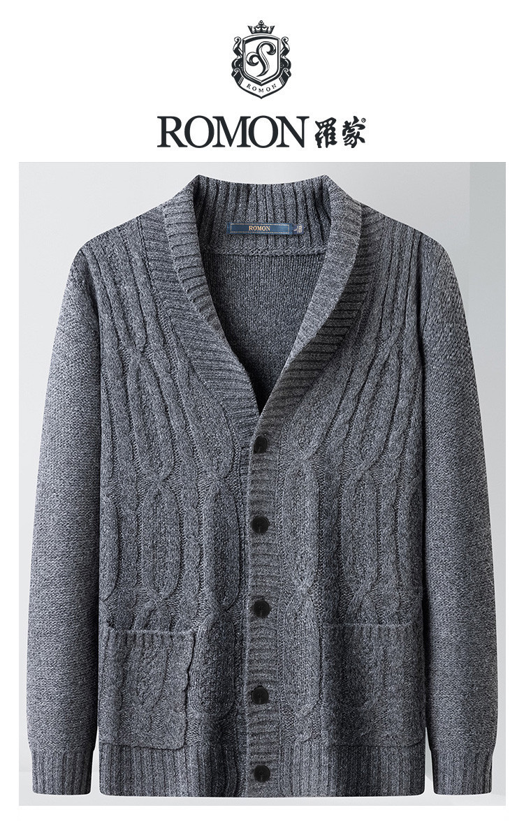 罗蒙男士冬季含羊毛针织开衫男舒适百搭外套男士通勤毛衣男针织衫