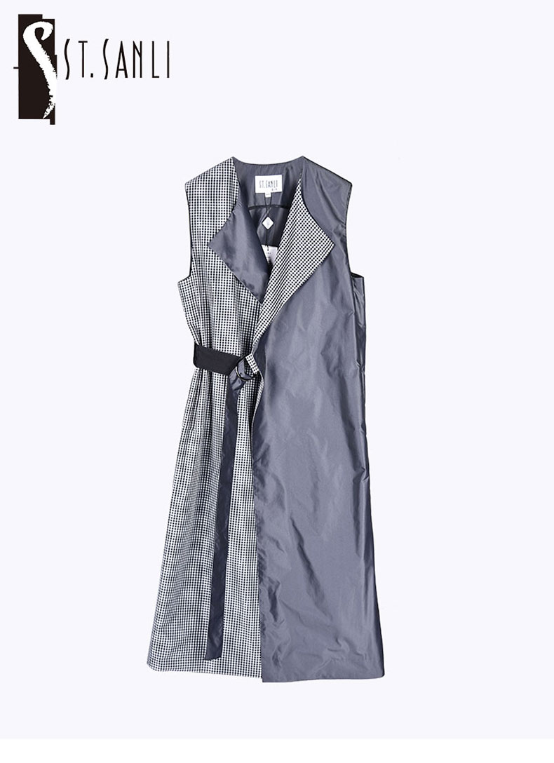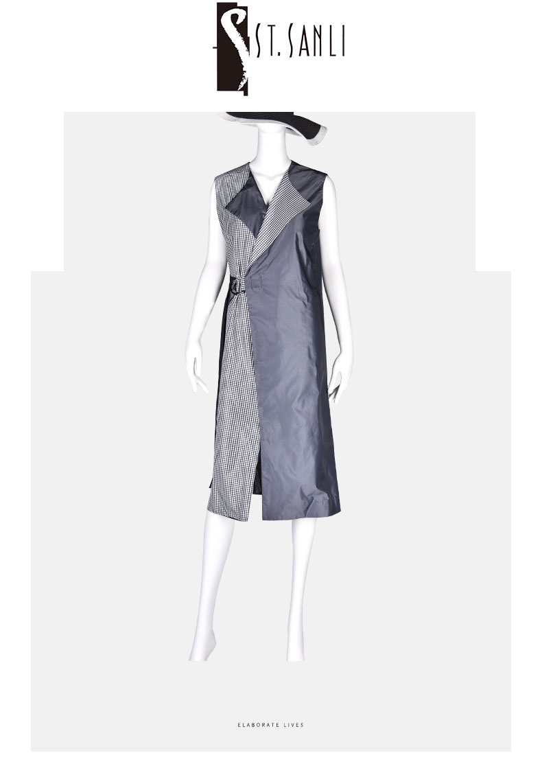圣三利女装 茧型褶皱微弹金丝中长款连衣裙SL1927226