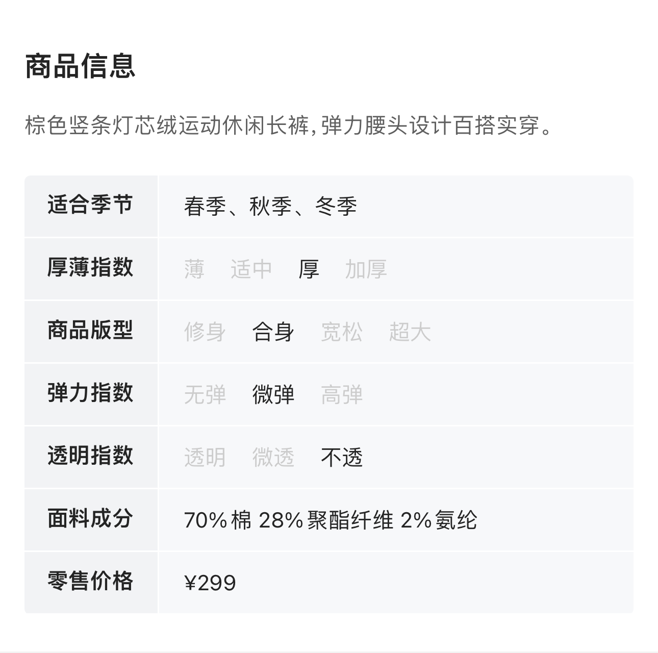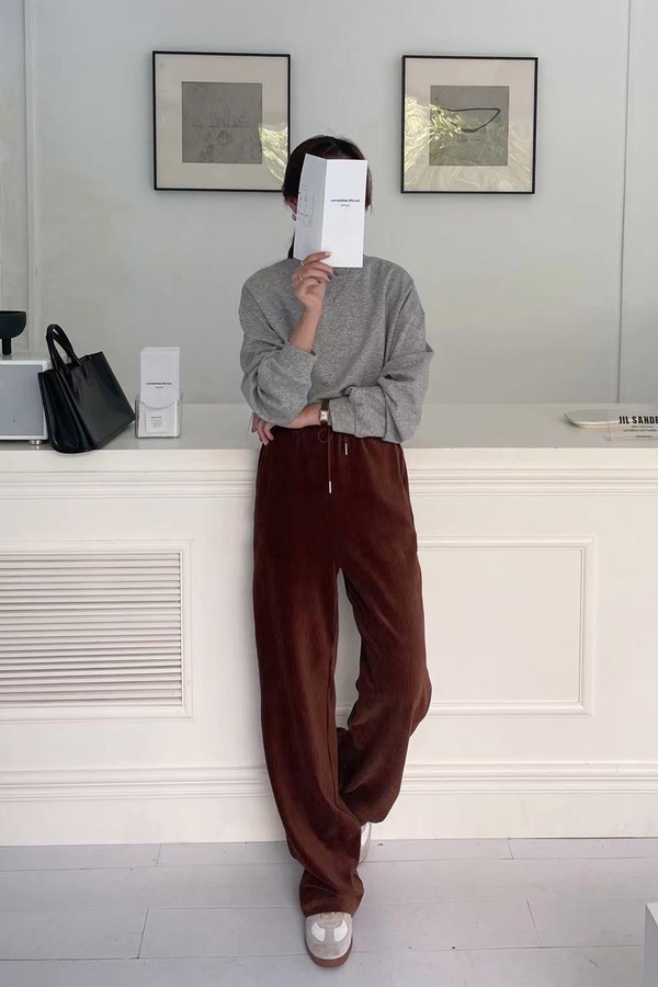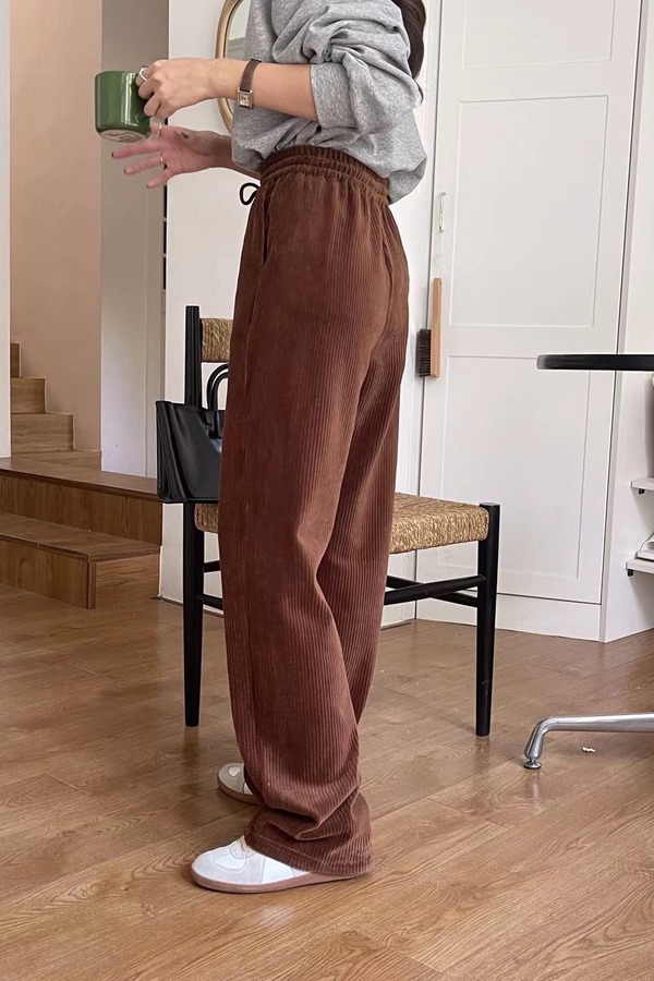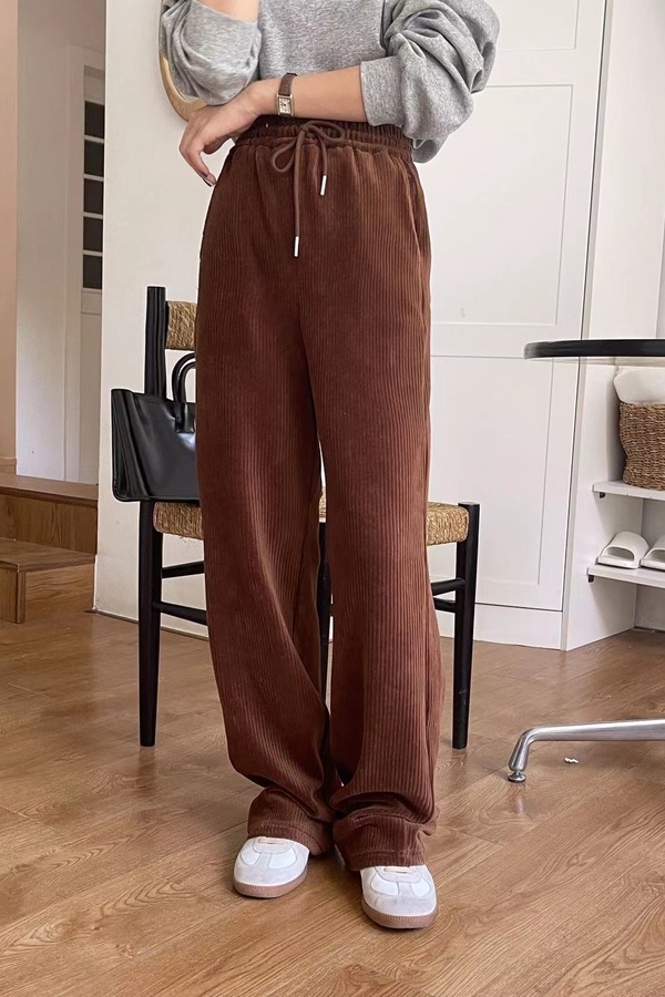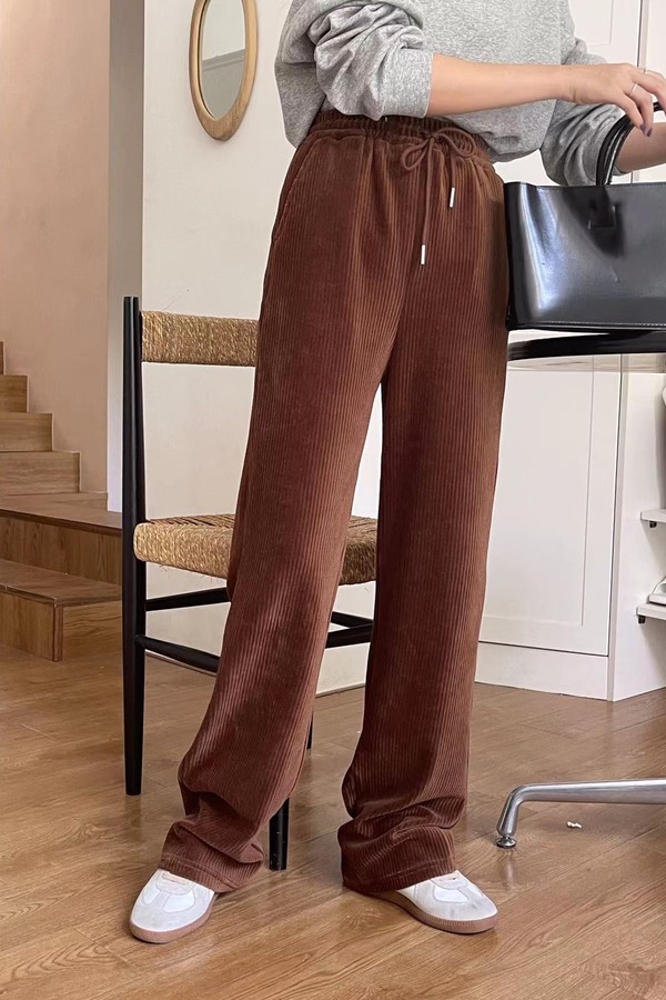 LNNNS 棕色休闲百搭竖条灯芯绒长裤 17753