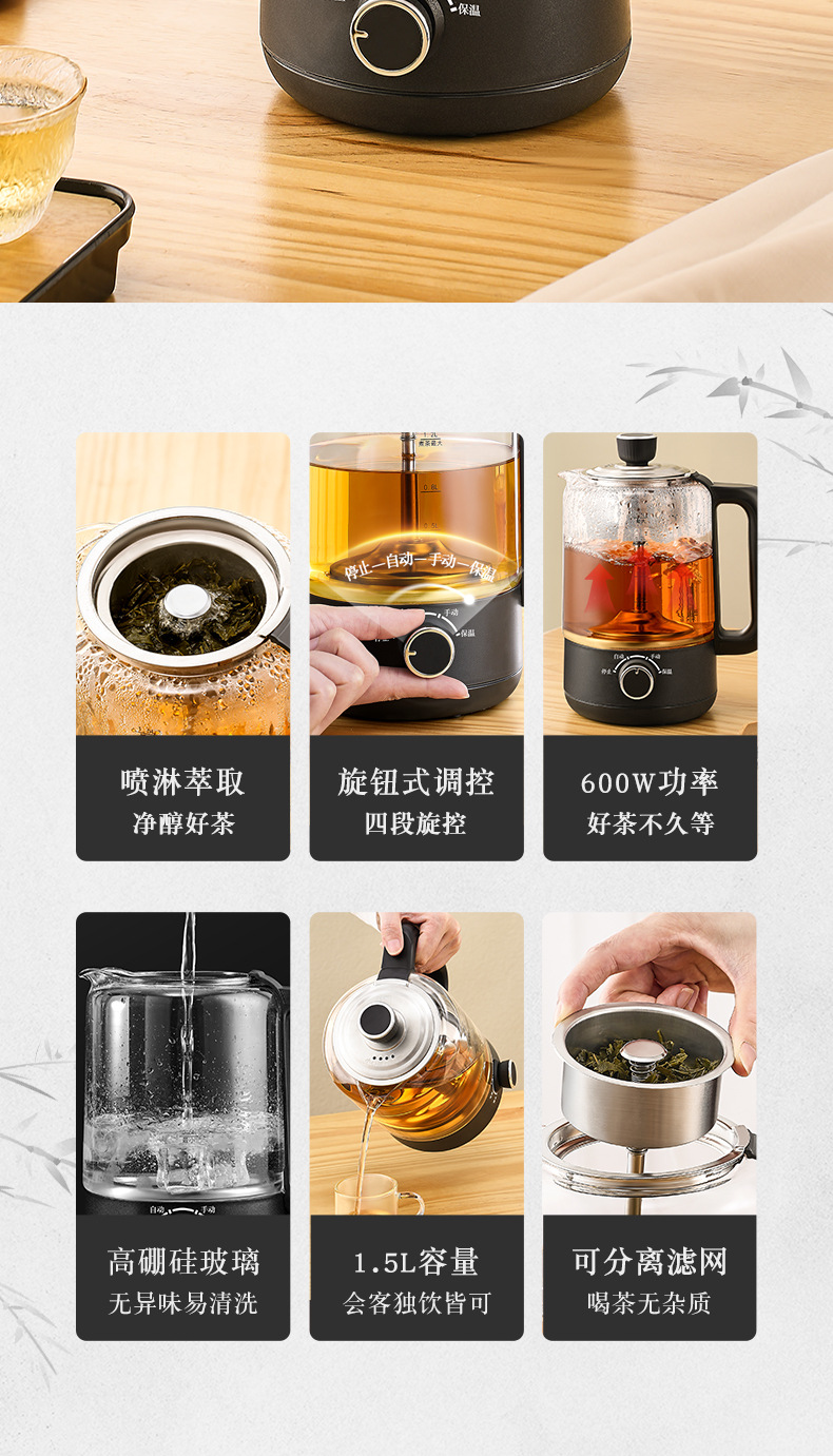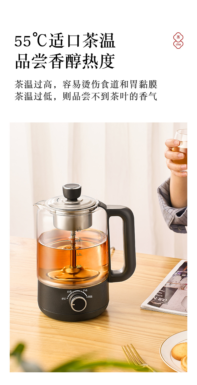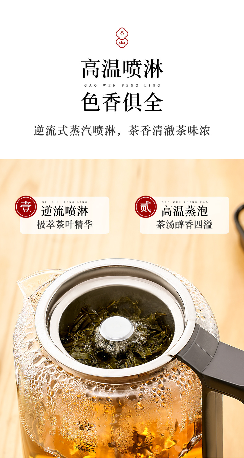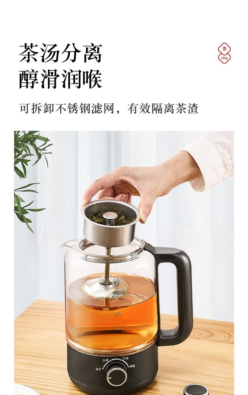 【蒸汽煮茶 滋味清幽】一壶好茶,蒸汽萃取香气;360°分离式底座,安全又省心;四段蒸煮曲线,恰到好处;可拆卸滤网,清洗无死角。煮茶不再费劲,品味生活从容不迫!