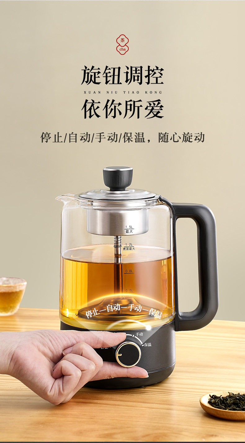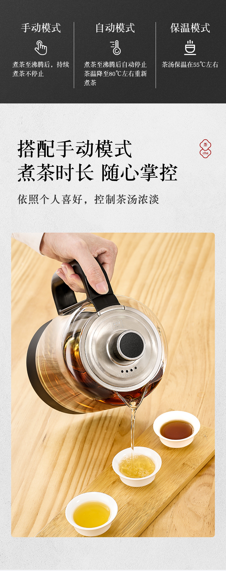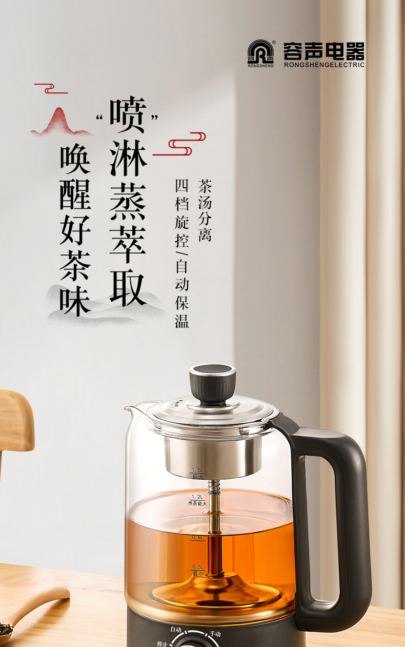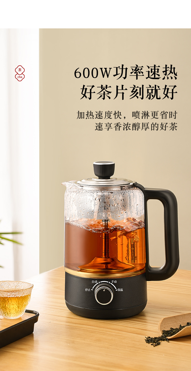 【蒸汽煮茶 滋味清幽】一壶好茶,蒸汽萃取香气;360°分离式底座,安全又省心;四段蒸煮曲线,恰到好处;可拆卸滤网,清洗无死角。煮茶不再费劲,品味生活从容不迫!
