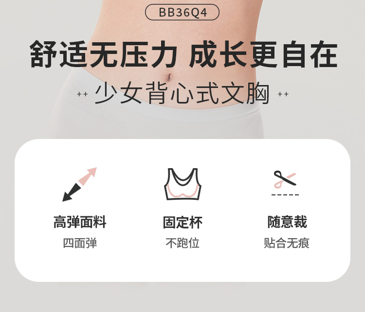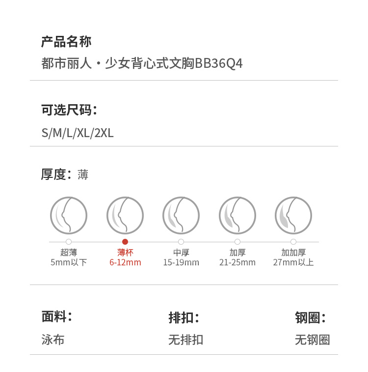 都市丽人少女优选二阶泳布内衣薄款背心式少女文胸无钢圈无排扣BB36Q4