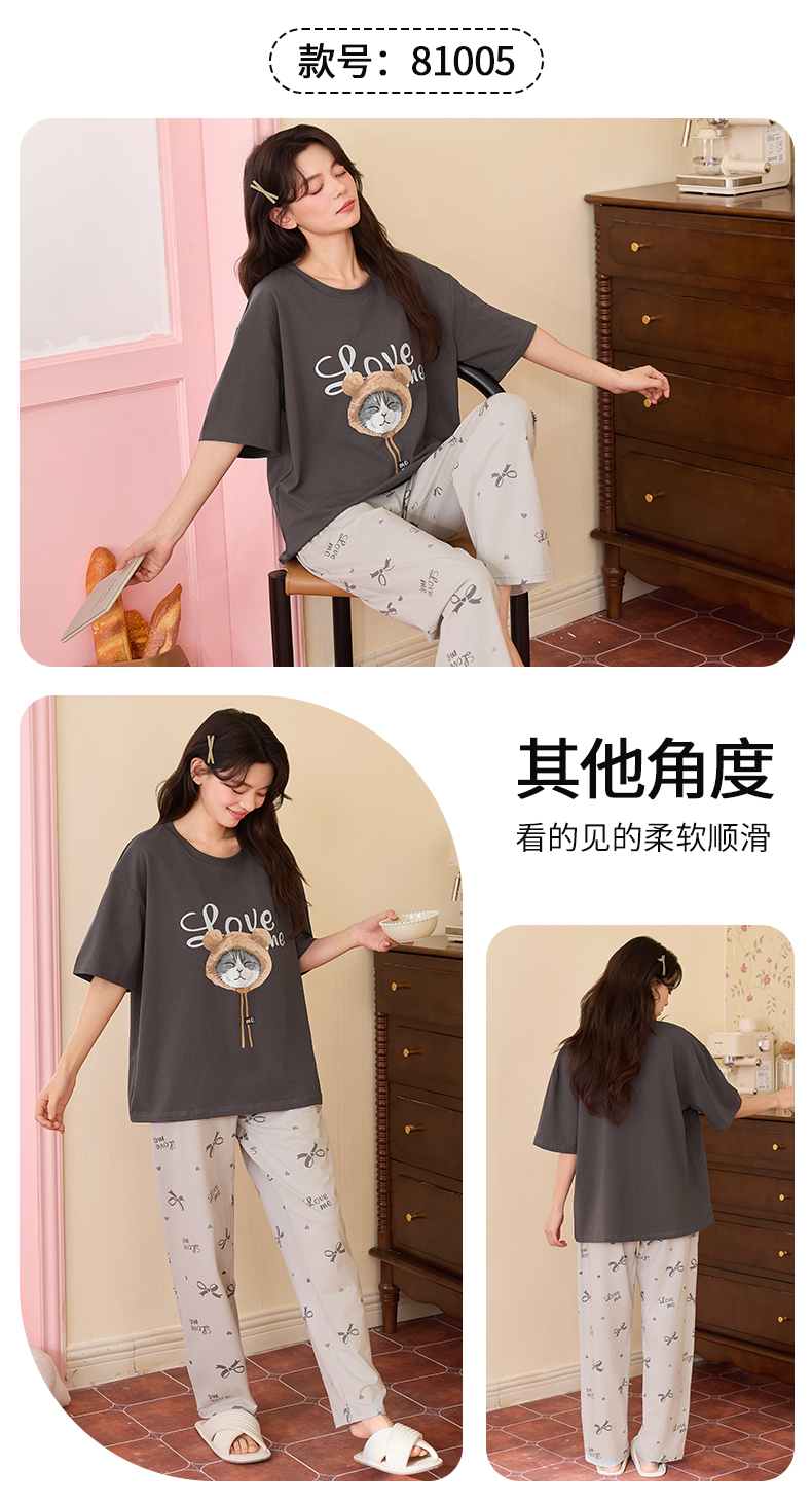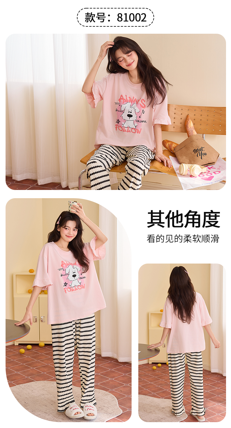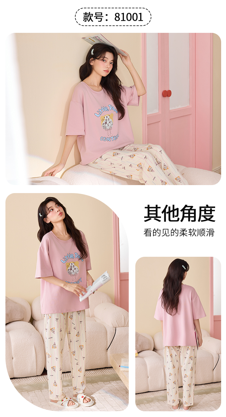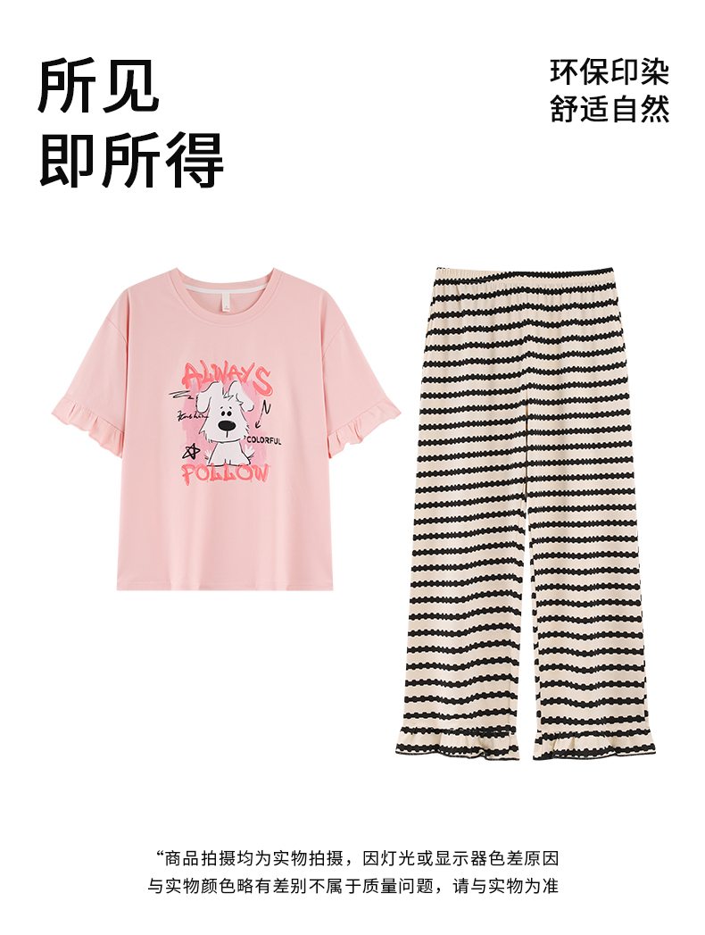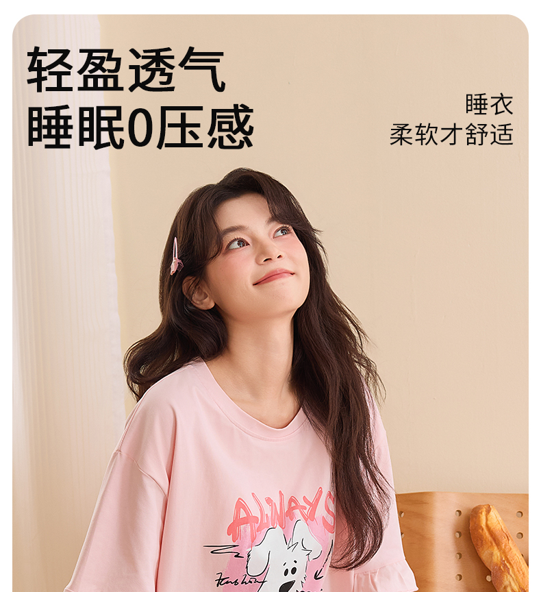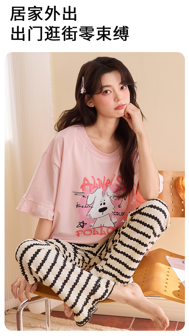 【初夏焕新】自然醒桃气家居服睡衣女款夏季100%纯棉短袖长裤少女夏家居服全棉套装QH