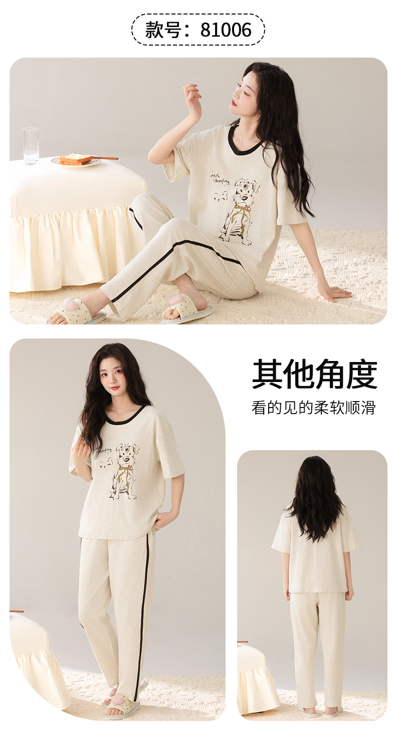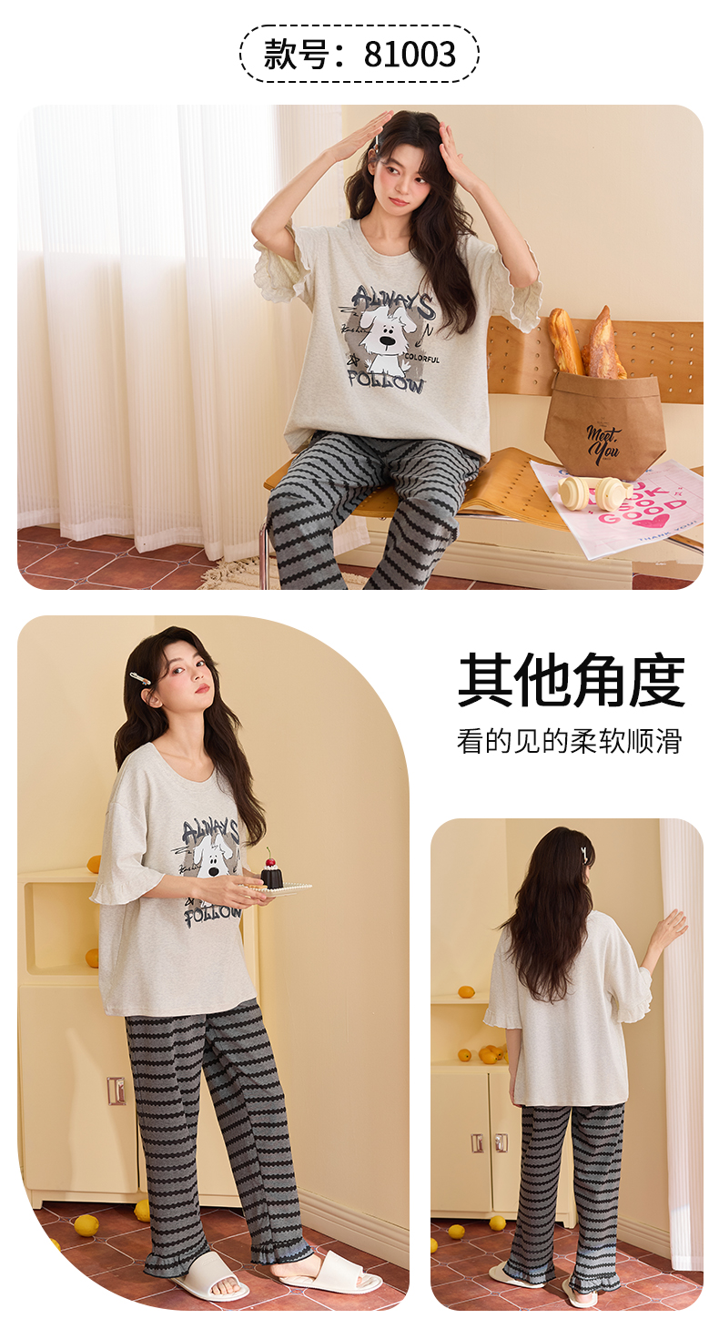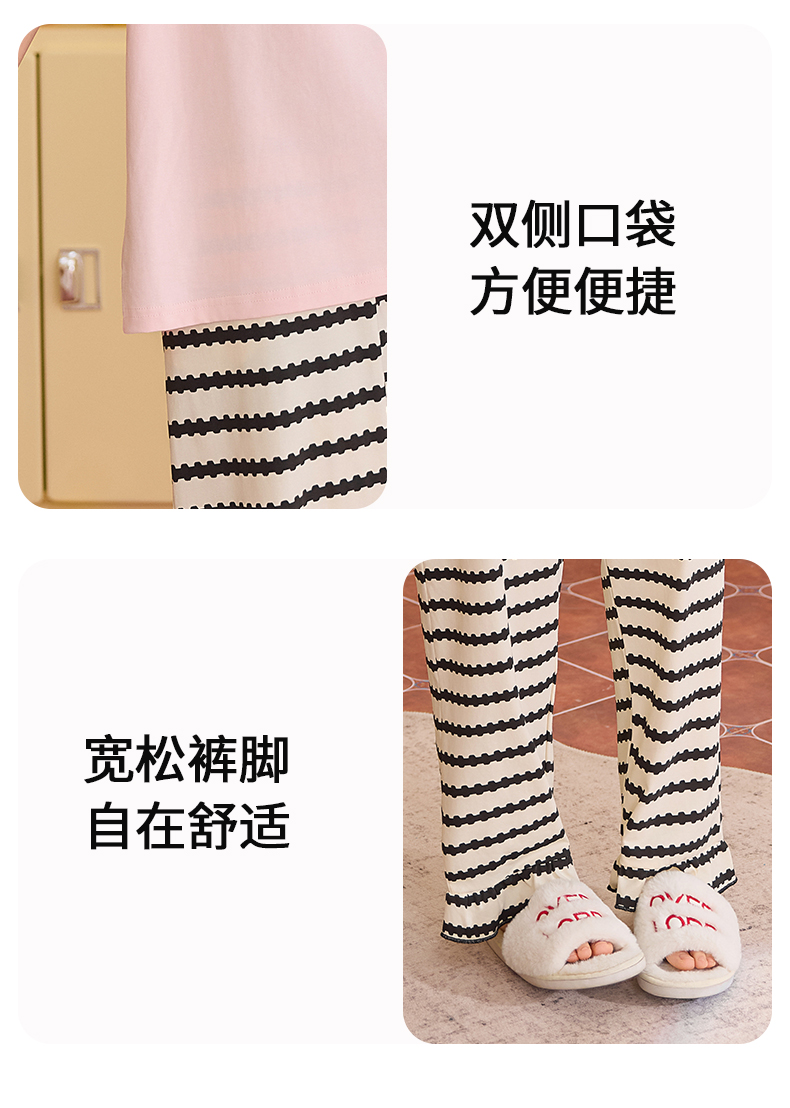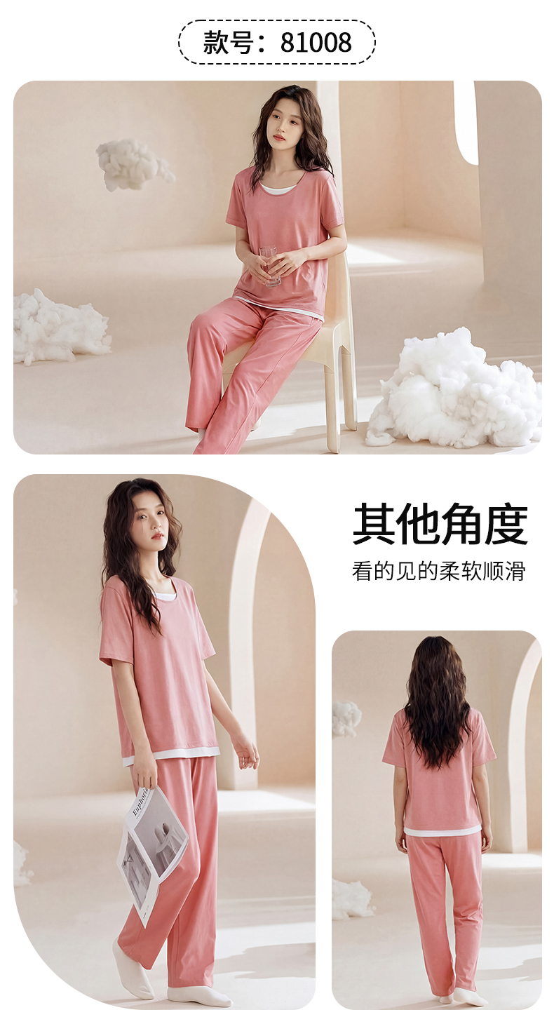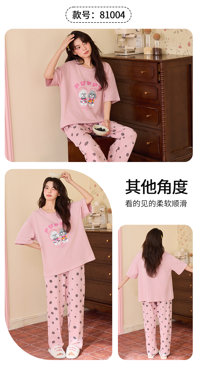 【初夏焕新】自然醒桃气家居服睡衣女款夏季100%纯棉短袖长裤少女夏家居服全棉套装QH