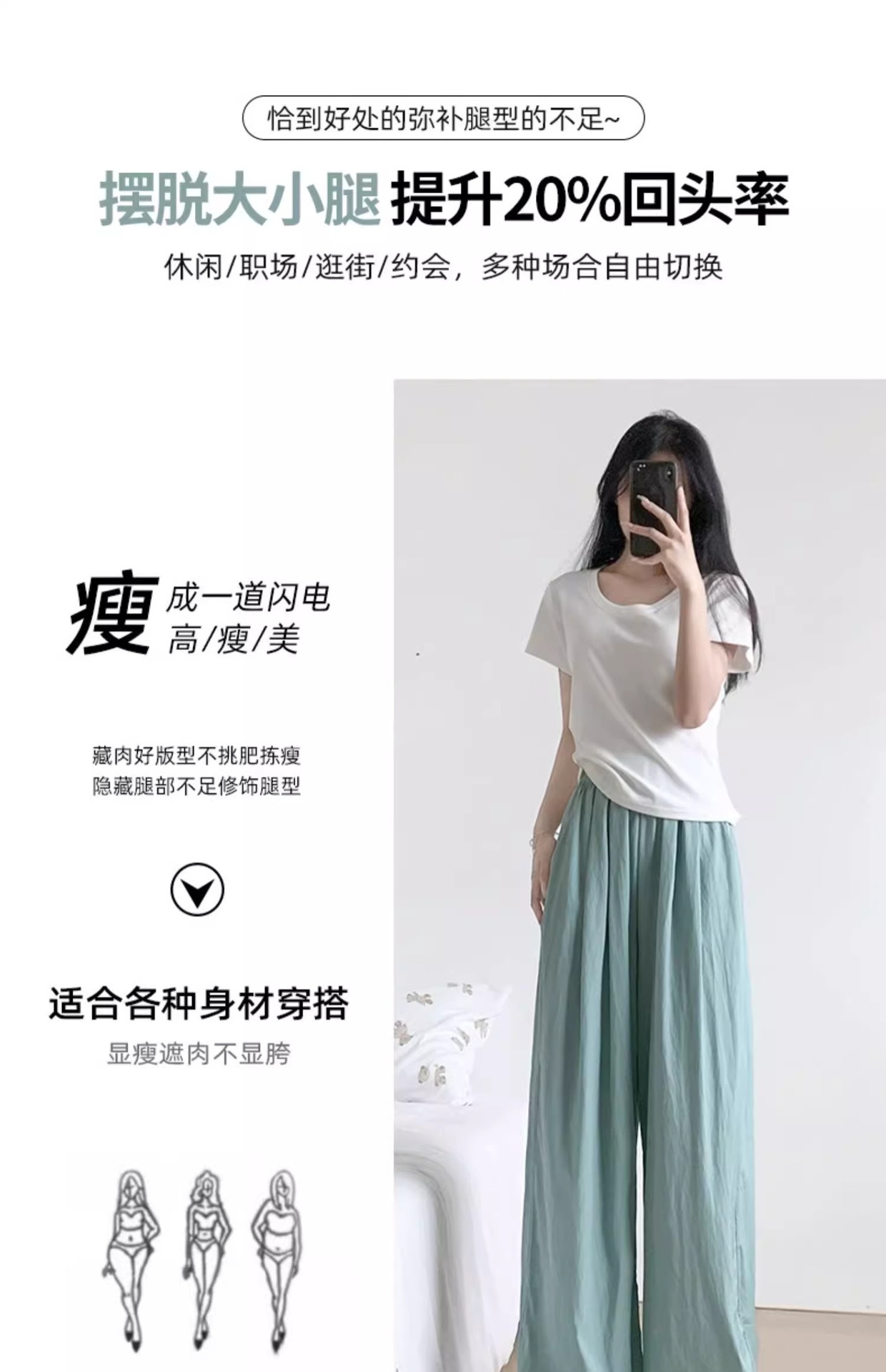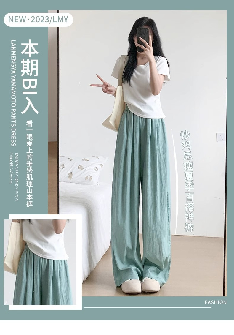 【59.9/2条 肌理感褶皱山本裤】高腰宽松显瘦山本裤女春夏季休闲垂感阔腿裤直筒裤拖地长裤