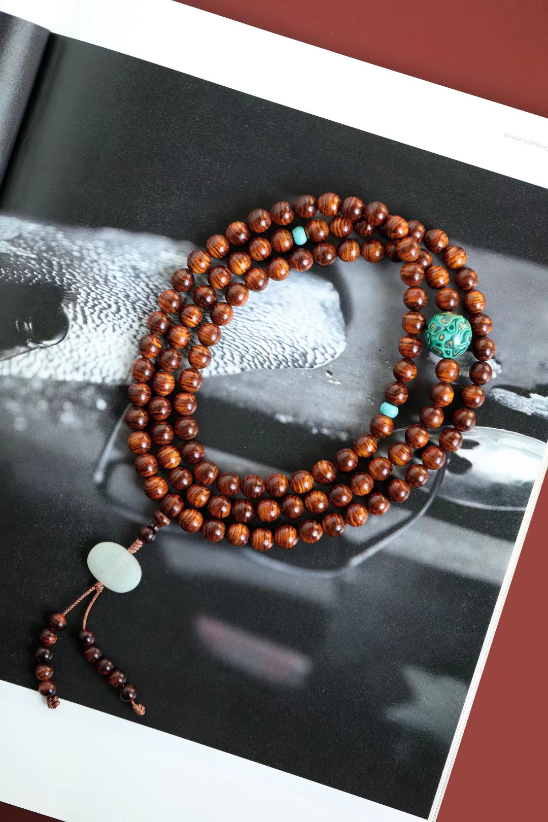 配件:松石、大漆珠、和田玉