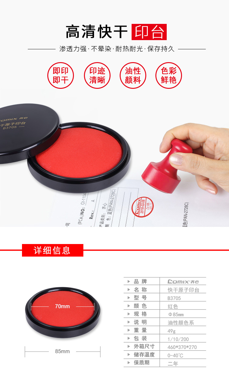 齐心 B3705 快干原子印台 红色 大圆 油性
