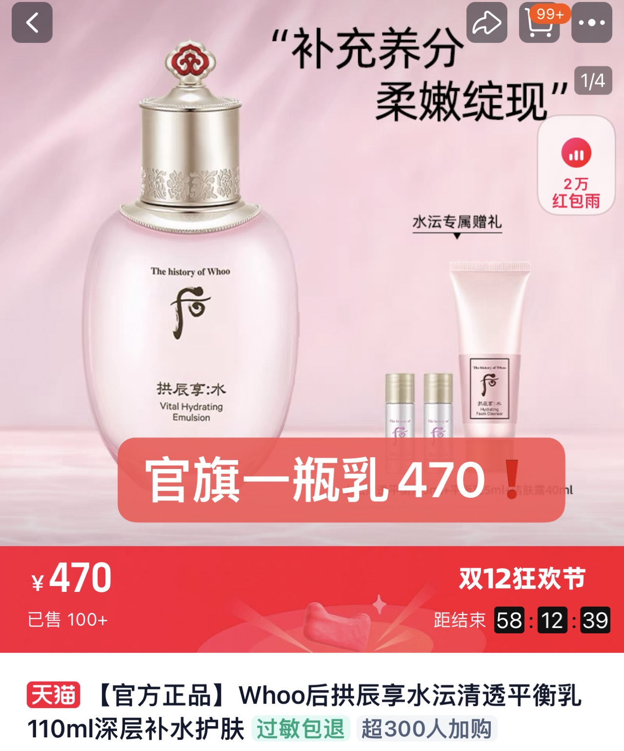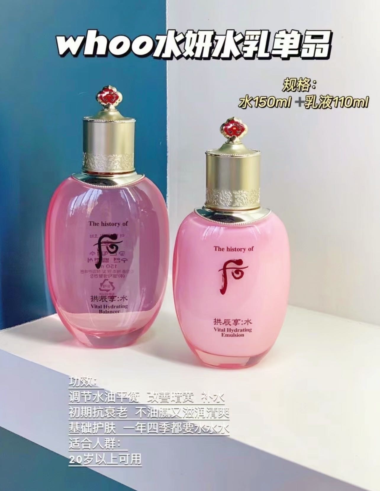 【12.14王炸割肉价】WHOO后拱辰享水妍套装(水150ml+乳110ml)无盒无盖(限25年11月)