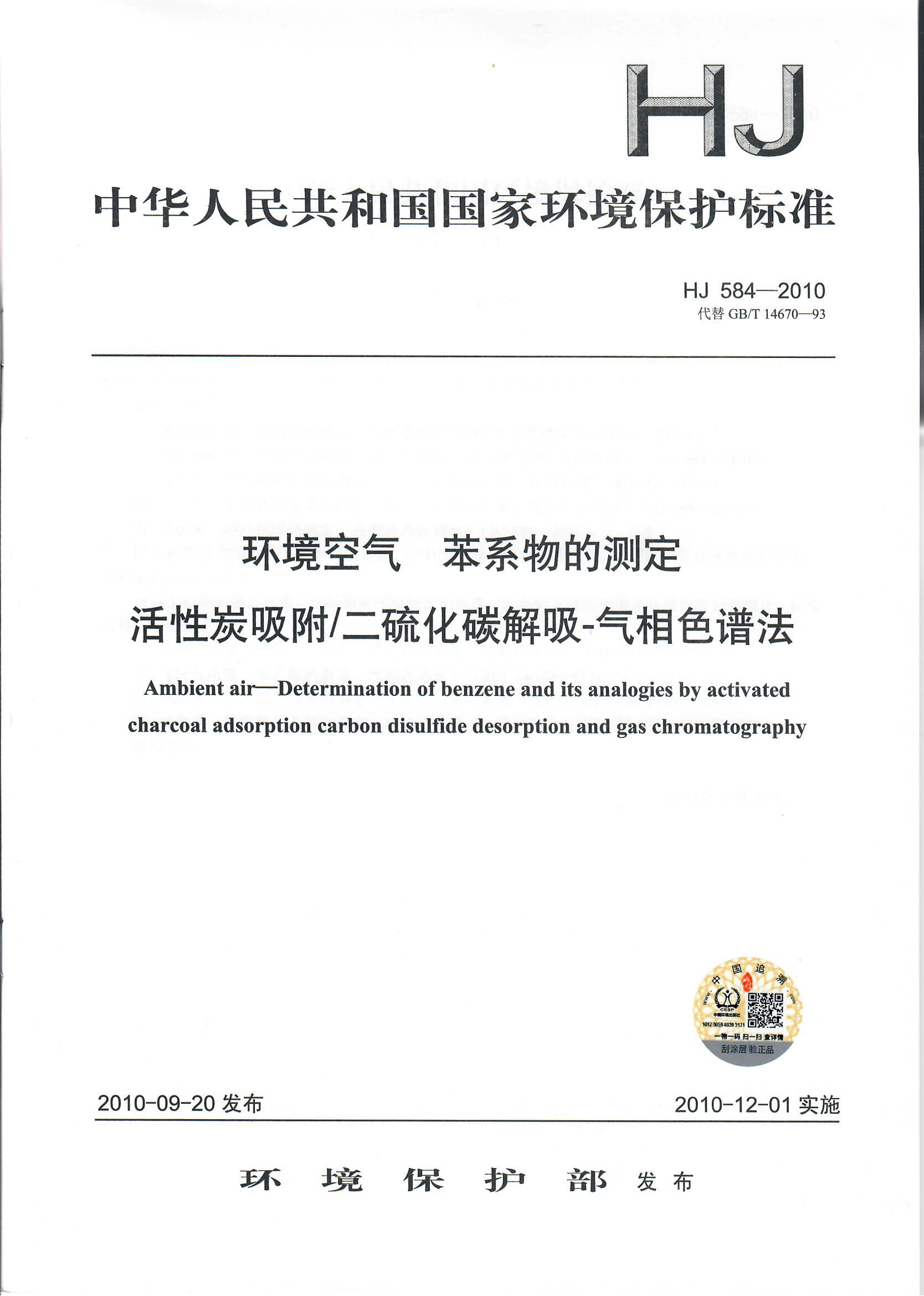 HJ 584—2010环境空气 苯系物的测定 活性炭吸附/二硫化碳解吸-气相色谱法 1-3