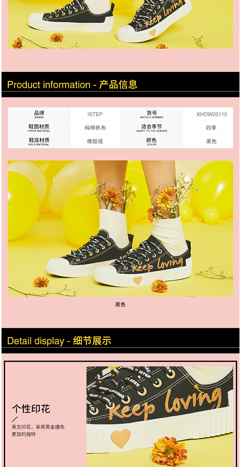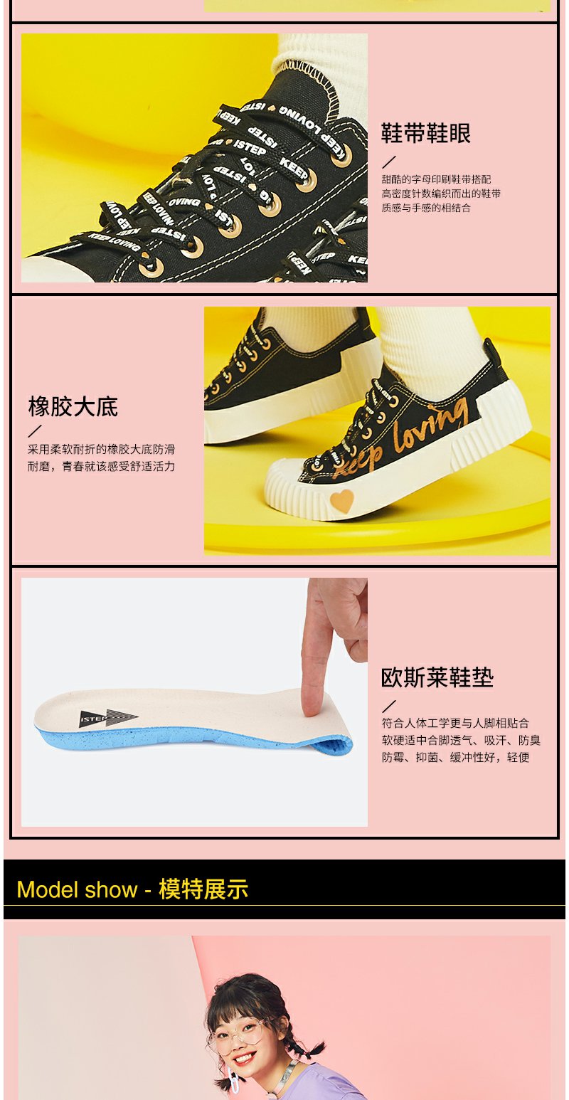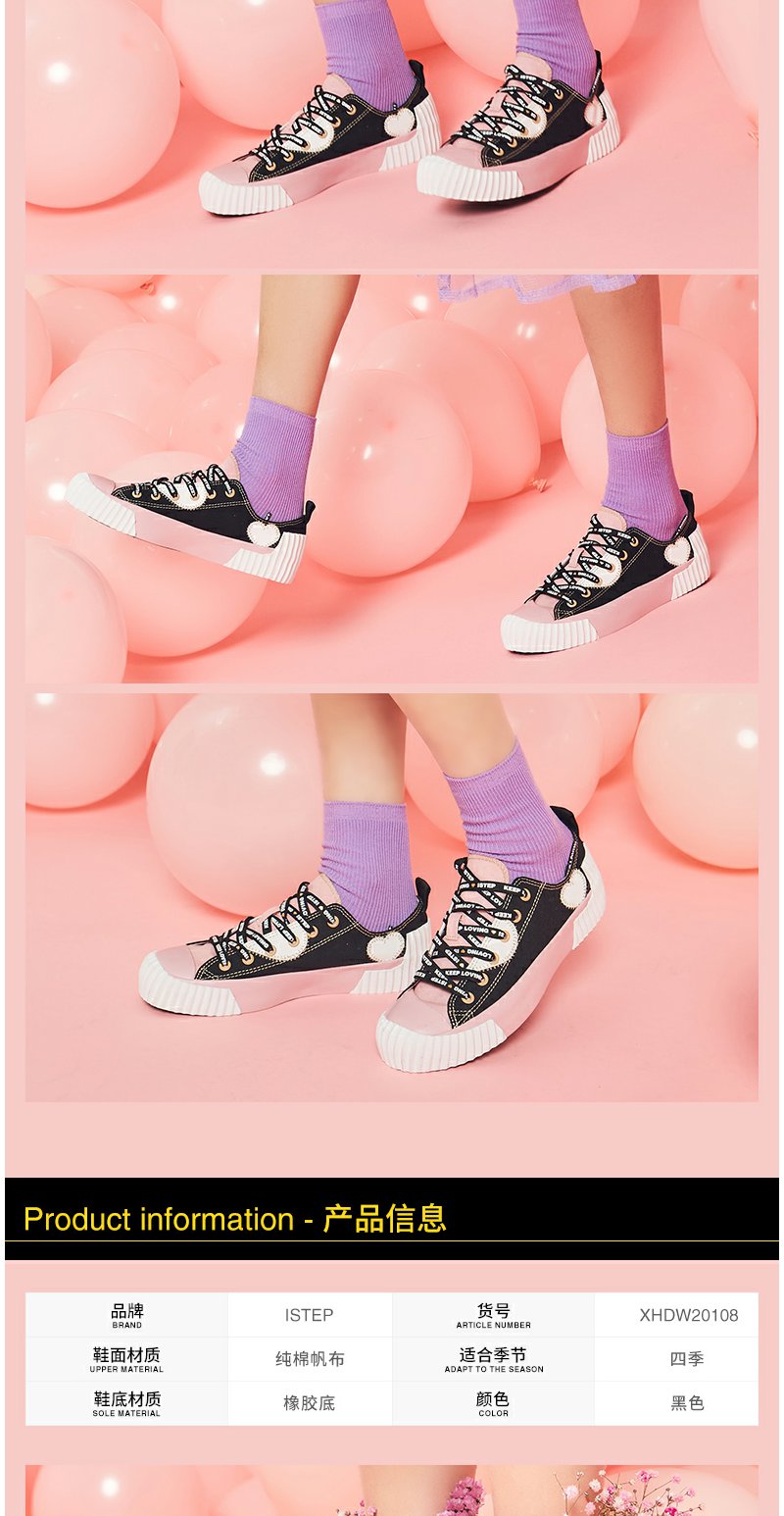 【正品】iSTEP帆布鞋2022新款女鞋字母情人节爱心平底拼色拼接低帮帆布鞋