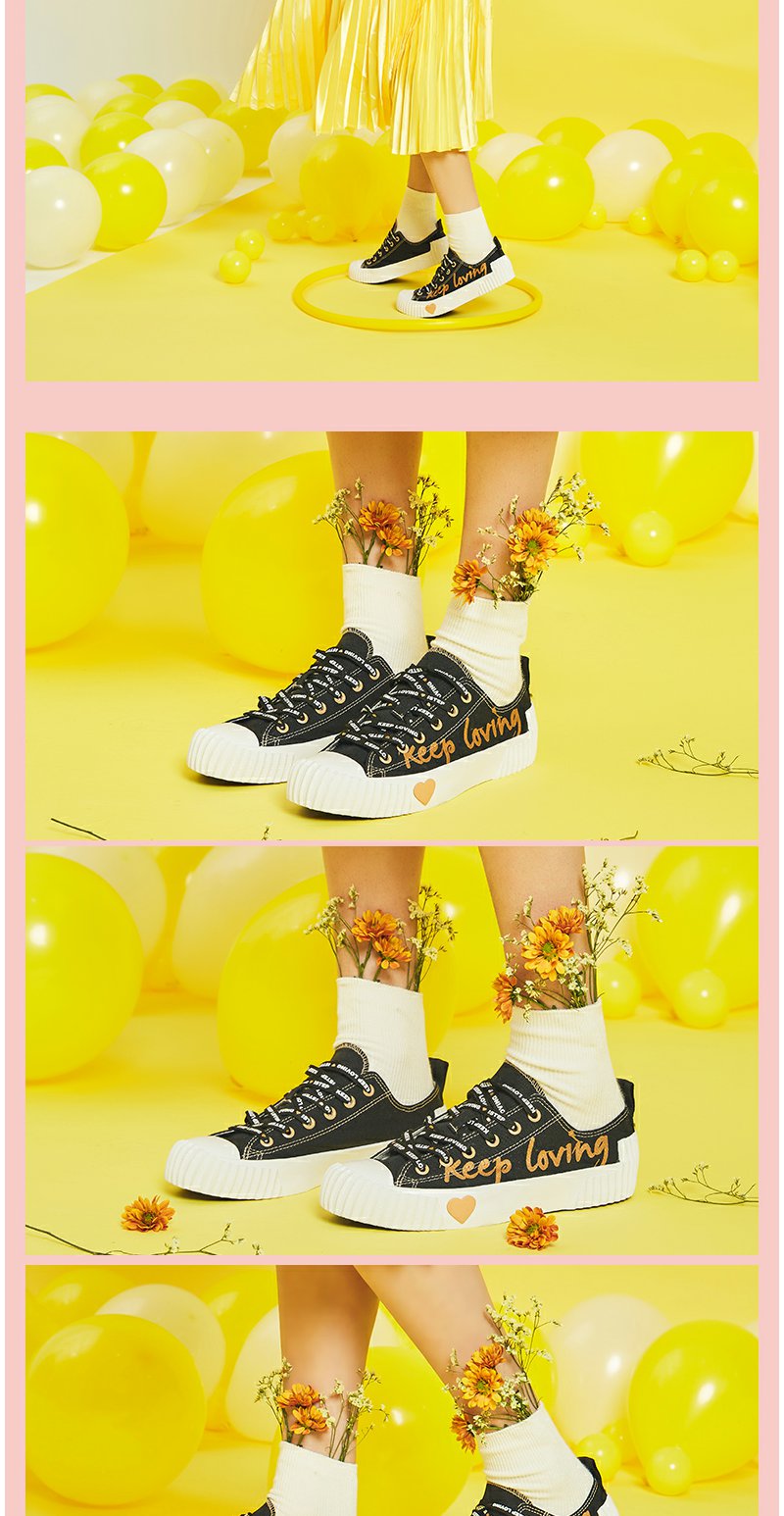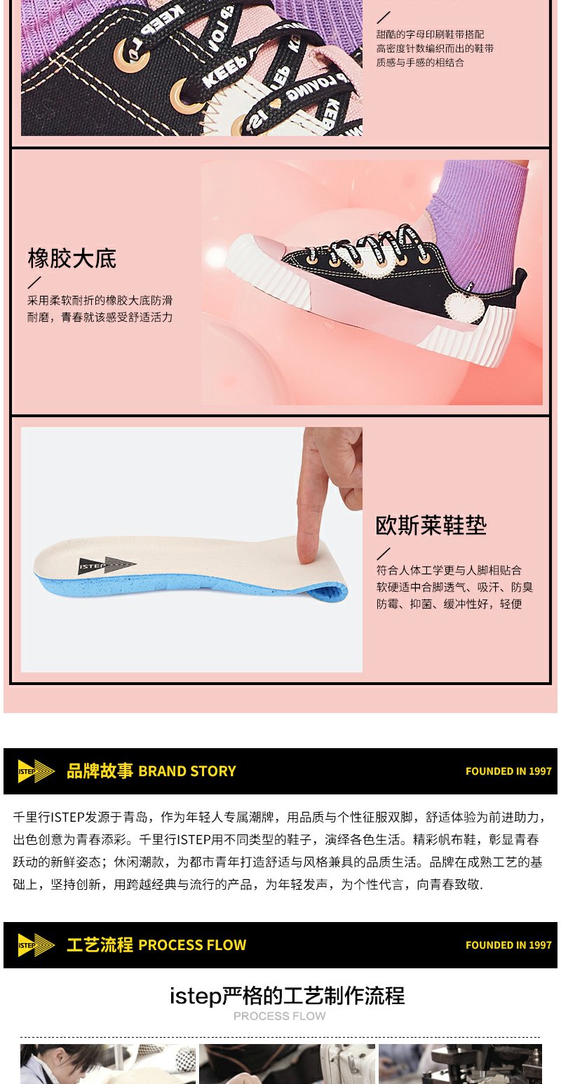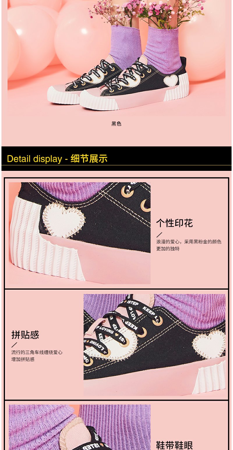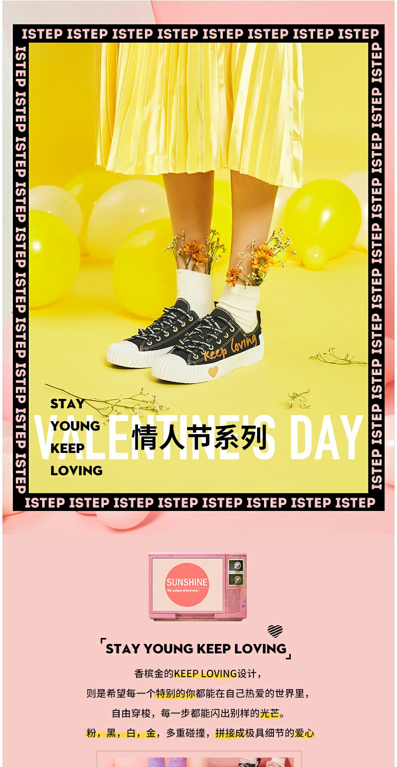 【正品】iSTEP帆布鞋2022新款女鞋字母情人节爱心平底拼色拼接低帮帆布鞋